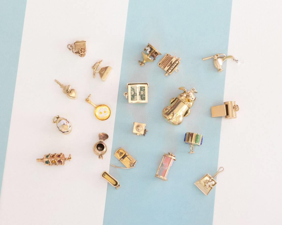 Now, antique charms and vintage charm bracelets are having another renaissance, especially in the world of collectible jewelry. Collectors (and romantics) love that charms are tiny, one-of-a-kind pieces that carry history and personality. Whether it’s a diamond-studded starburst, a vintage gold locket, or a quirky enamel animal, each charm has a story—and let’s be honest, they’re way more fun to stack and style than a plain old chain.