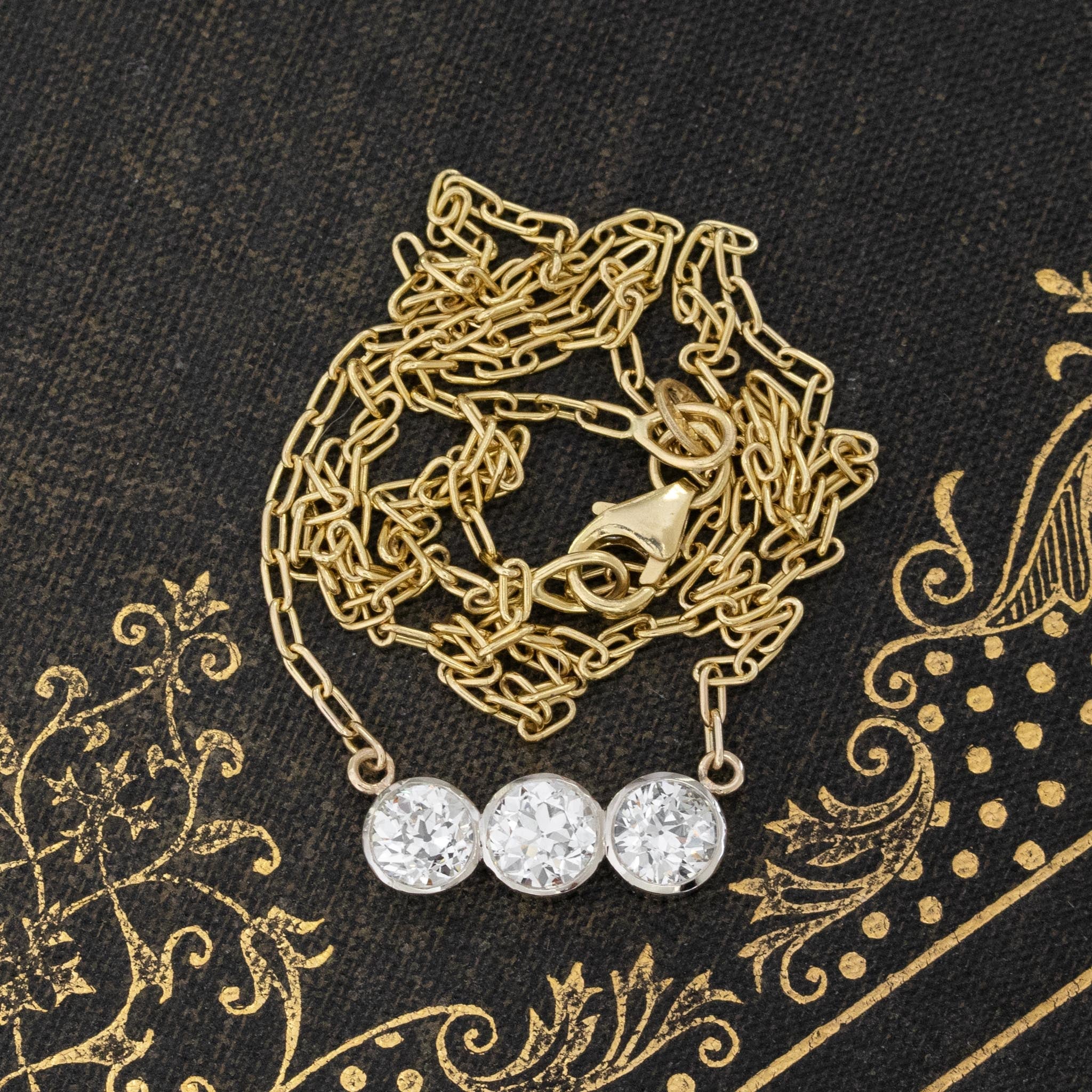 1.00ctw Old European Cut Diamond Trilogy Bezel Pendant