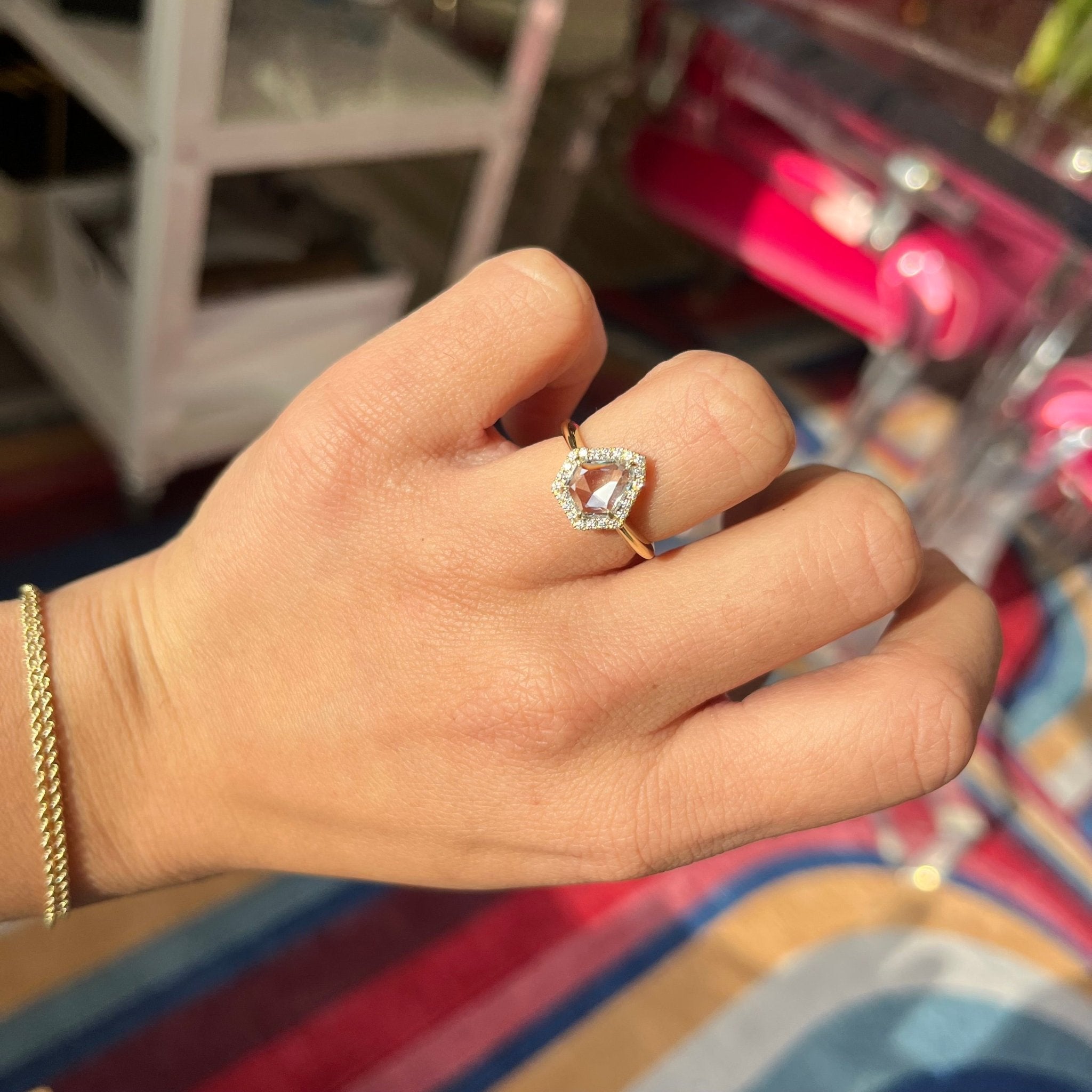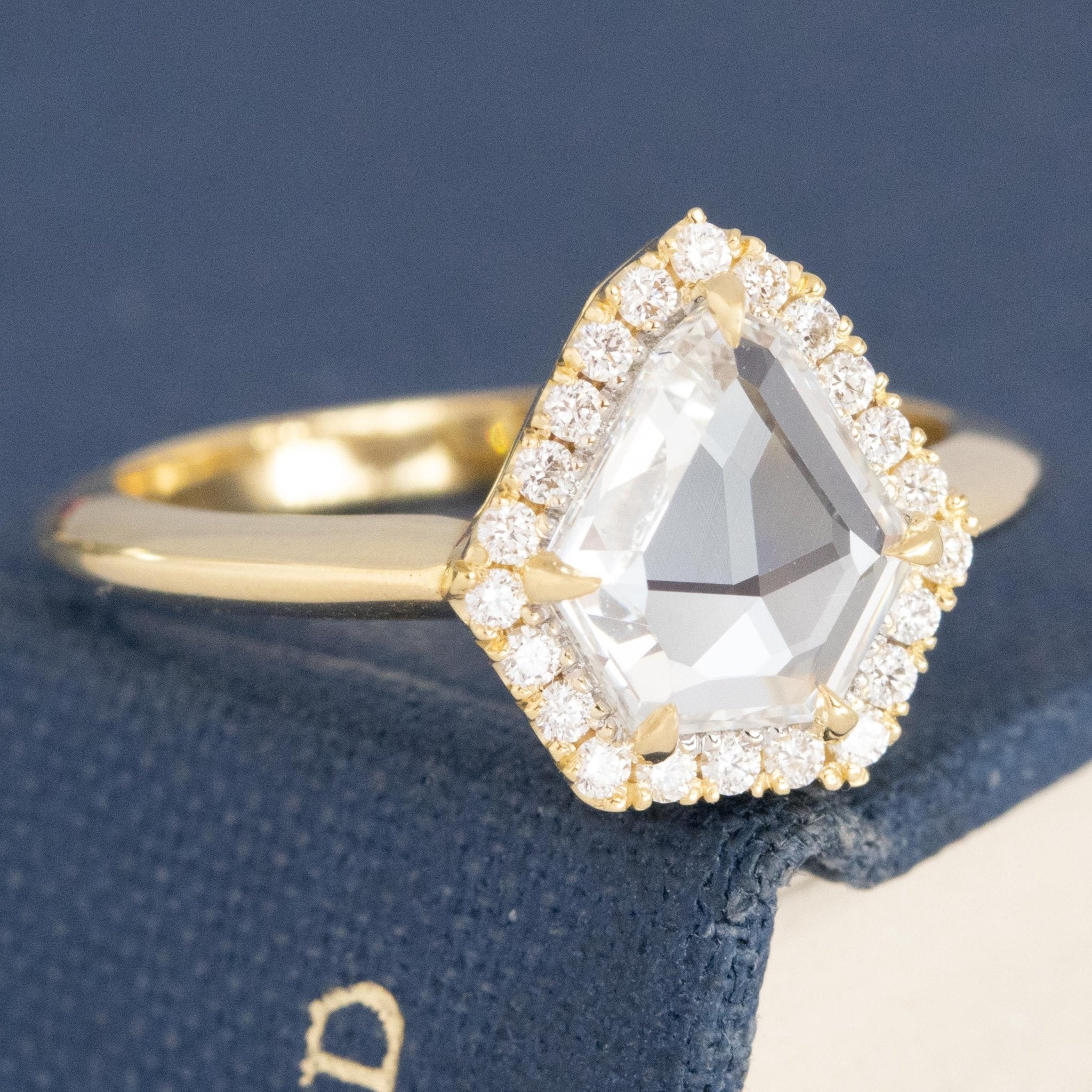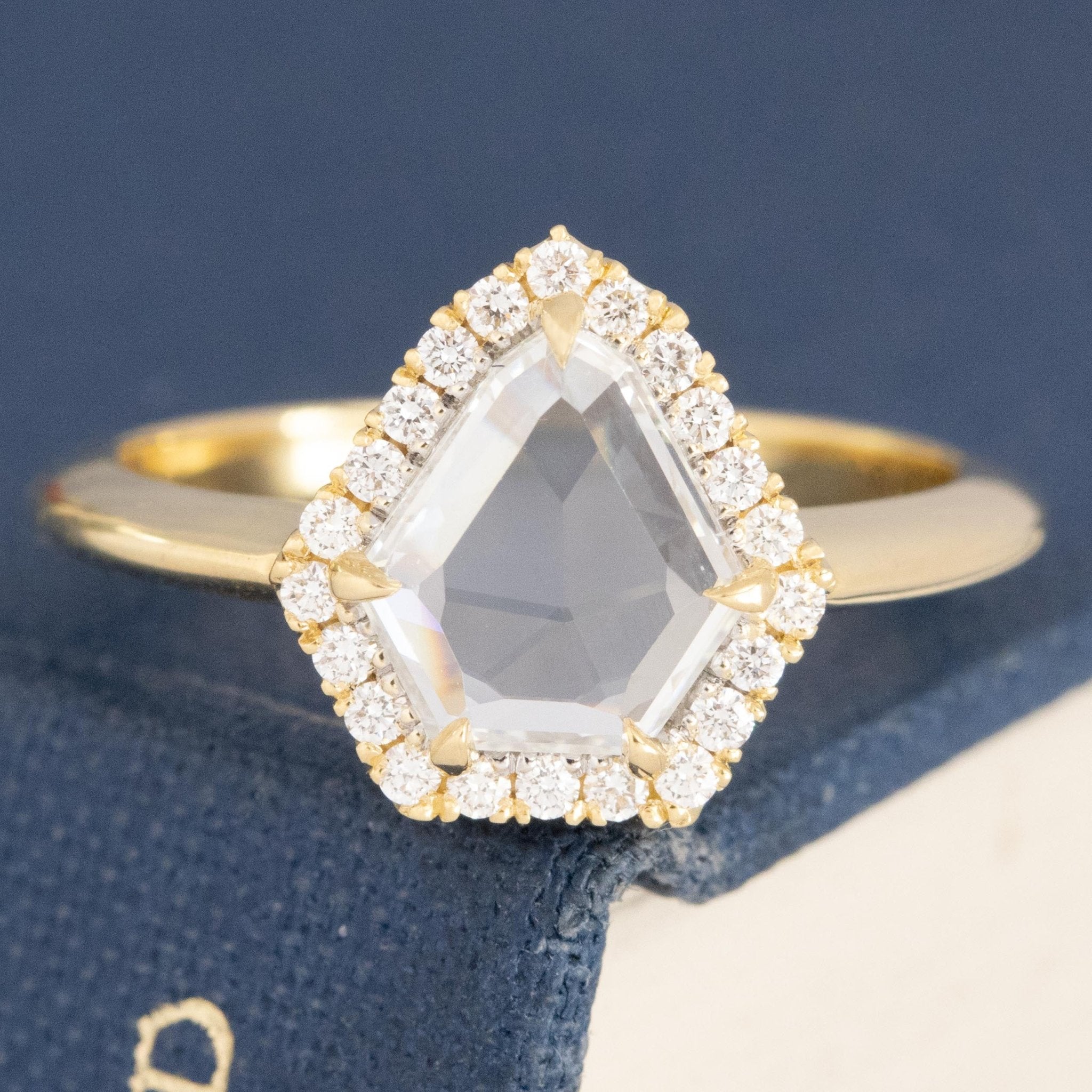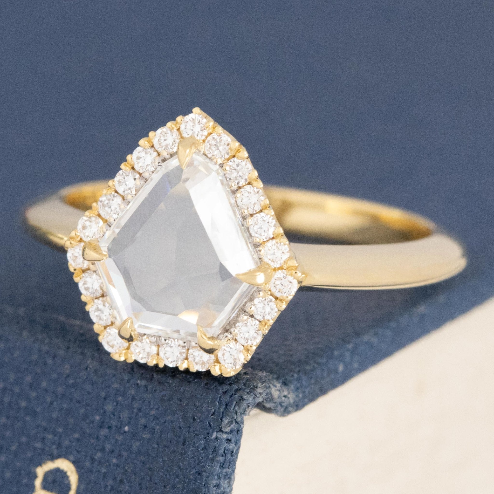 1.12ctw Shield Rose Cut Diamond Halo Ring