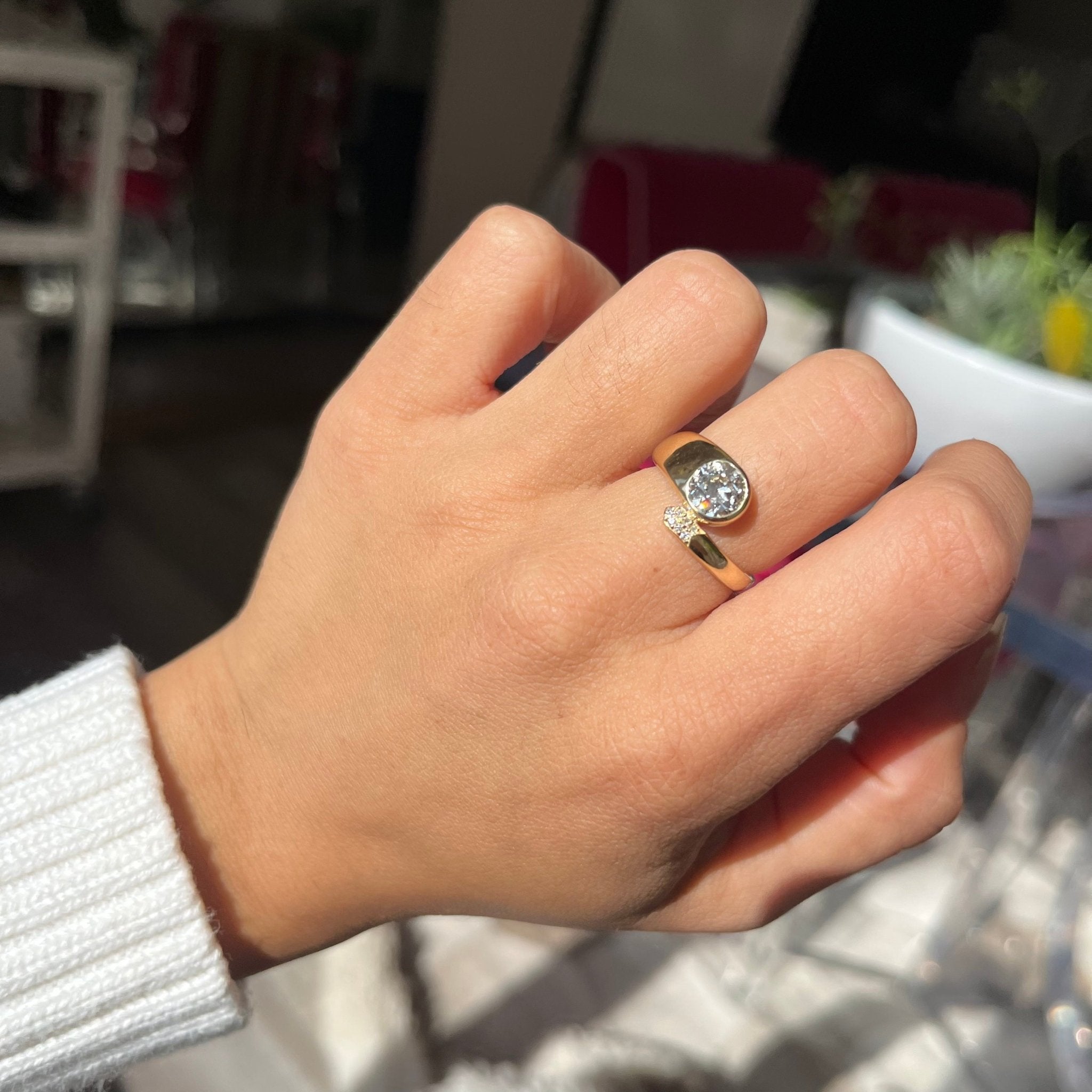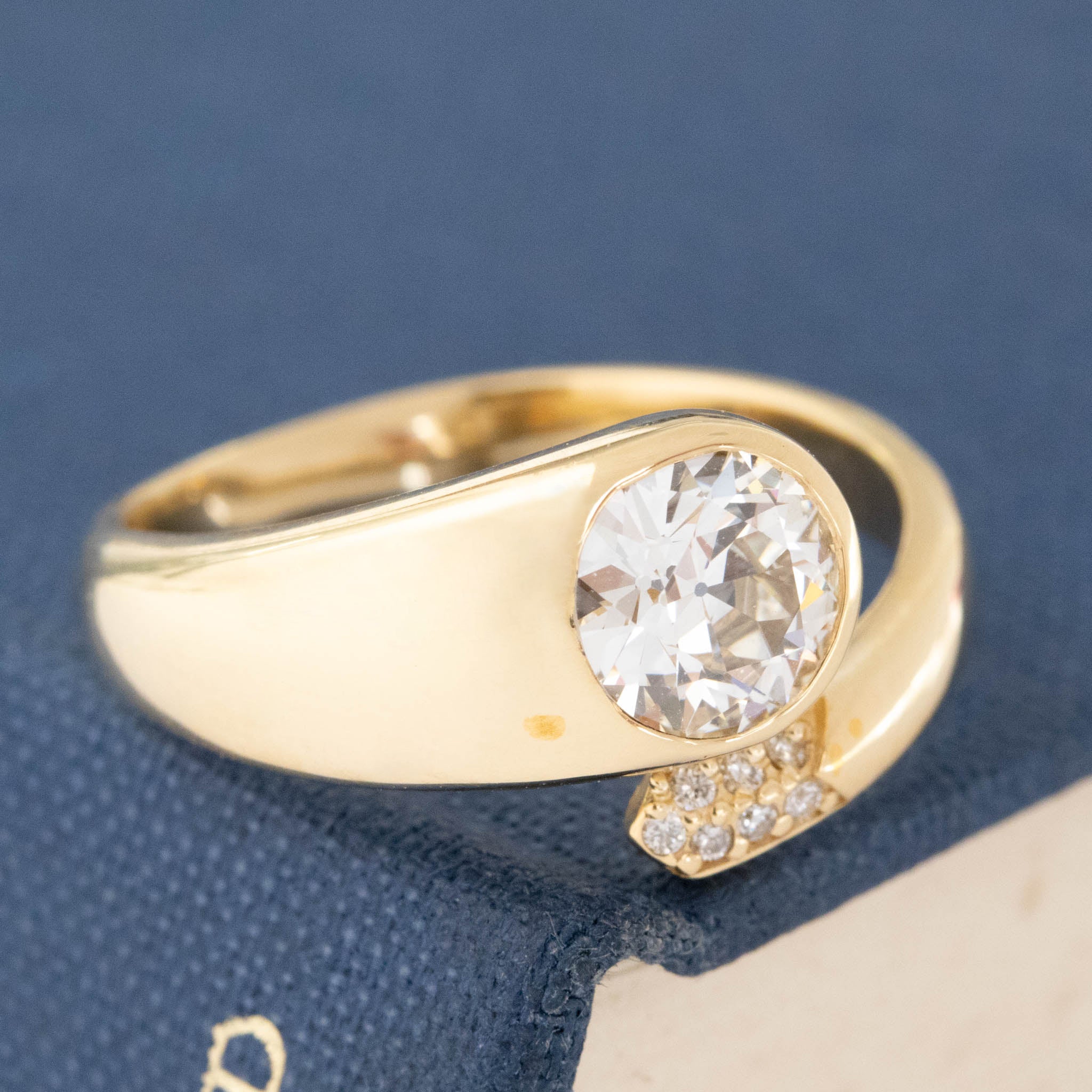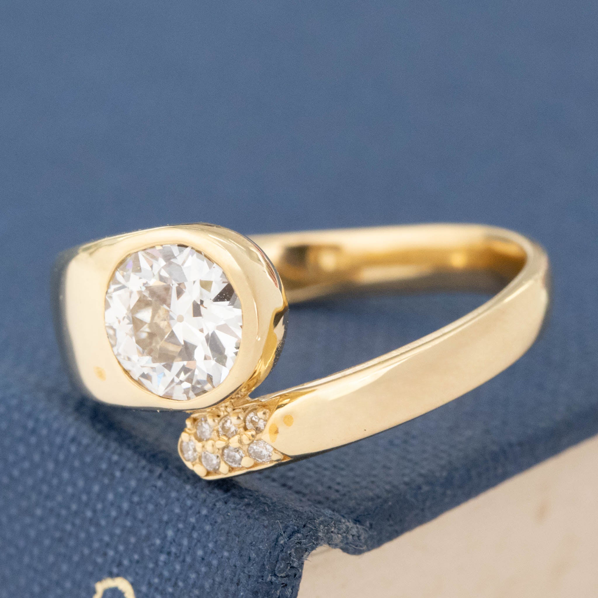 We designed this ring to have a dash of whimsy and playfulness, very much apt for the central old European cut diamond with the most prismatic face up. Inspired by bypass rings of past eras, with a sprinkling of pave diamonds for a dash pf sparkle. Whimsical yet present on the finger - we just adore everything about her! A most unique engagement ring, or right hand ring.