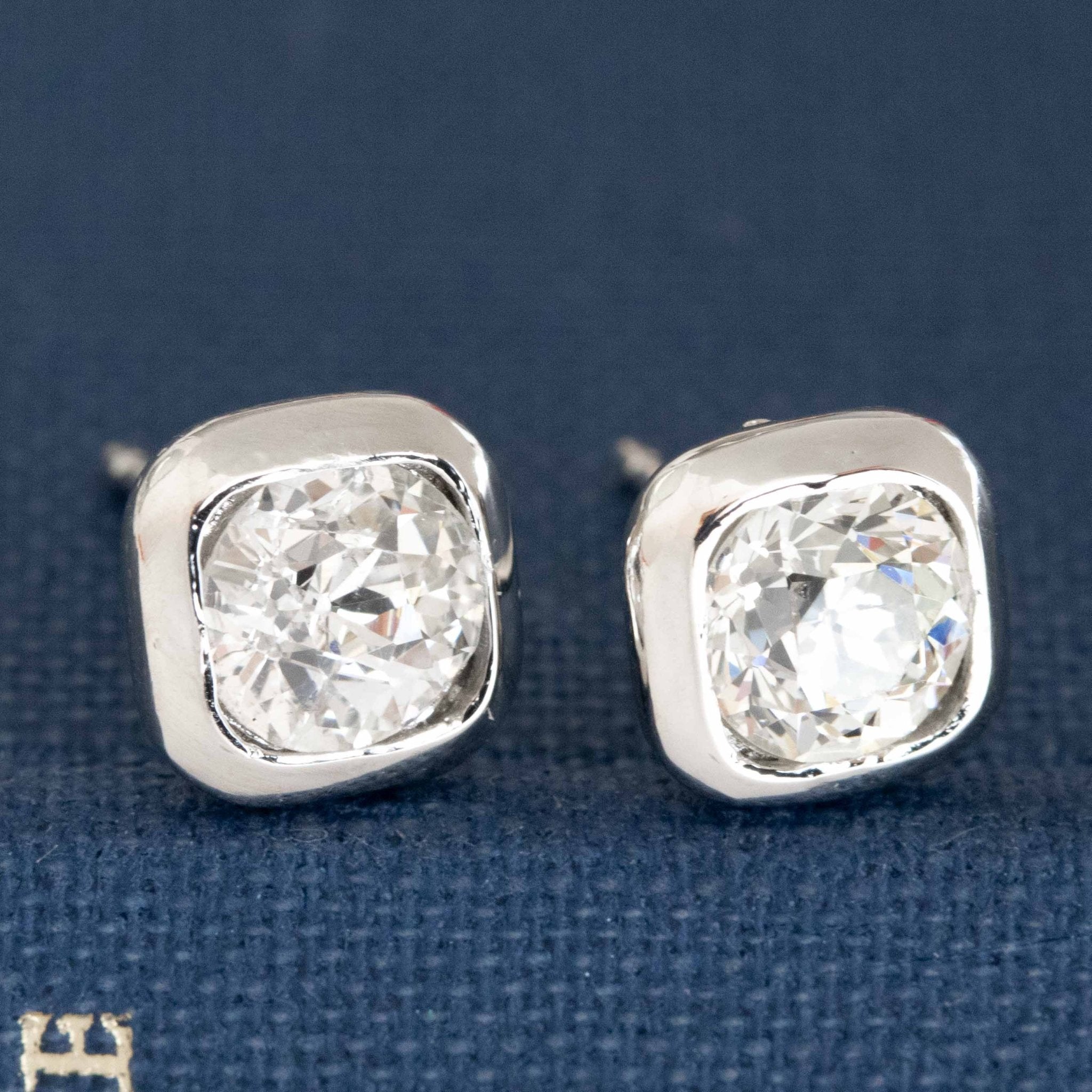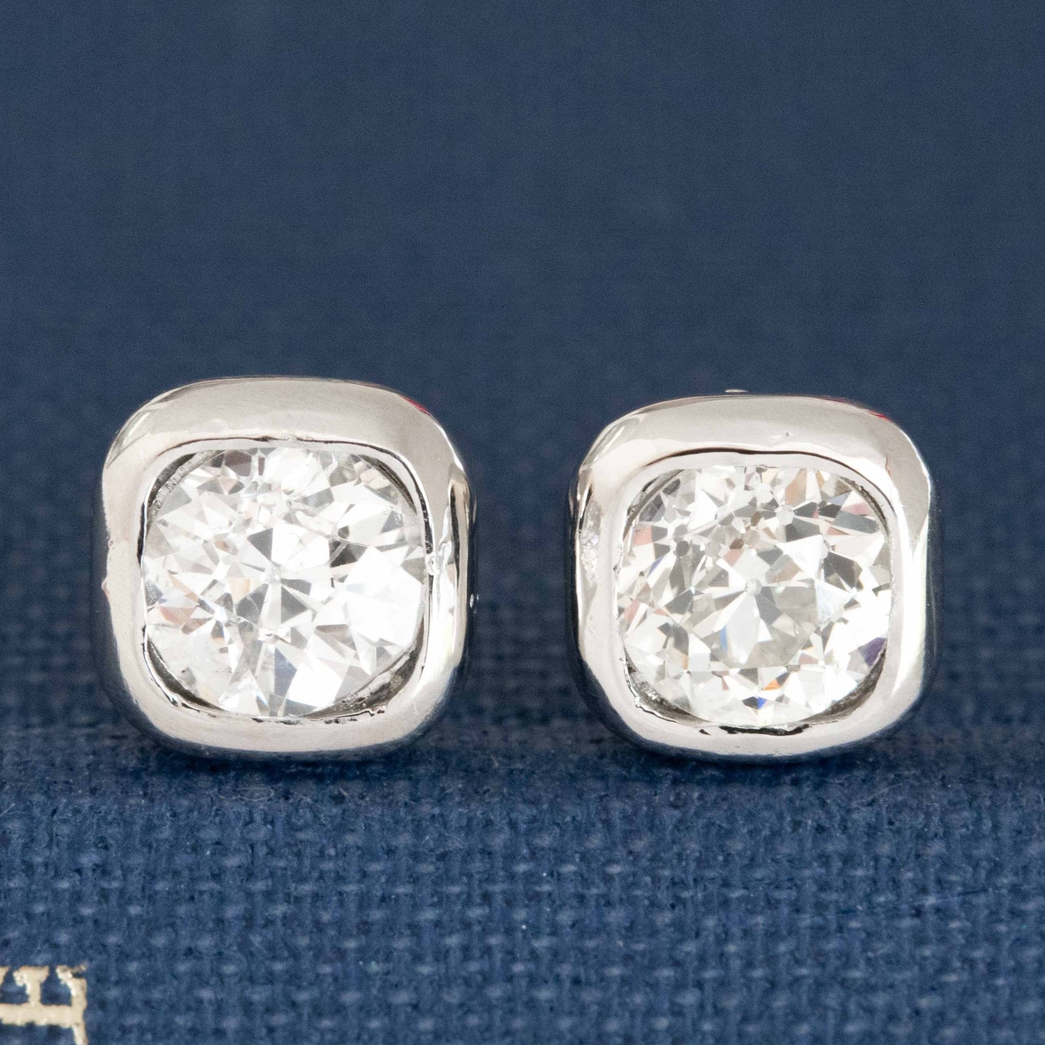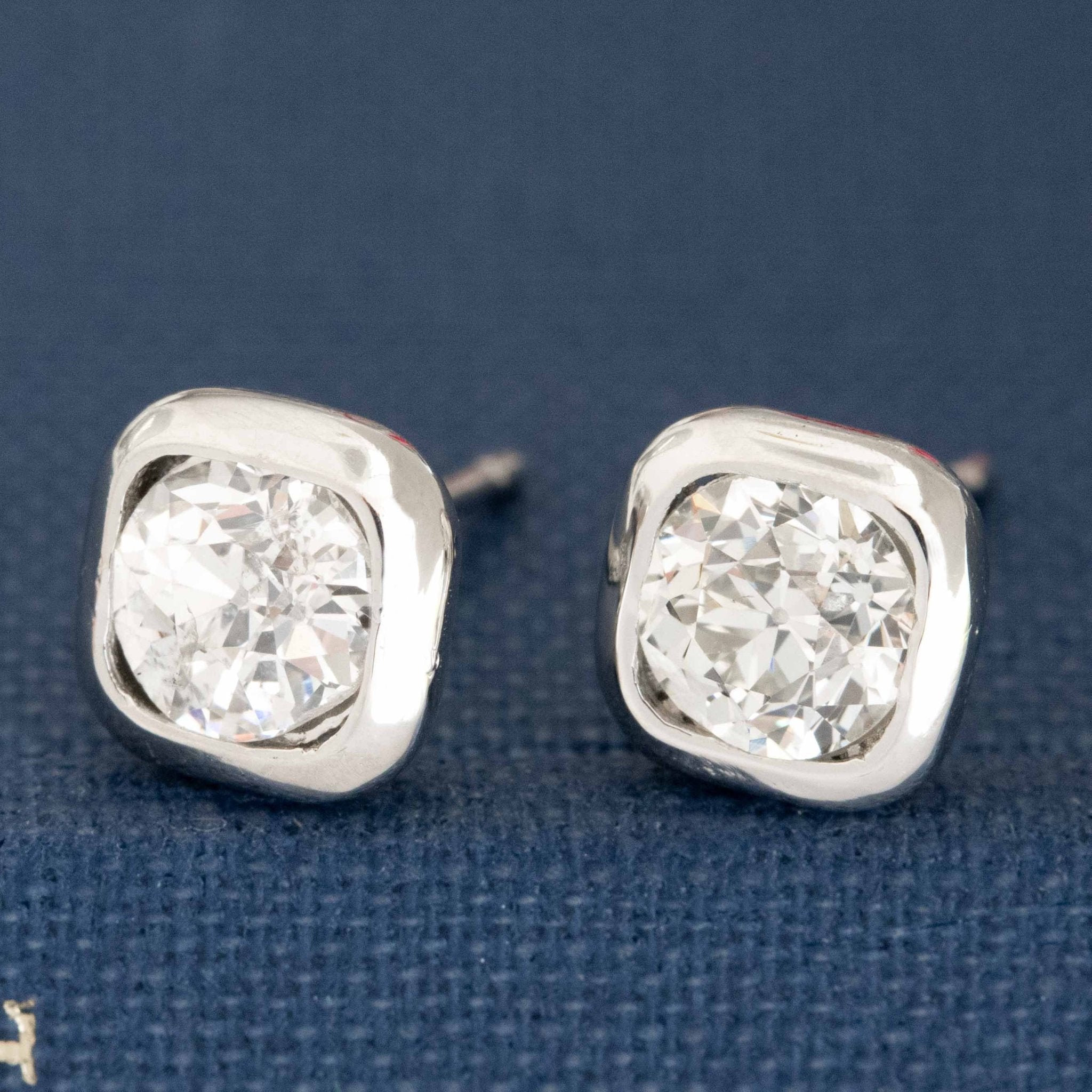 1.02ctw Old European Cut Diamond Bezel Stud Earrings