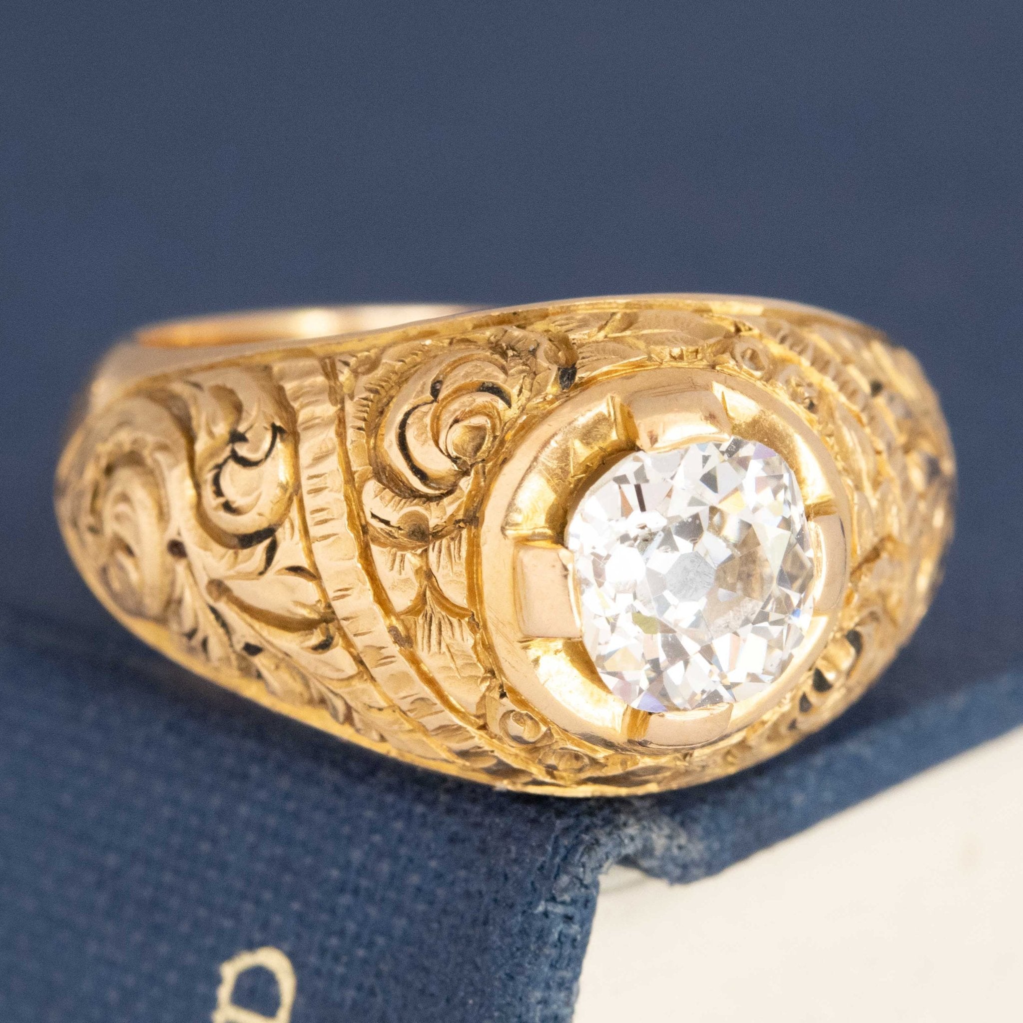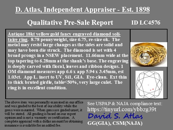 1.03ct Antique Old Mine Cut Diamond Engraved Solitaire