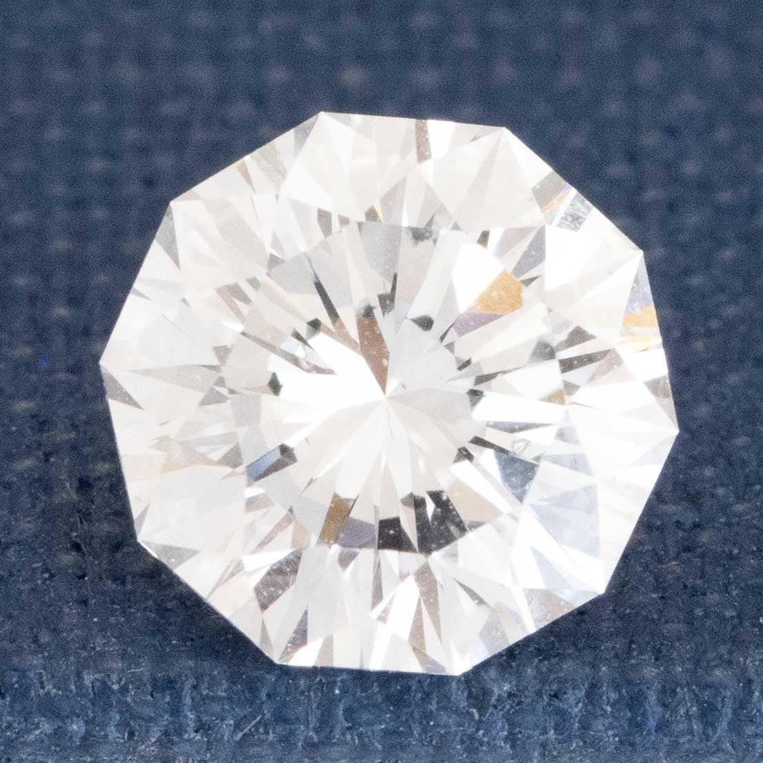 How can we resist? This very uniuqe (and rare!) decagonal shaped diamond is not just super bright (E color) but also exceptionally sparkly. We imagine her set in a sleek bezel setting to showcase her unique shape, or a pendant perhaps?