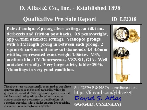 1.06ctw Old Mine Cut Diamond Collet Stud Earrings