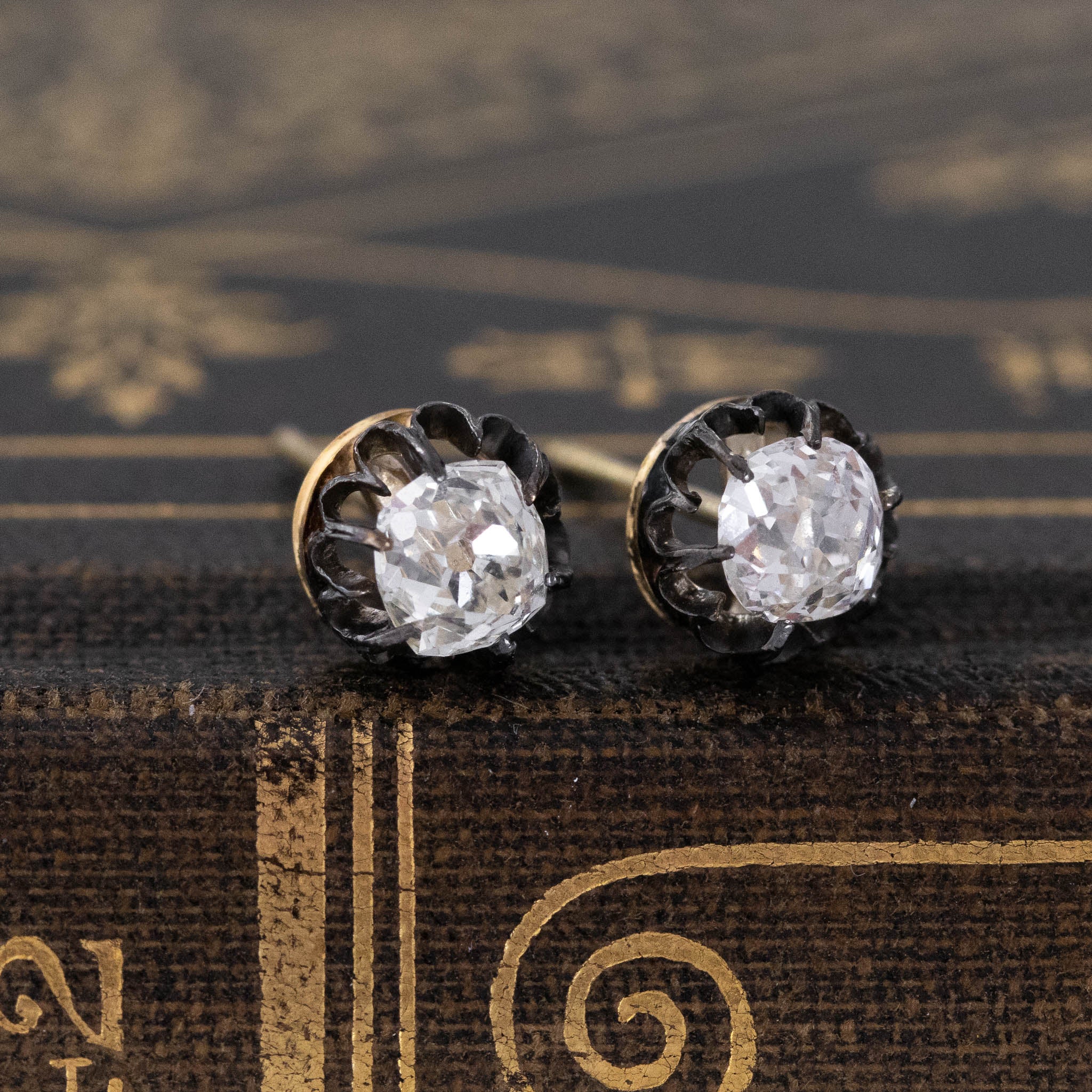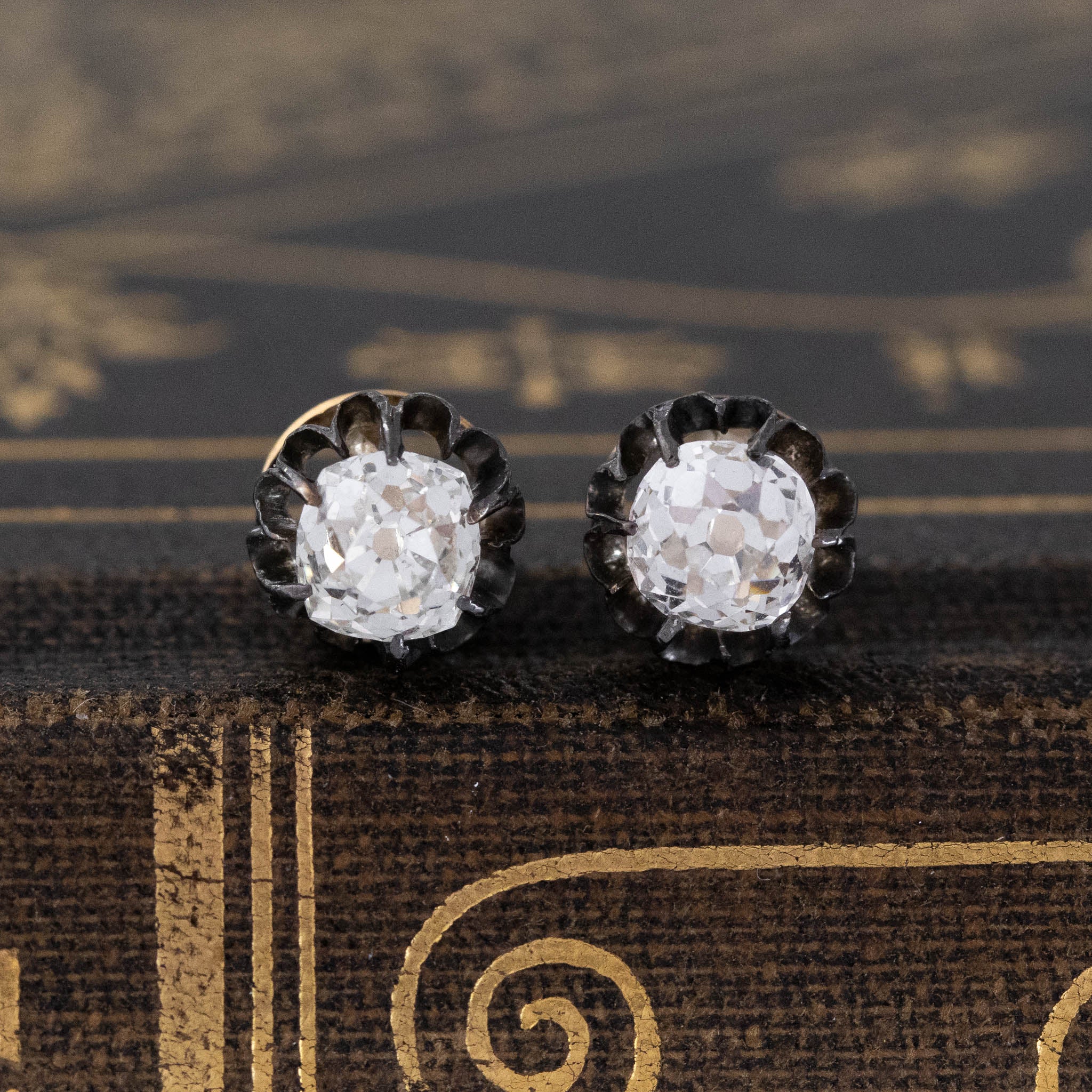 These bright and prismatic old mine cuts have been kept in their original claw-prong settings that look absolutely perfect on the ear. Plenty of old school charm with simple and easy wearability