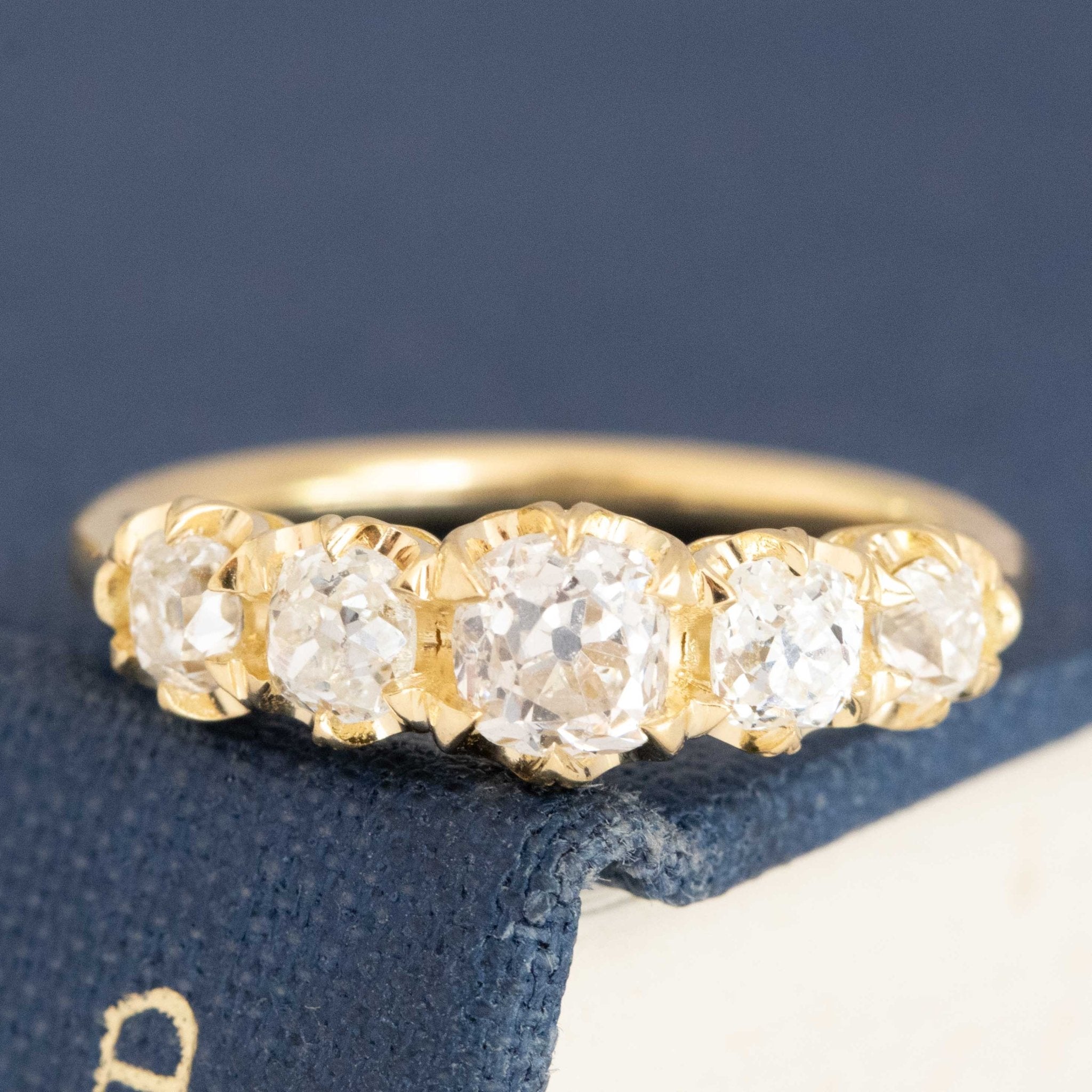1.06ctw Old Mine Cut Diamond Graduated 5-Stone Band