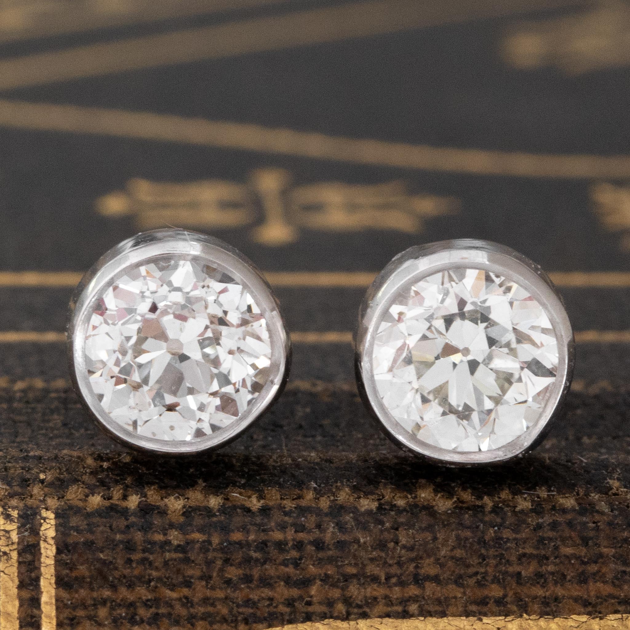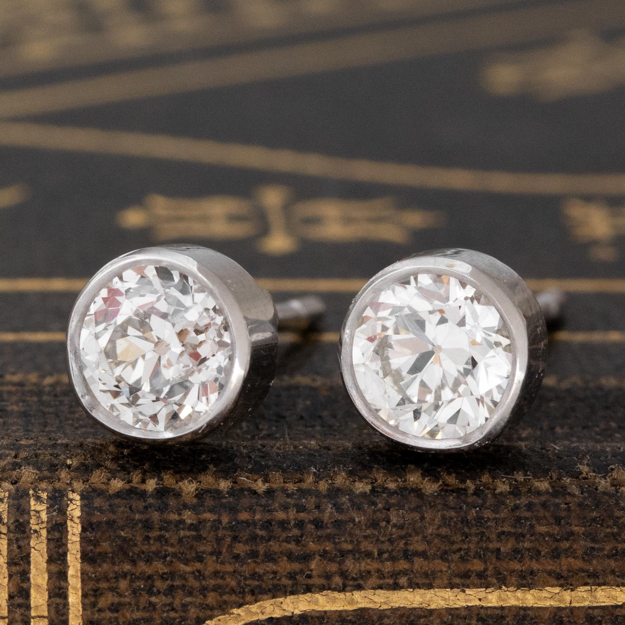 1.07ctw Old European Cut Diamond Bezel Stud Earrings