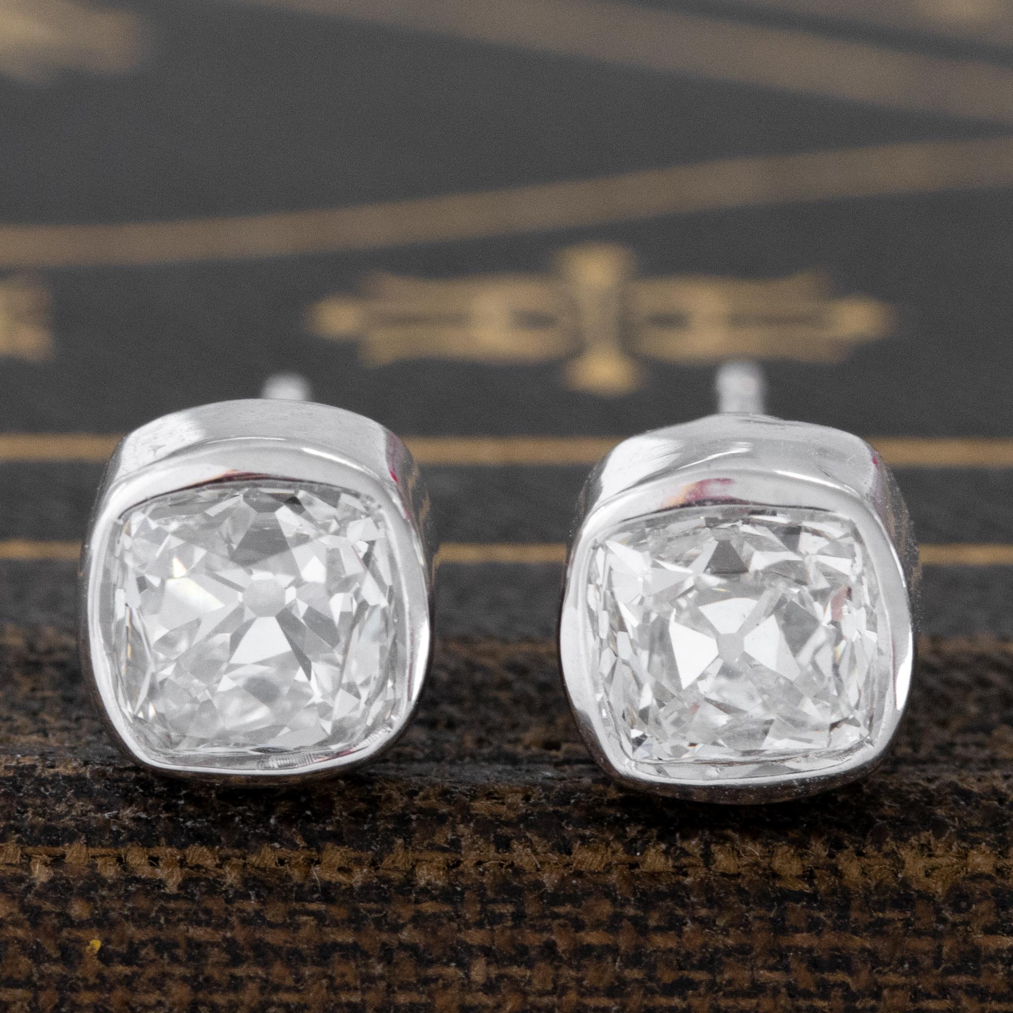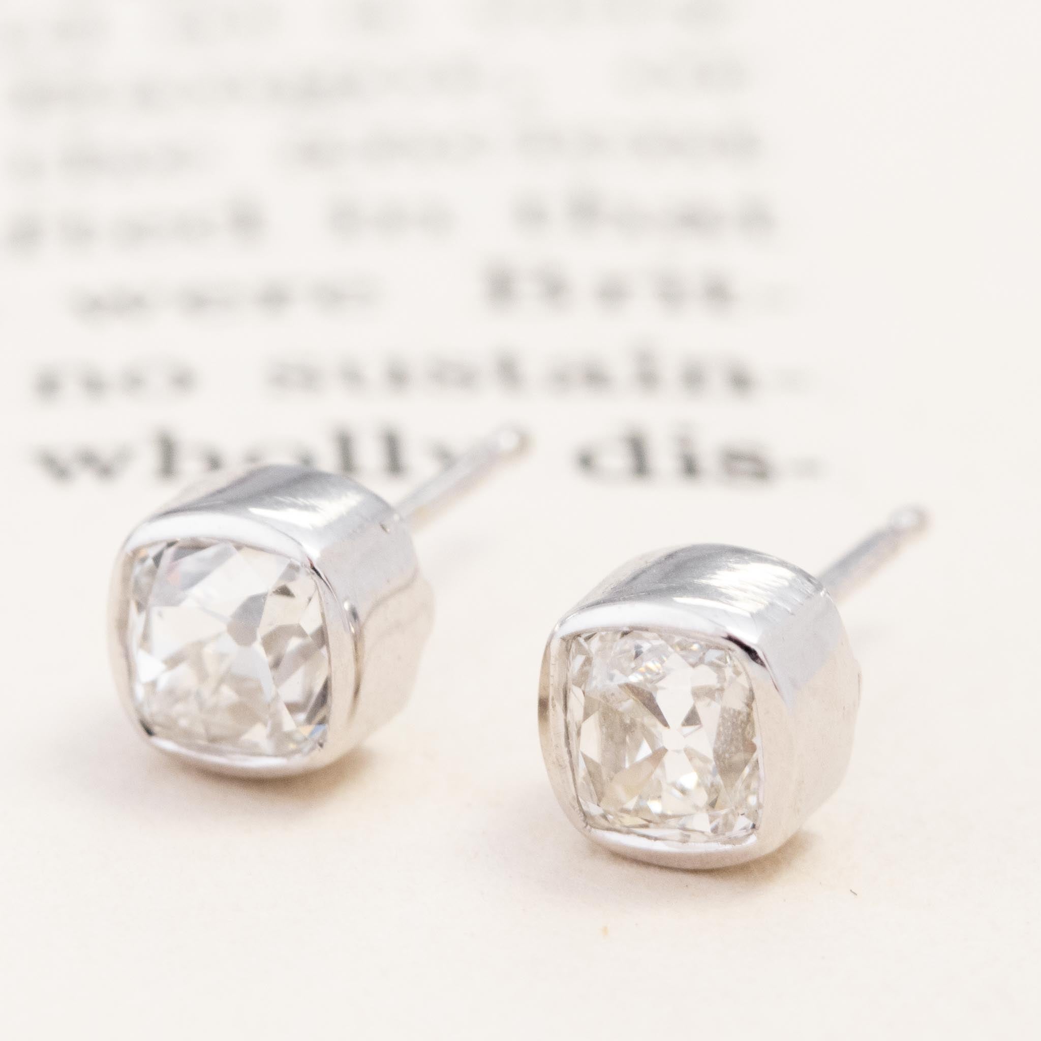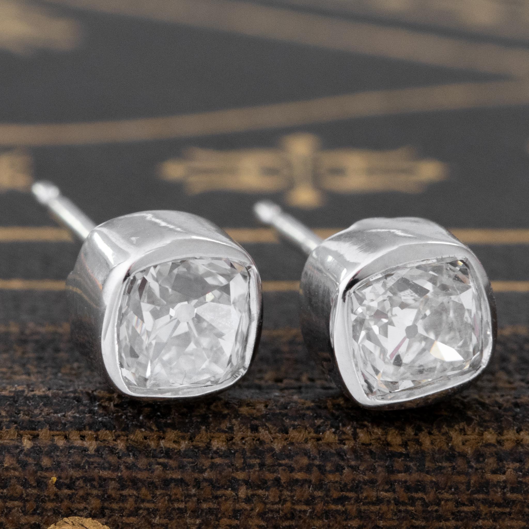 1.08ctw Old Mine Cut Diamond Stud Earrings