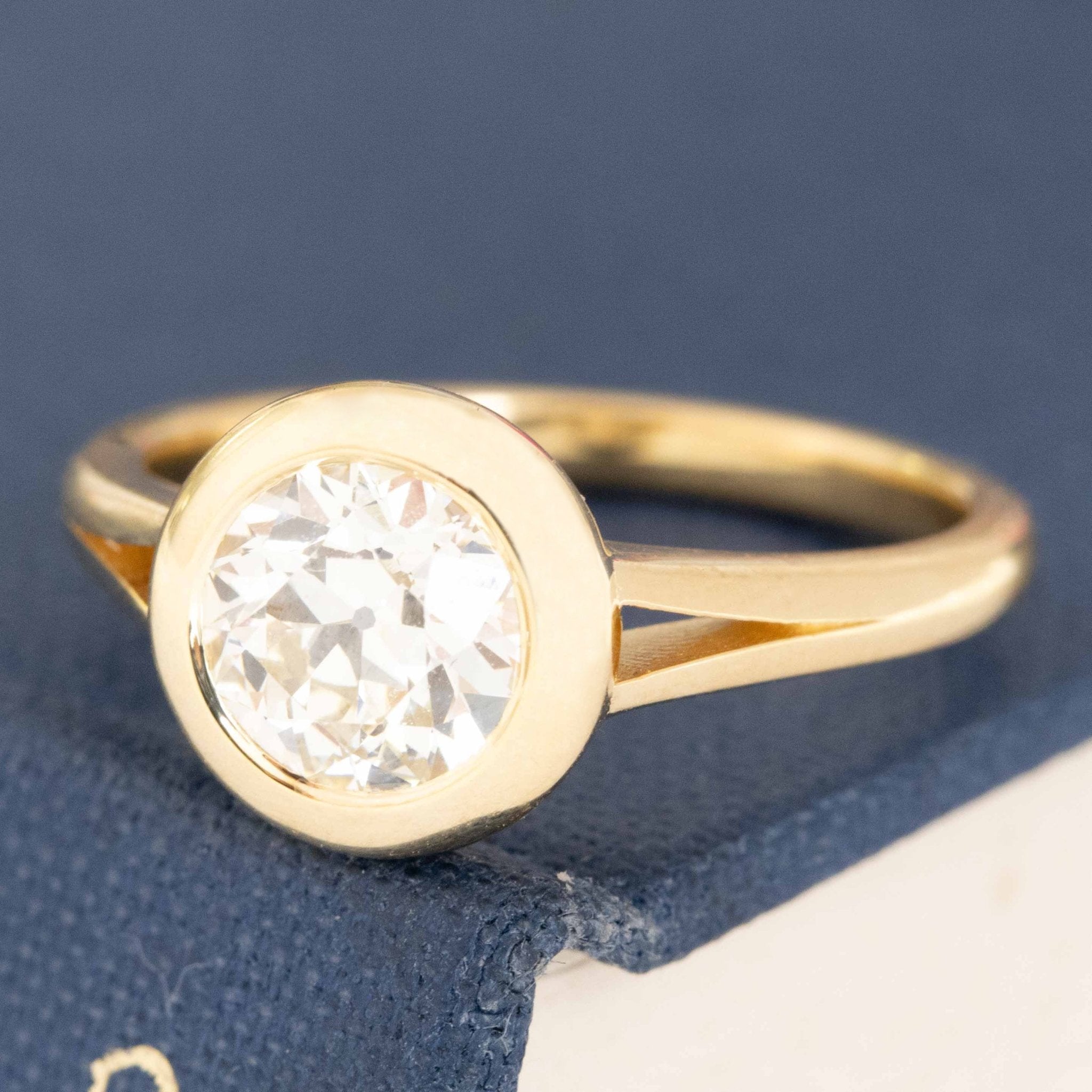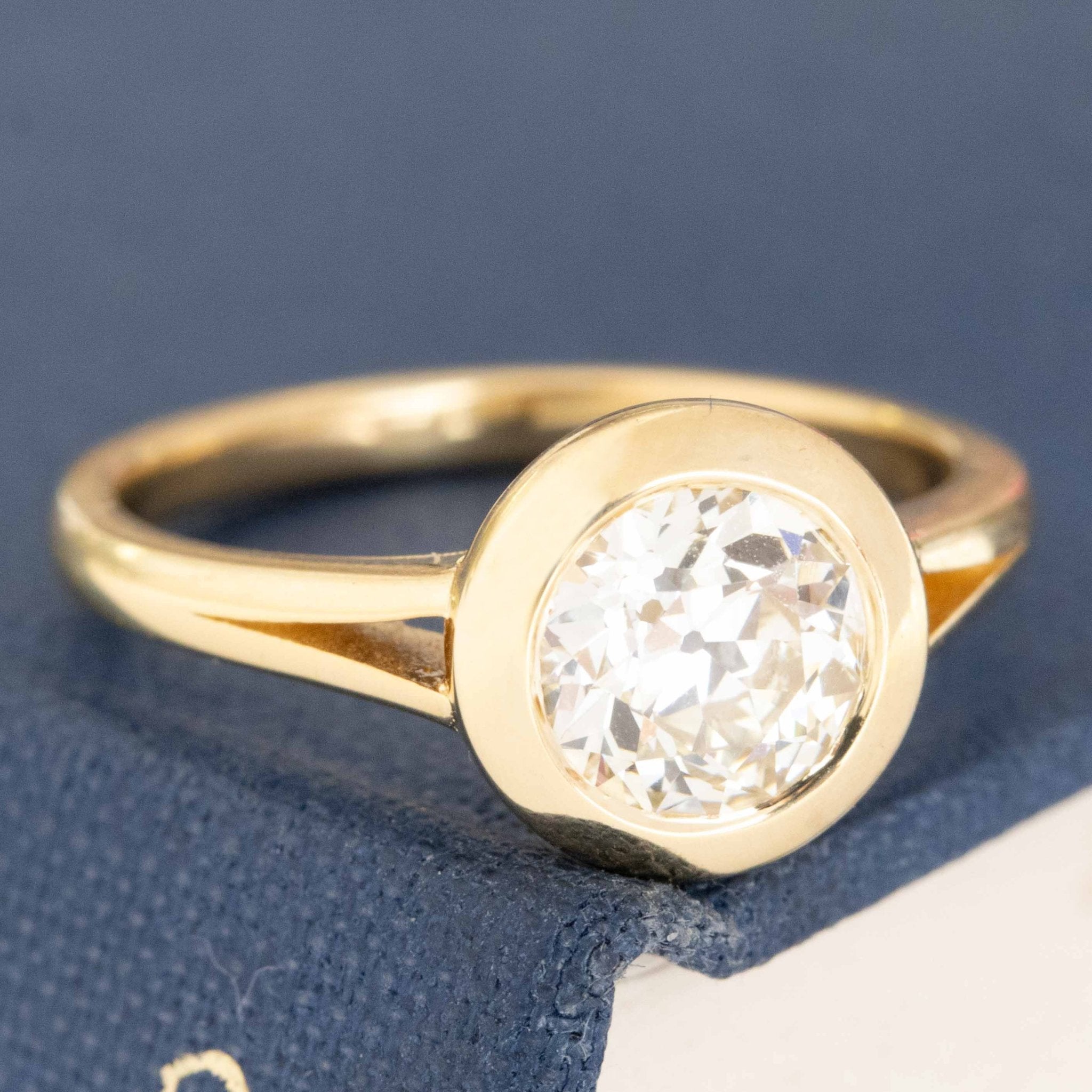 Simple and chic, yet chockfull of personality and charm! The old European cut diamond is a sparkler - with its big, broad facets twinkling like a little firecracker. Set in a chubby, bubble bezel with a slender split shank for some balance and proportions on the finger. Low set on the finger, and looks way bigger than a 1ct to boot!