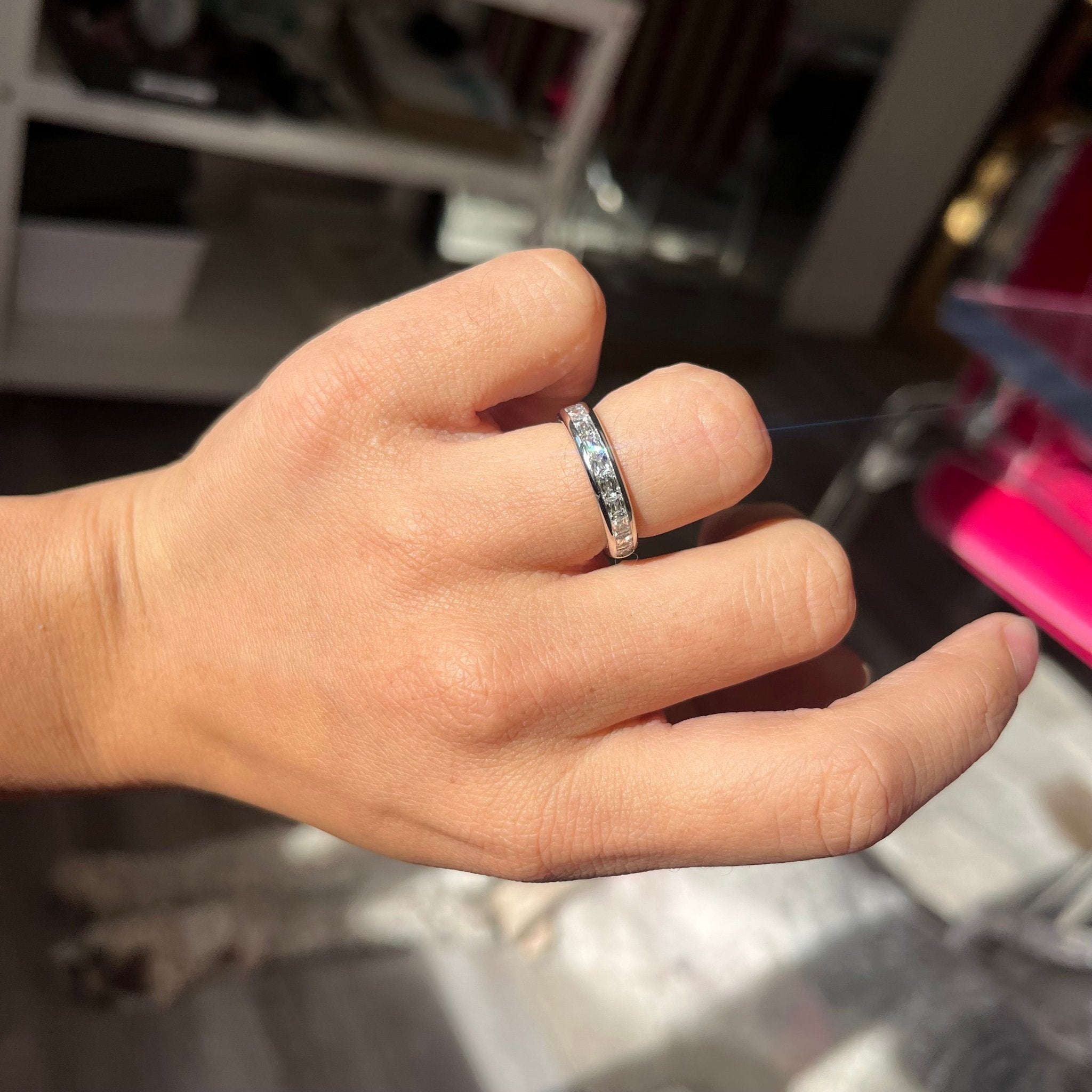 French baguettes possess such a unique charm - in fact, these babies are almost like elongated Peruzzi cuts! We’ve set a parcel of these babies in a half-hoop, slightly curved channel setting to allow for excellent diamond coverage and comfortable wear. Elegant and chic, with plenty of sparkle to go around.