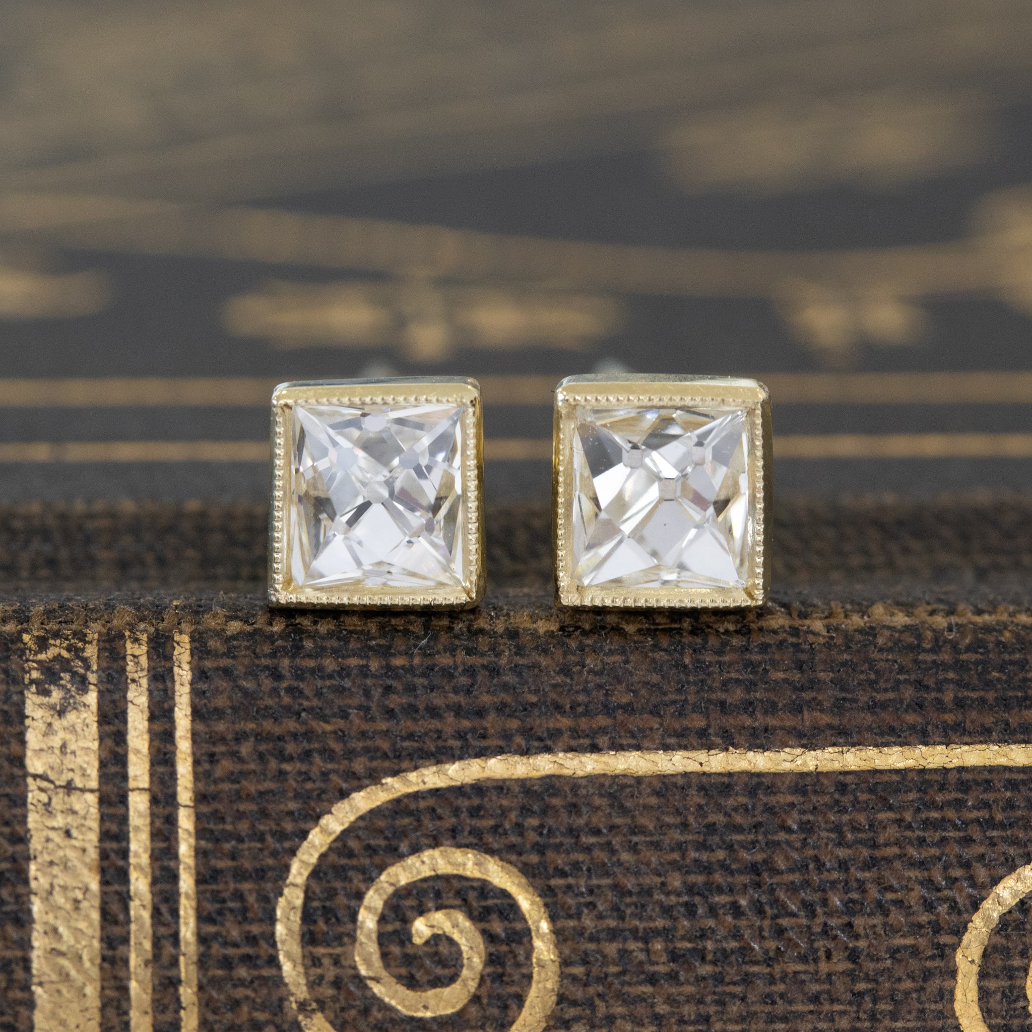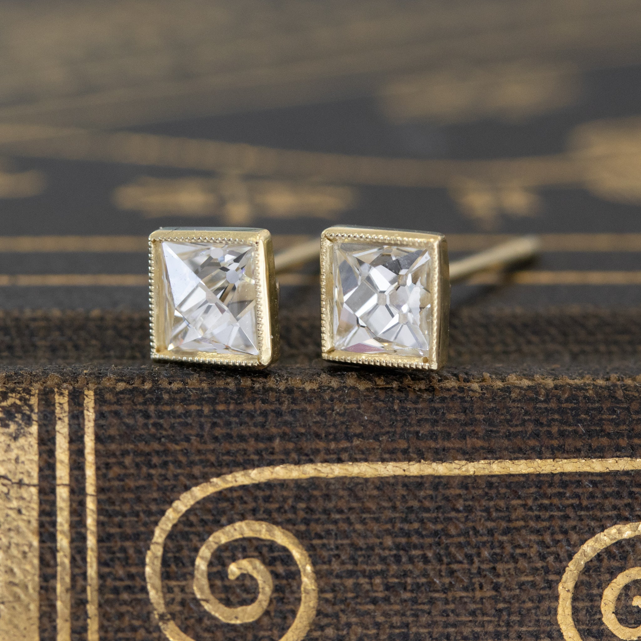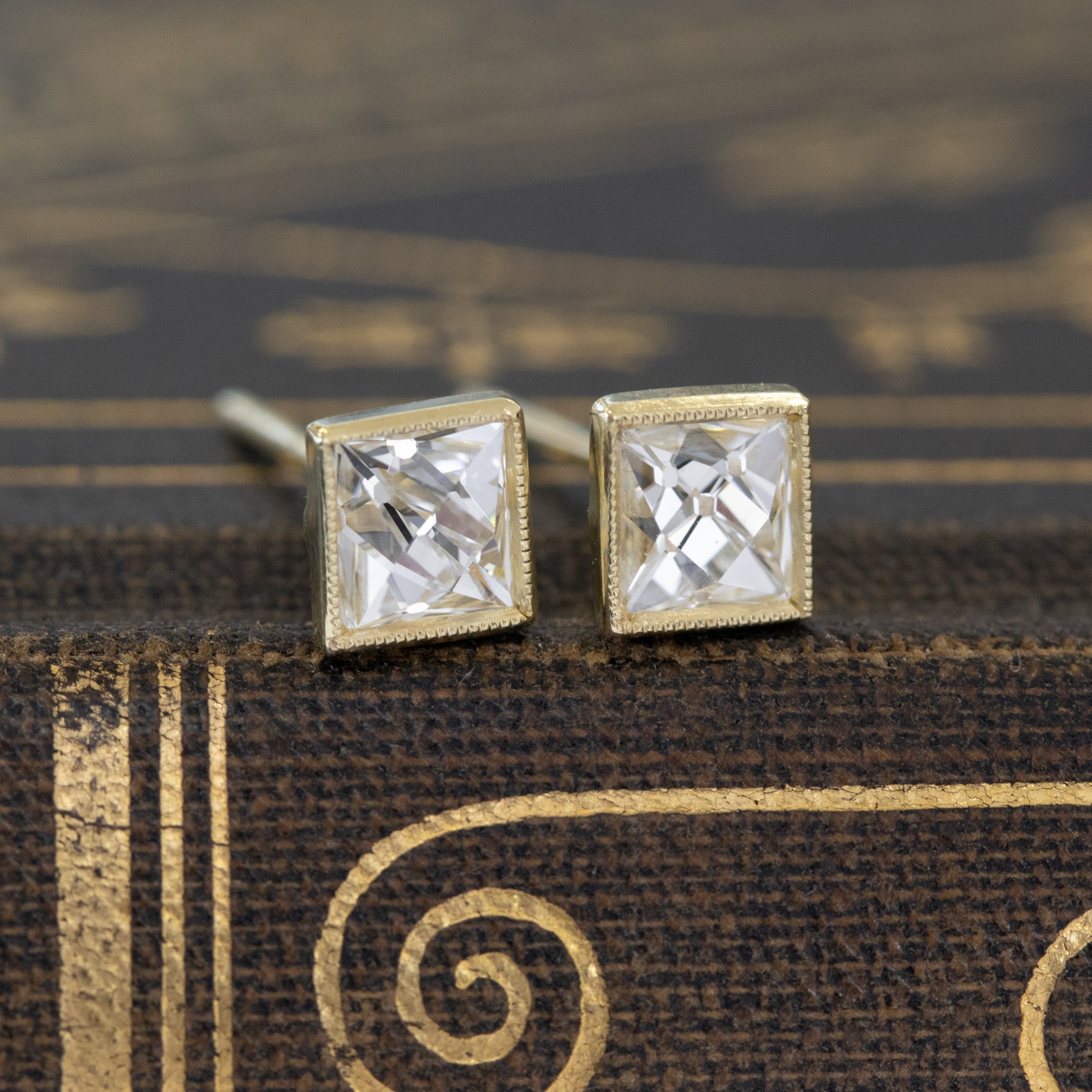 What isn’t there to love about French cut diamonds? They were a standout cut during the Art Deco era, and we think they make the perfect daily diamond stud. We love the unique appearance and crown-like faceting of French cuts, and think that they’ve got a great presence on the ear. Bezel-set in warm yellow gold with fine milgrain detail, you really cannot go wrong with these earrings.