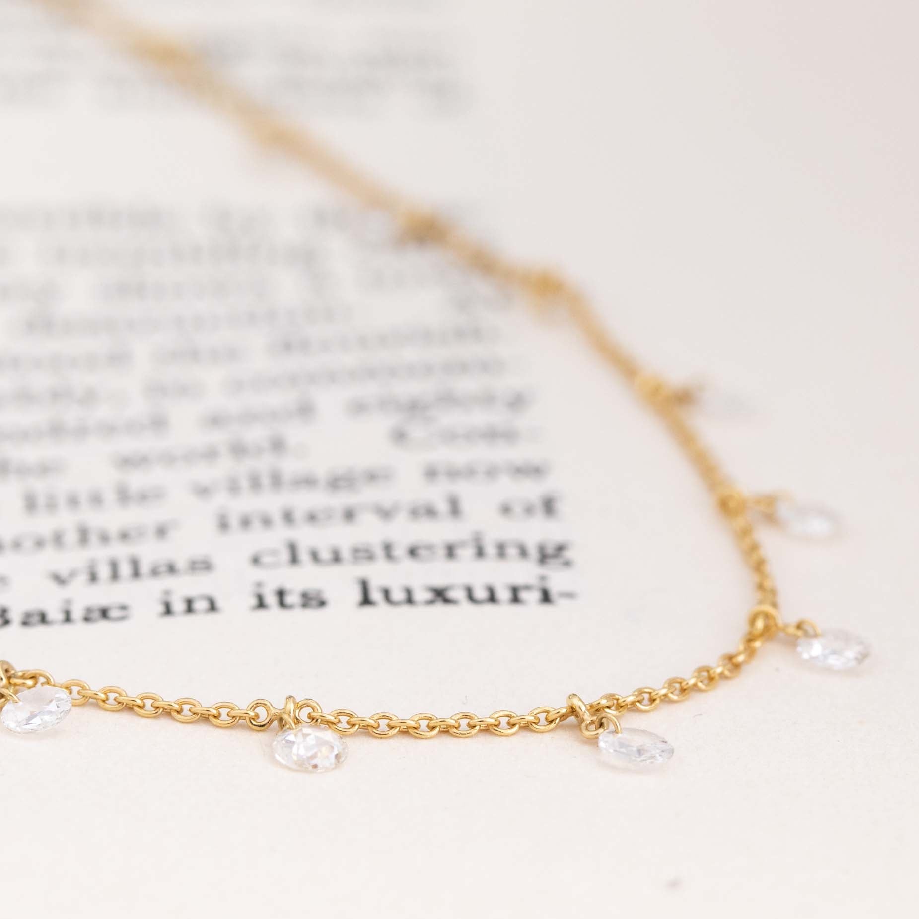 We are truly obsessed with our pierced diamonds - the look is one that is modern, clean and just so chic! On the neck, all you see is the glimmer and shimmer of the diamonds. Perfect to wear on its own, or to anchor a layered stack. Strung on a delicate 18kt yellow gold.