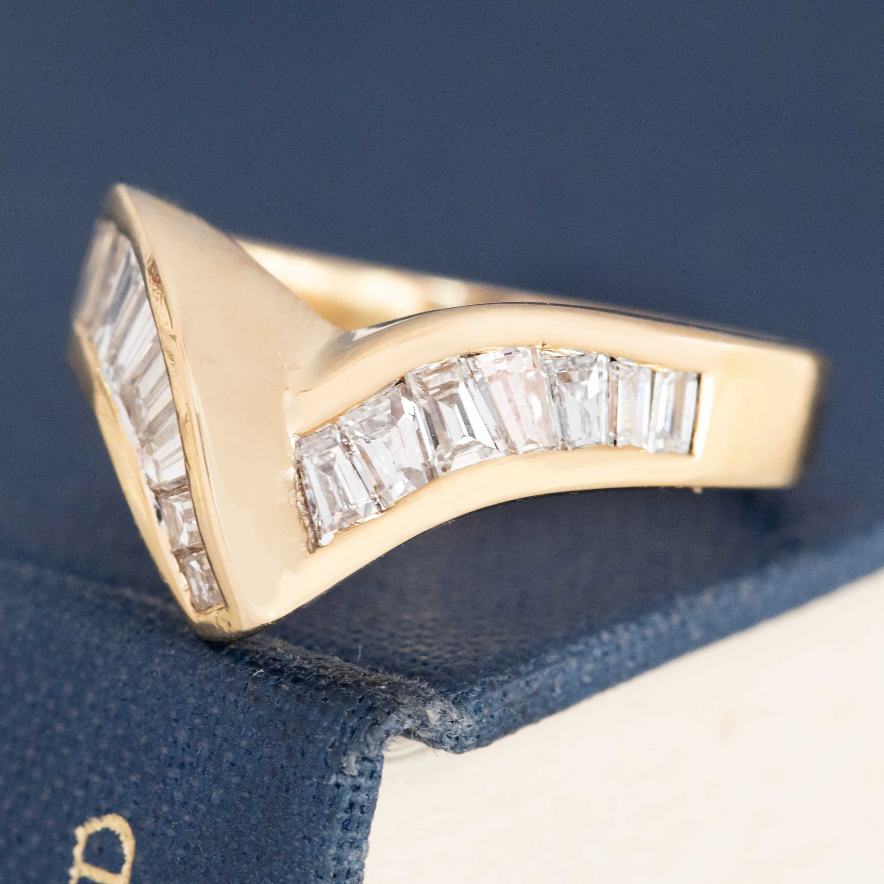 1.10ctw Vintage Baguette Cut Diamond V Ring