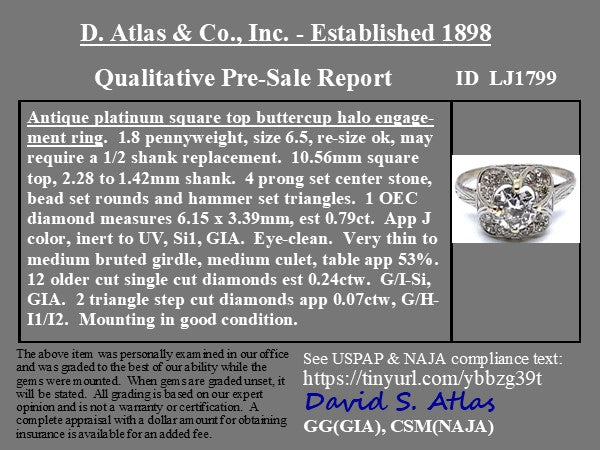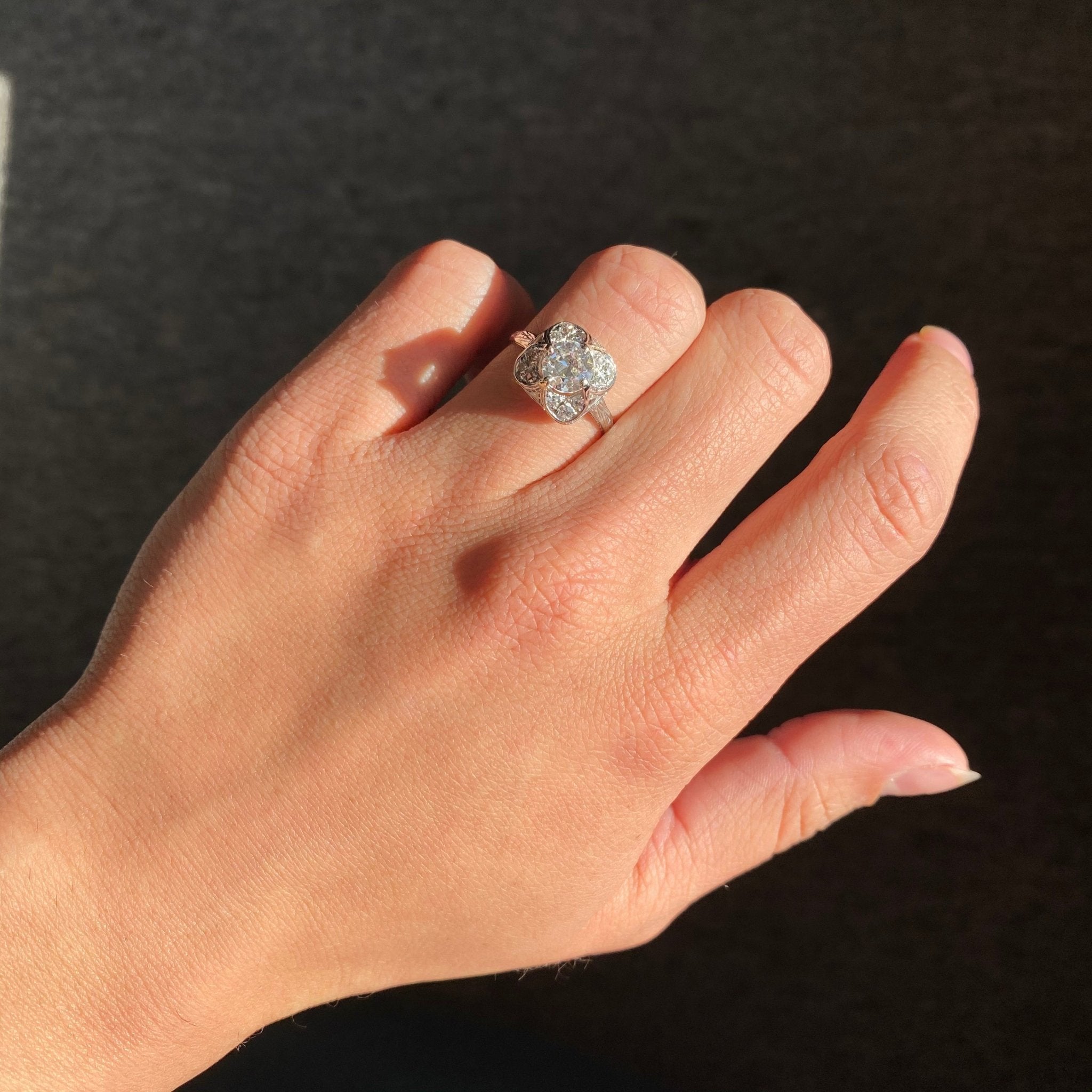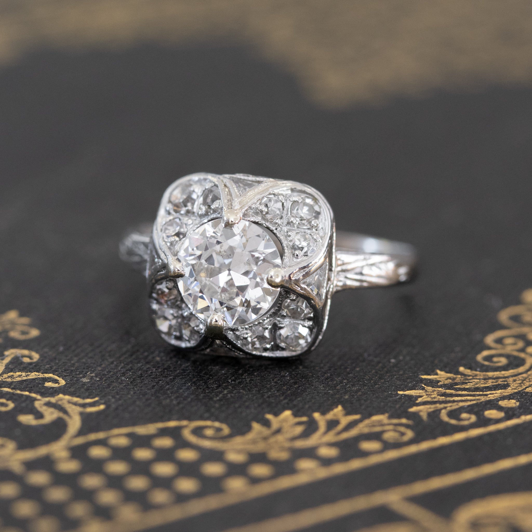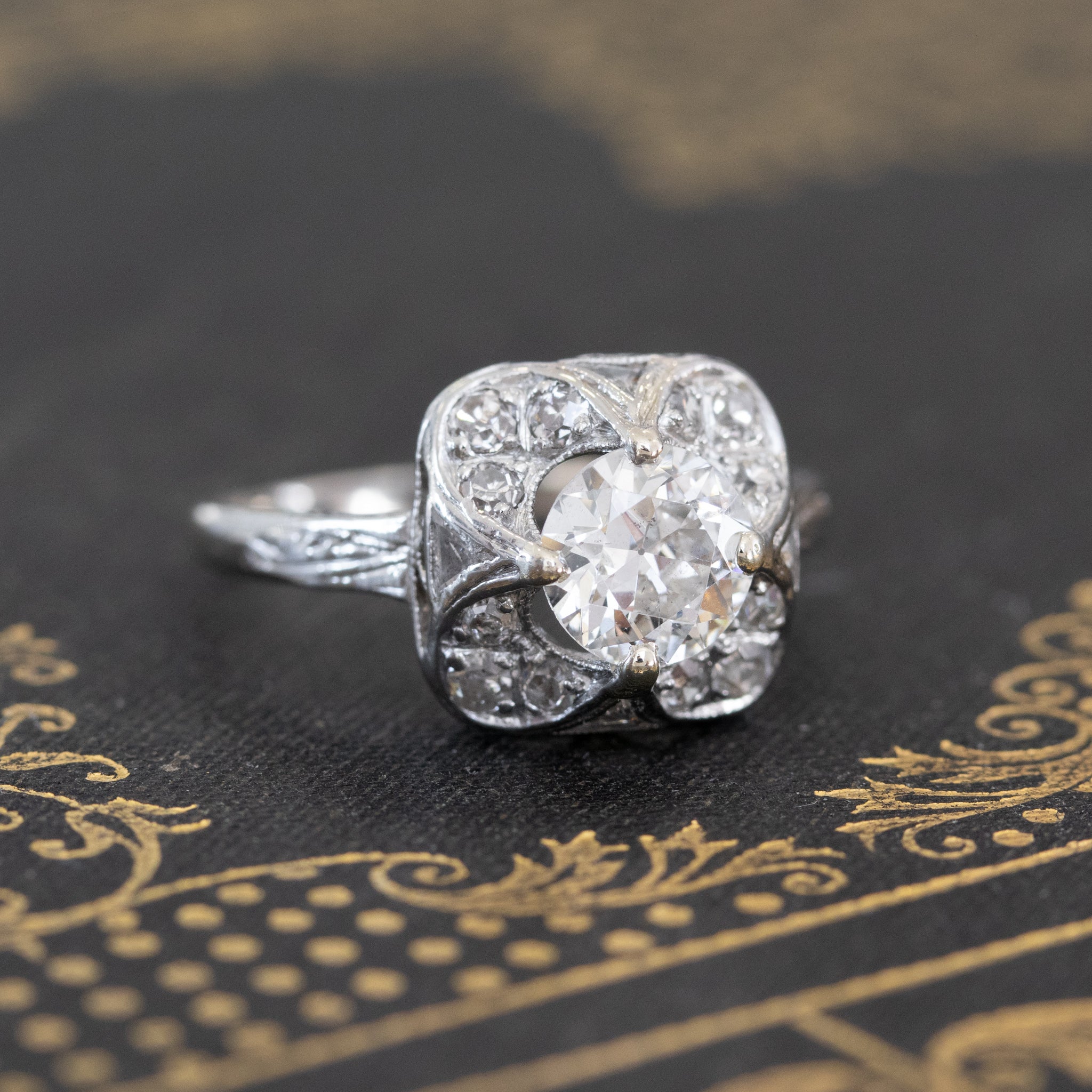The sweetest old European cut set in an antique square top buttercup halo - can it get any better than this?