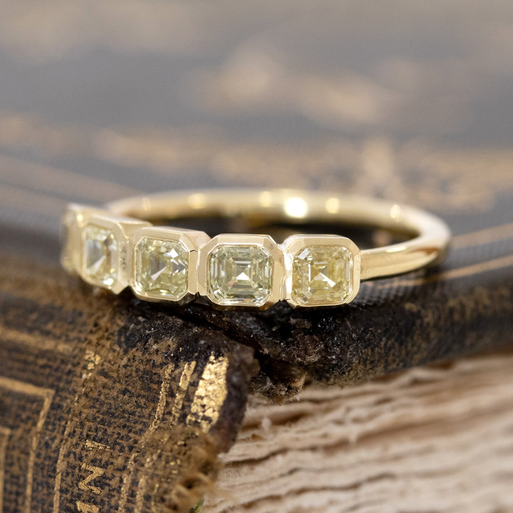 1.14ctw Fancy Yellow Asscher Cut Diamond Bezel Band