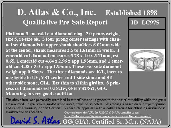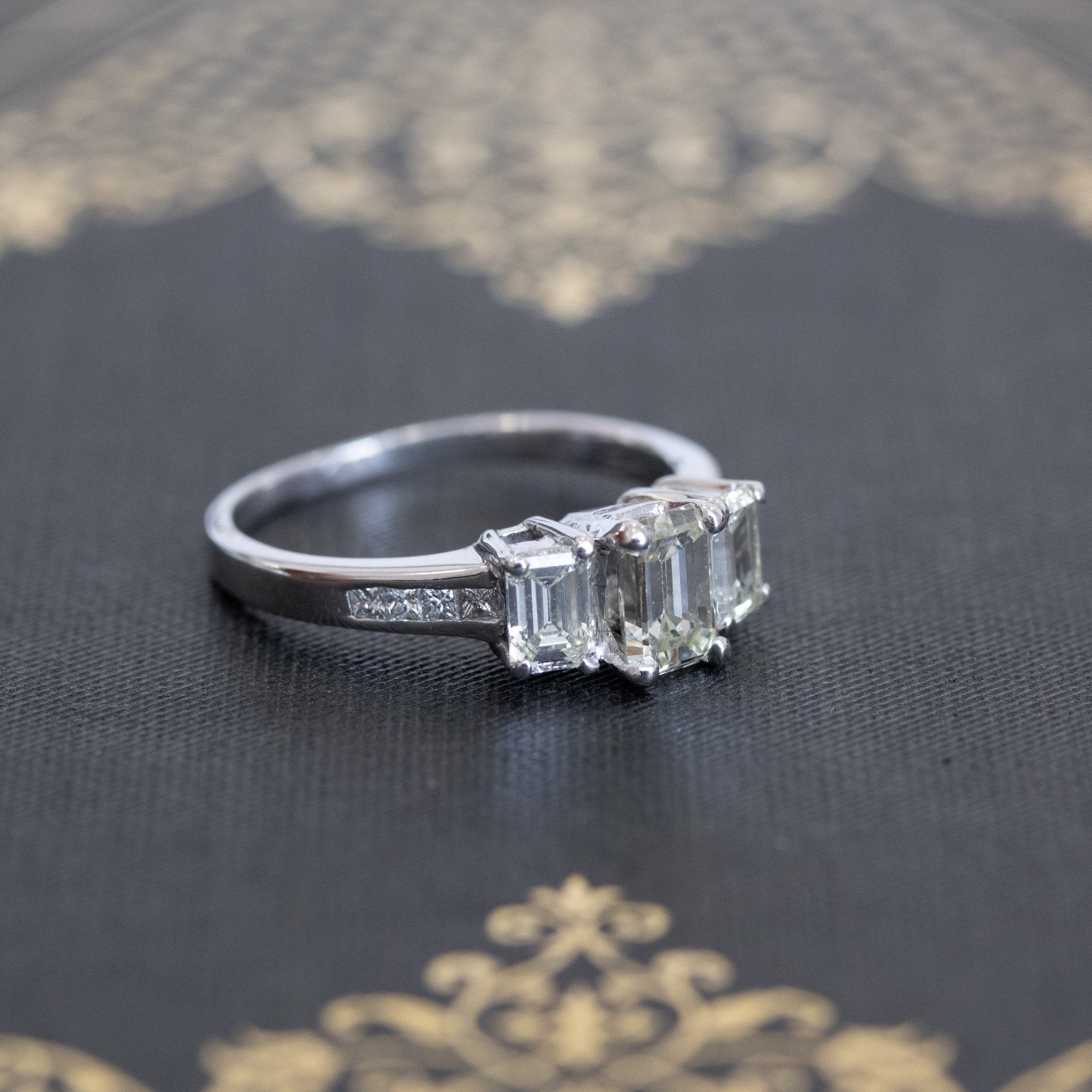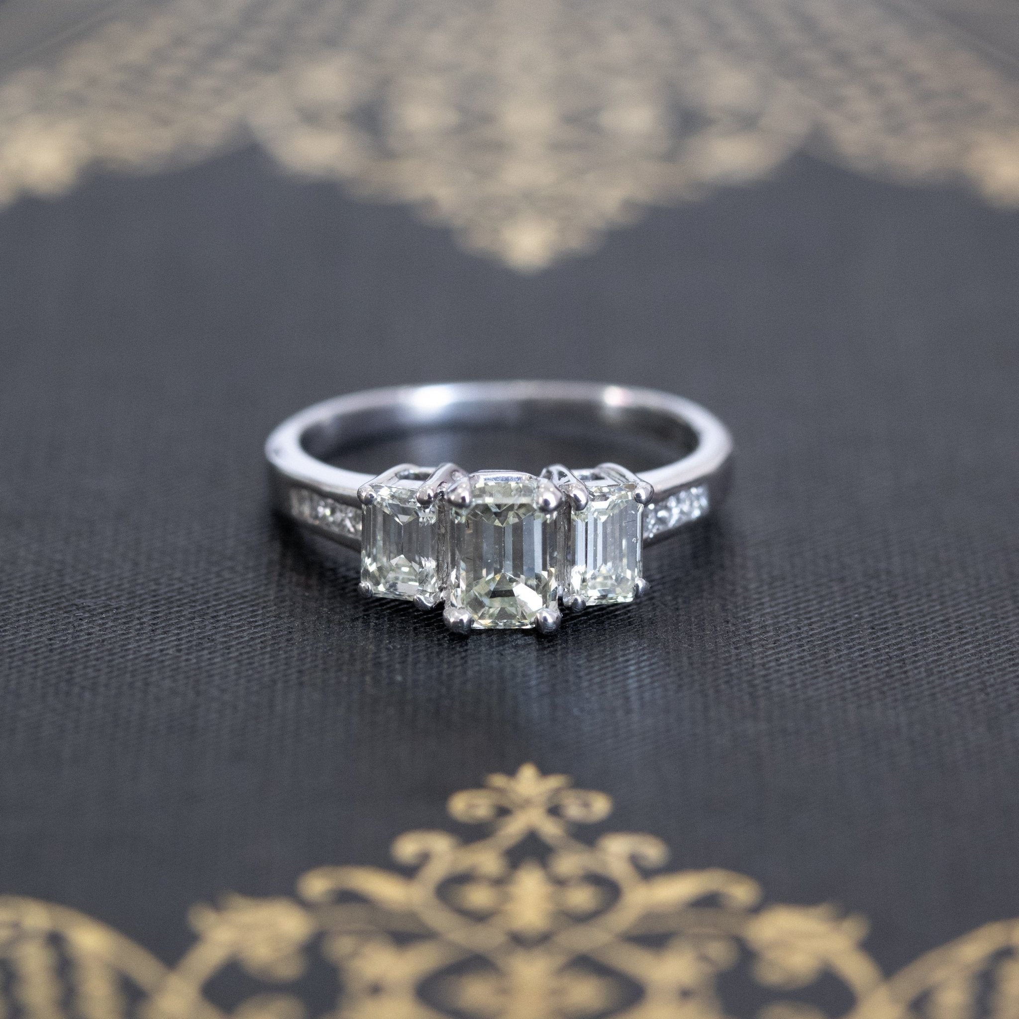 1.15ctw Emerald Cut Diamond Trilogy Ring