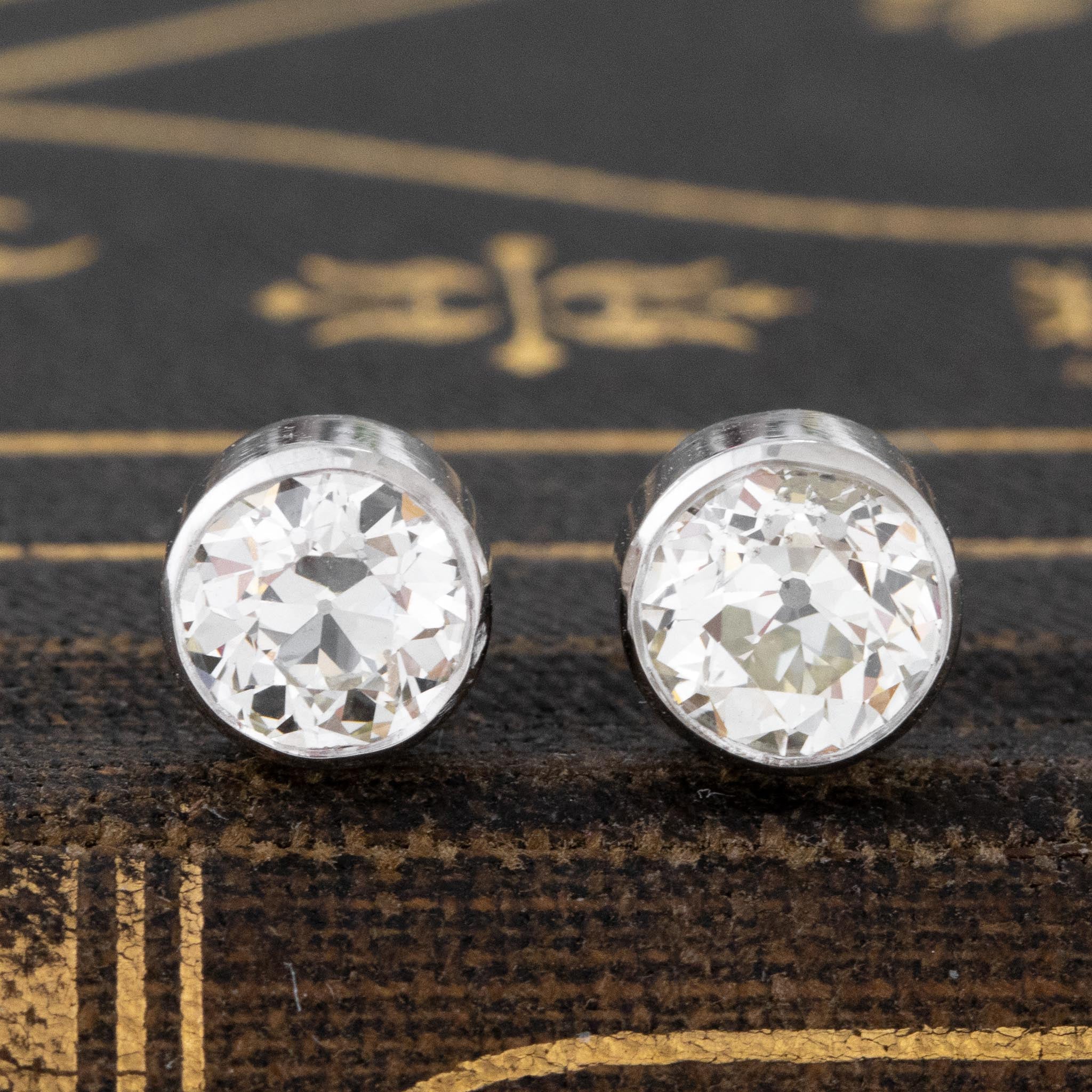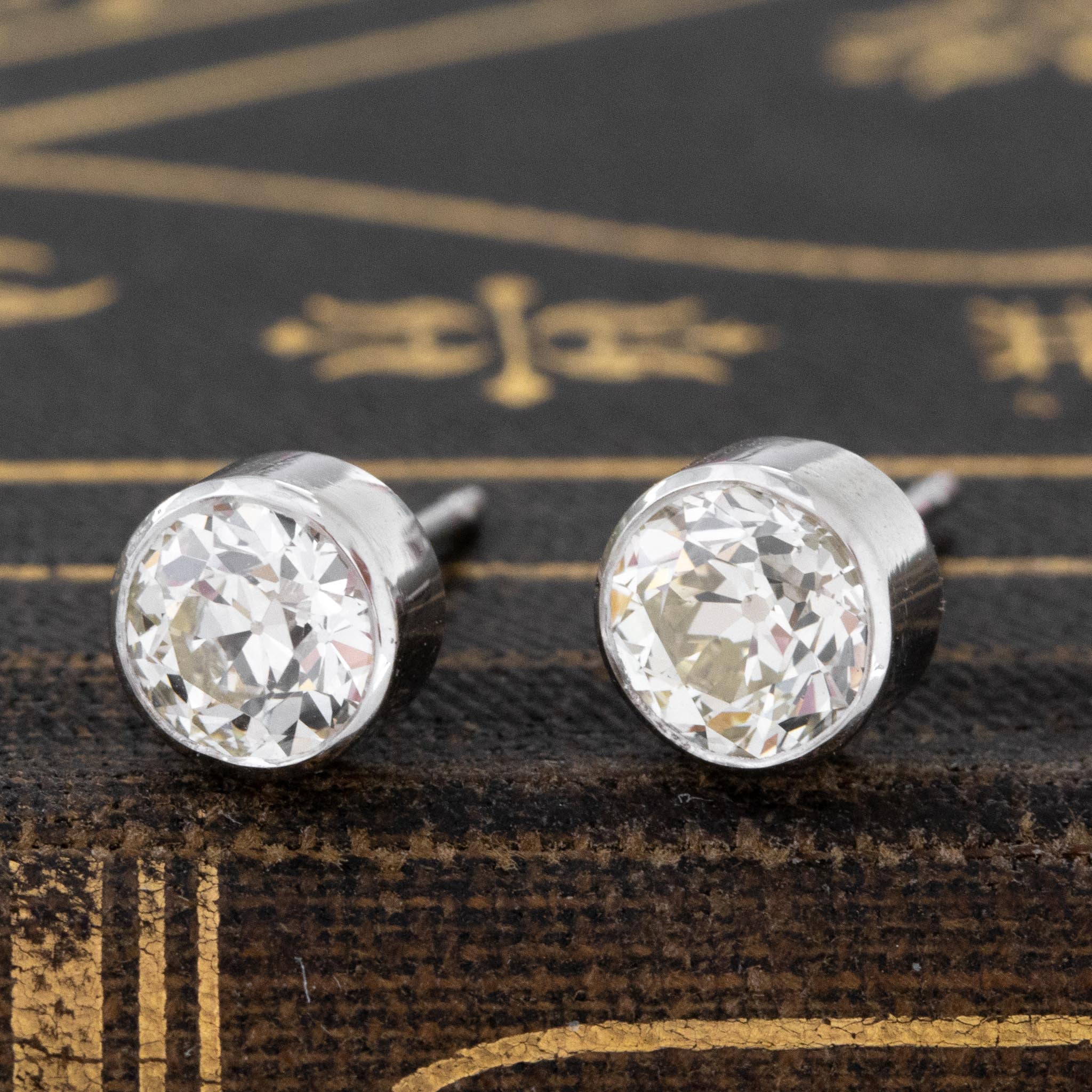 1.15ctw Old European Cut Diamond Bezel Stud Earrings