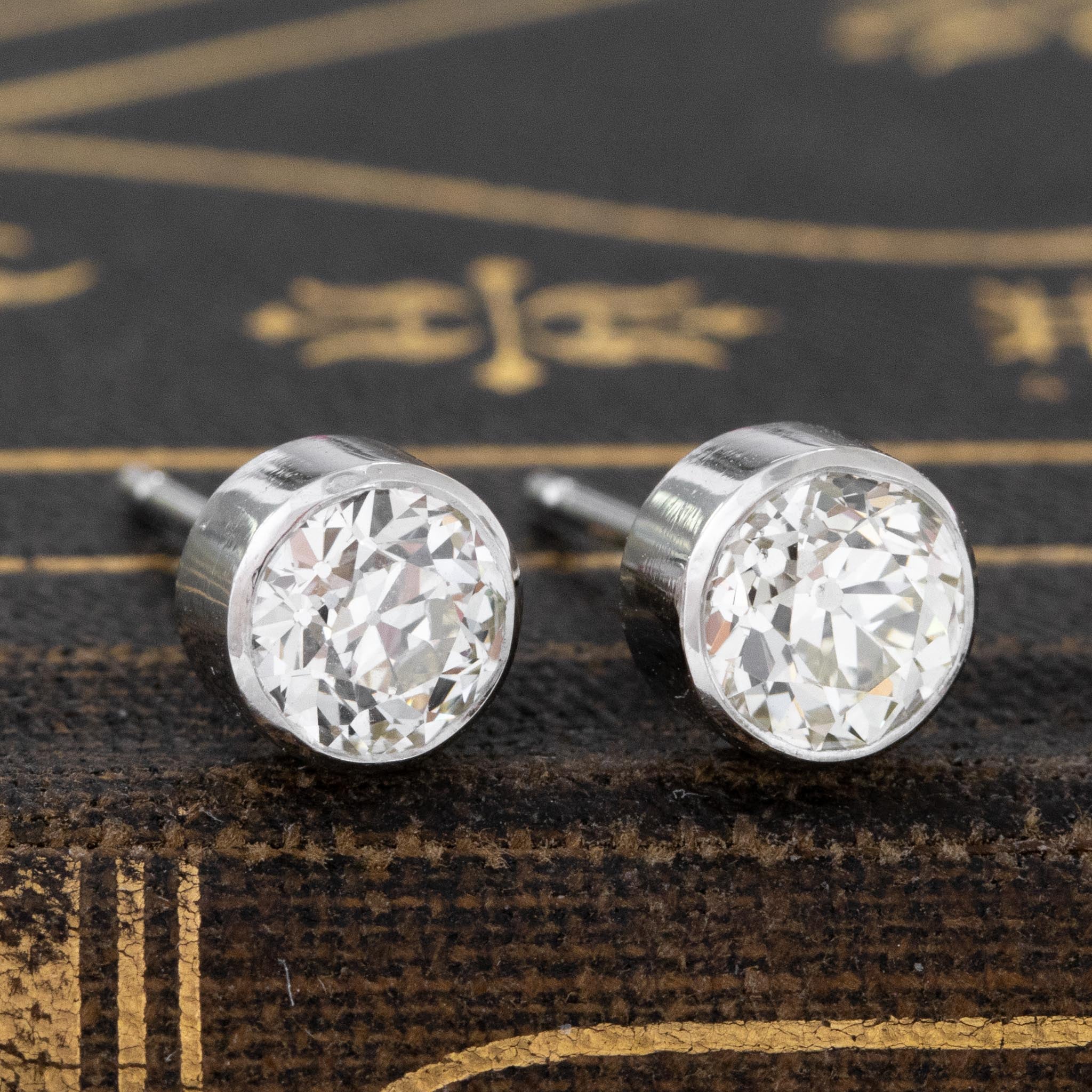 Vintage old European cut diamond studs in contemporary platinum bezels - old meets new in the most chic and easy way! We love using old cut diamonds in earring studs, as they’ve got so much fire and sparkle to them. Set in sleek bezels for a clean and easy piece of jewelry you can wear for the rest of your days.