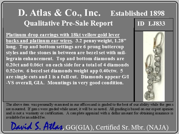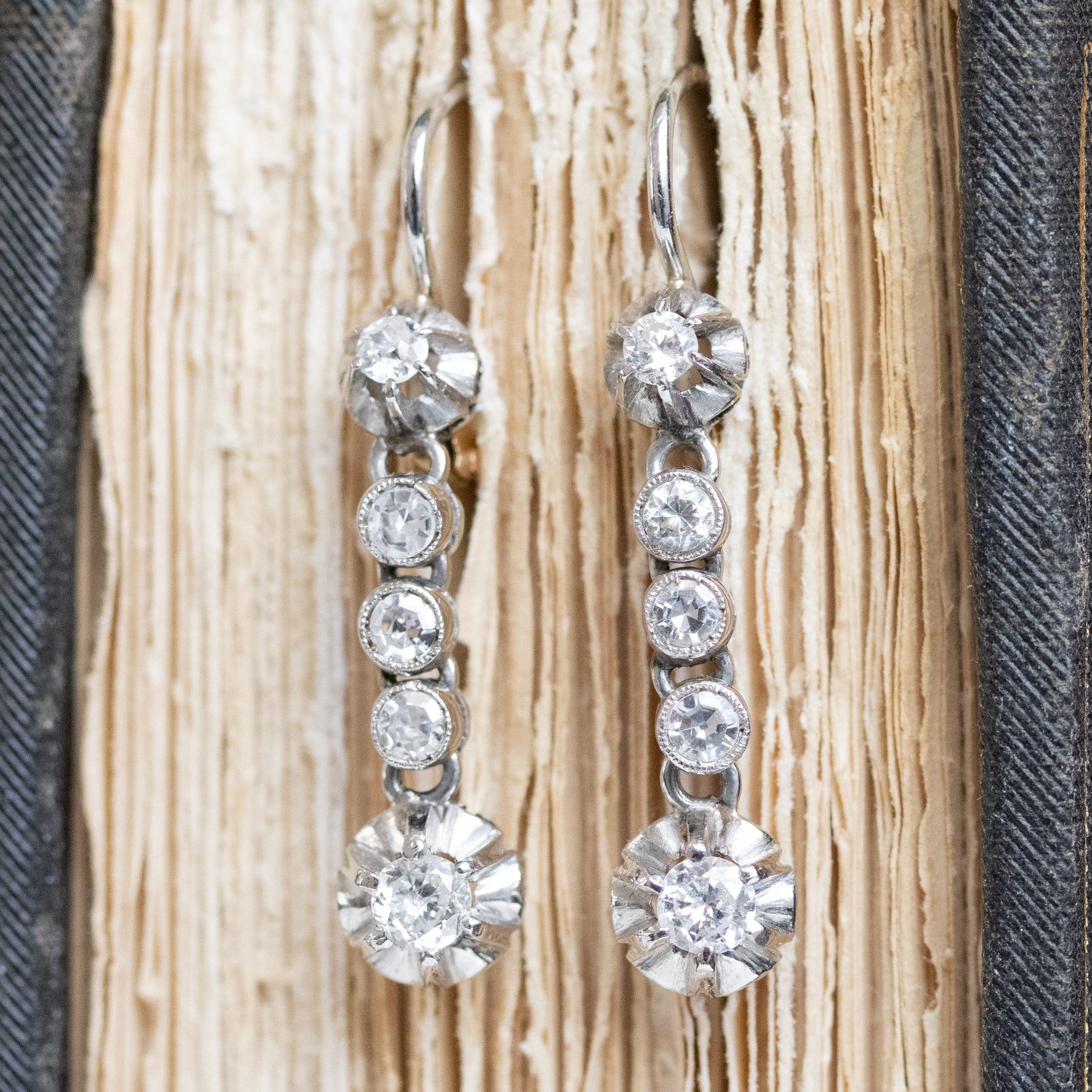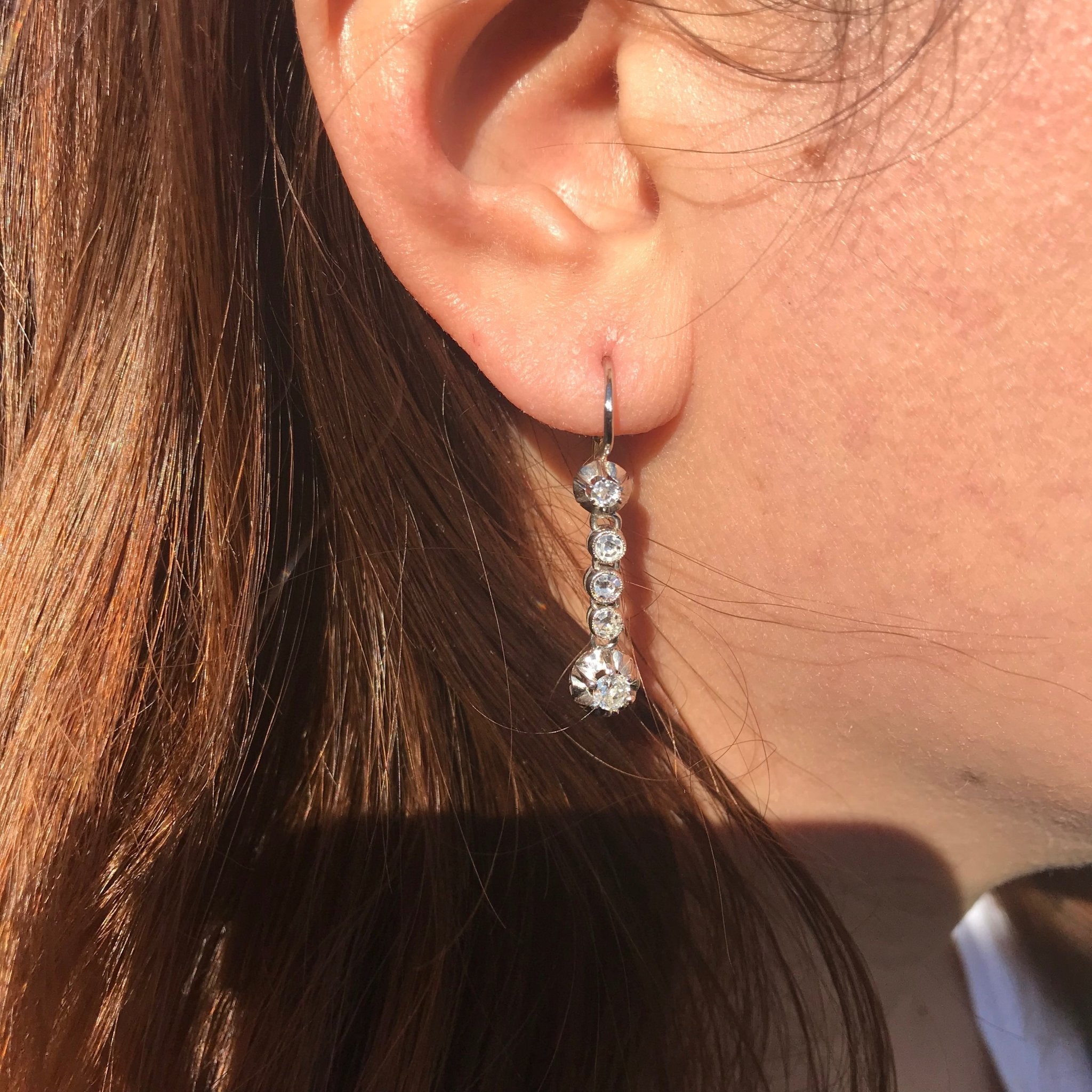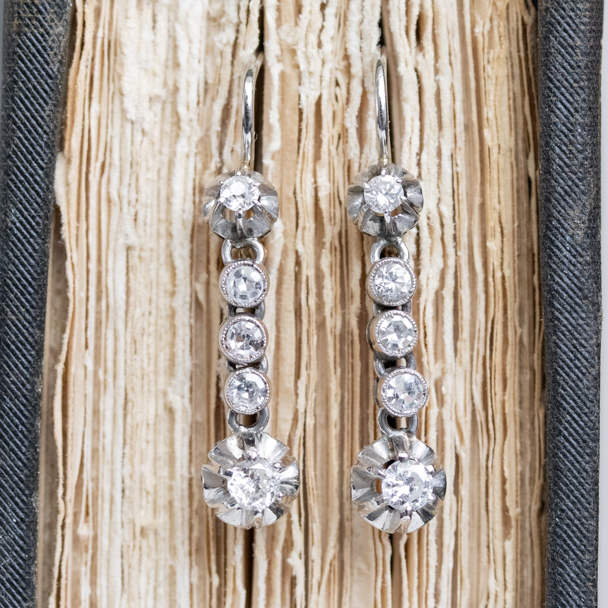 1.18ctw Vintage Old European Cut Diamond Buttercup Drop Earrings