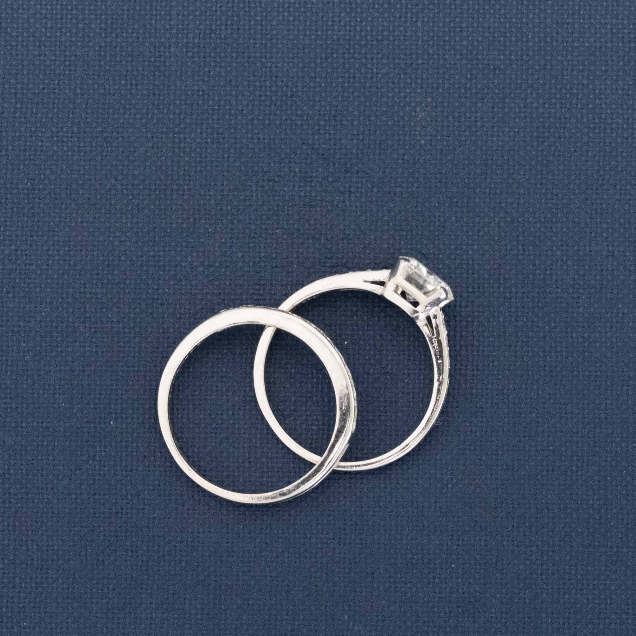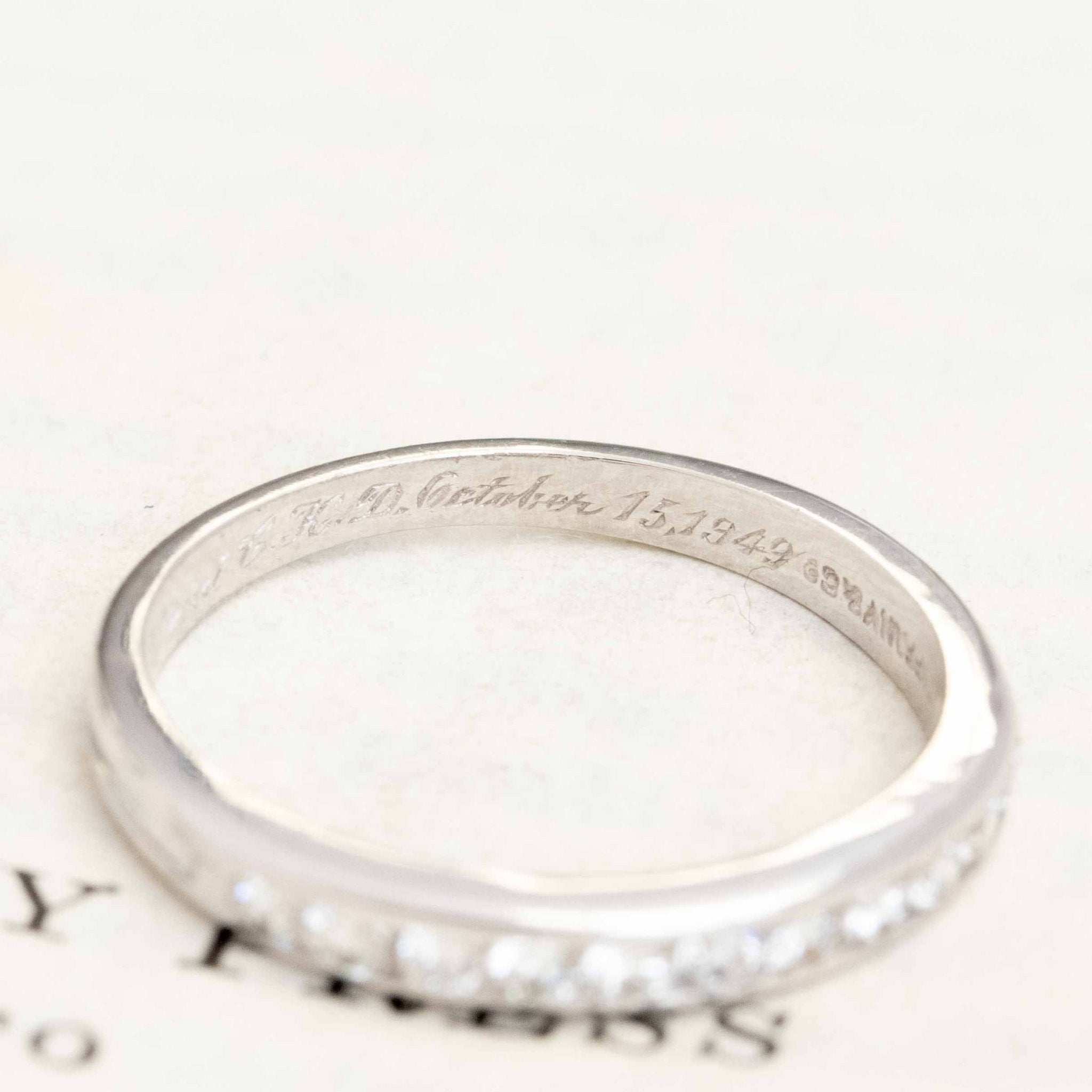 Only the sweetest and most charming wedding set there is! A timeless ad certainly classic wedding set from Tiffany & Co, coming in its original box (back when it was red leather), and inscribed with the original wedding date "JK and CKD Oct 15 1949" A truly special wedding set, ready to now become your own family heirloom!