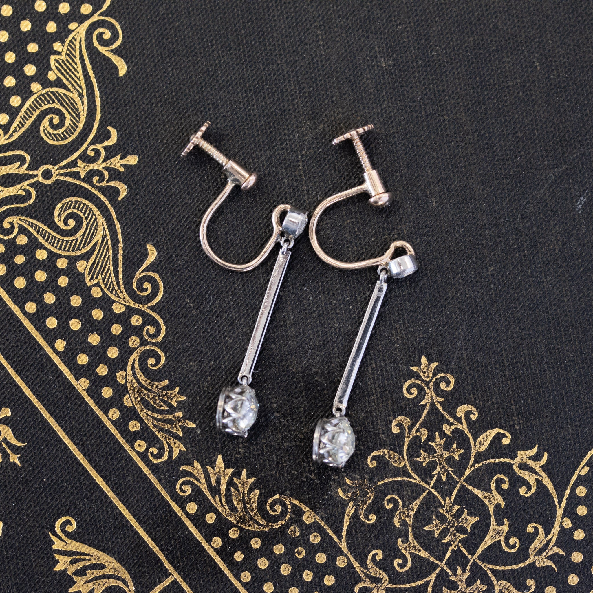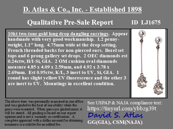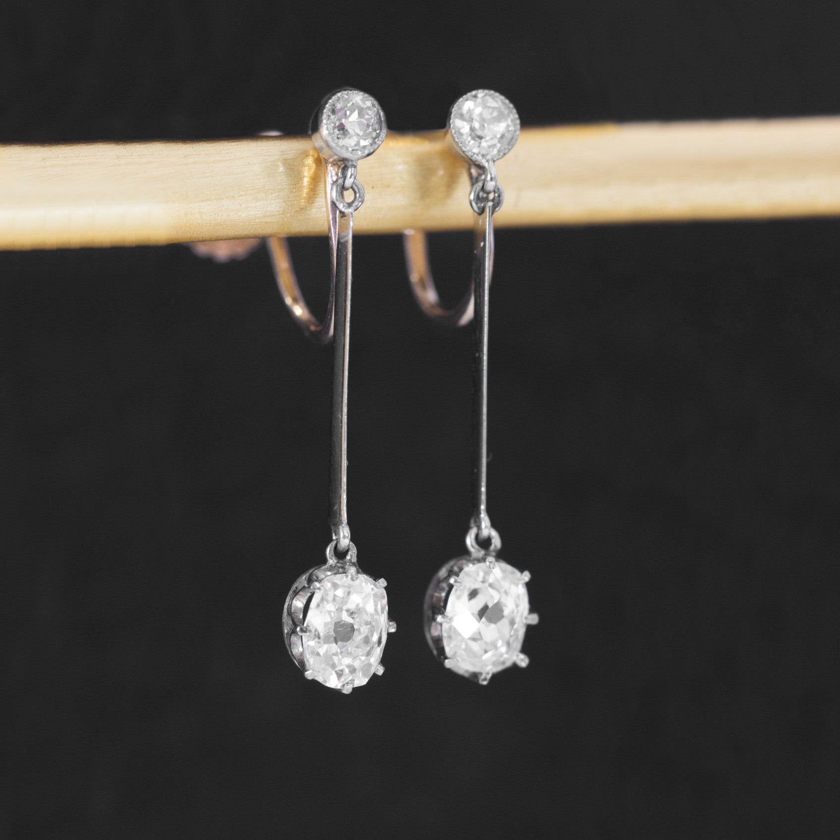 1.19ctw Antique Oval Cushion Cut Diamond Long Drop Earrings