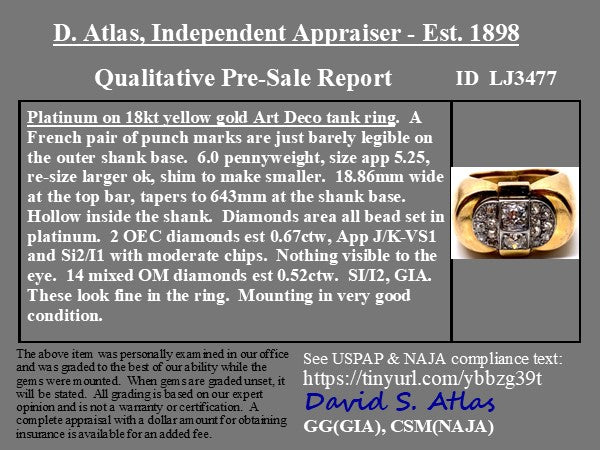 1.19ctw Art Deco Old Cut Diamond Tank Ring, French
