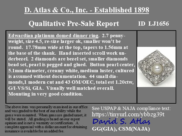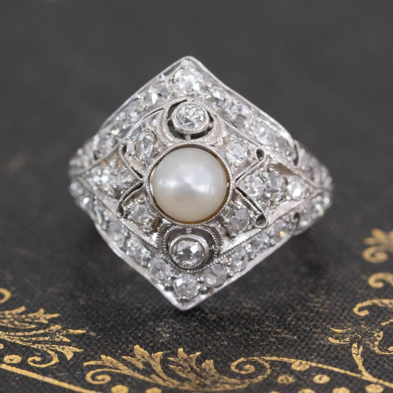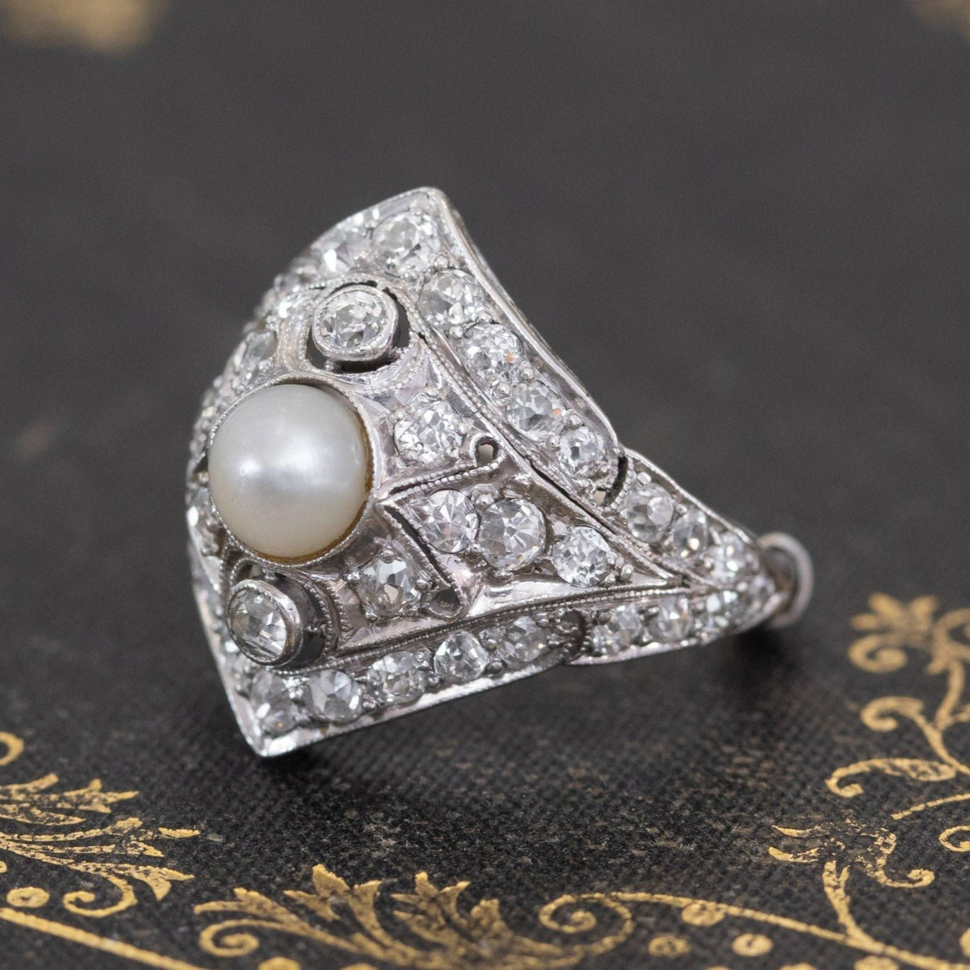 1.20ctw Edwardian Old European Cut & Pearl Dome Ring