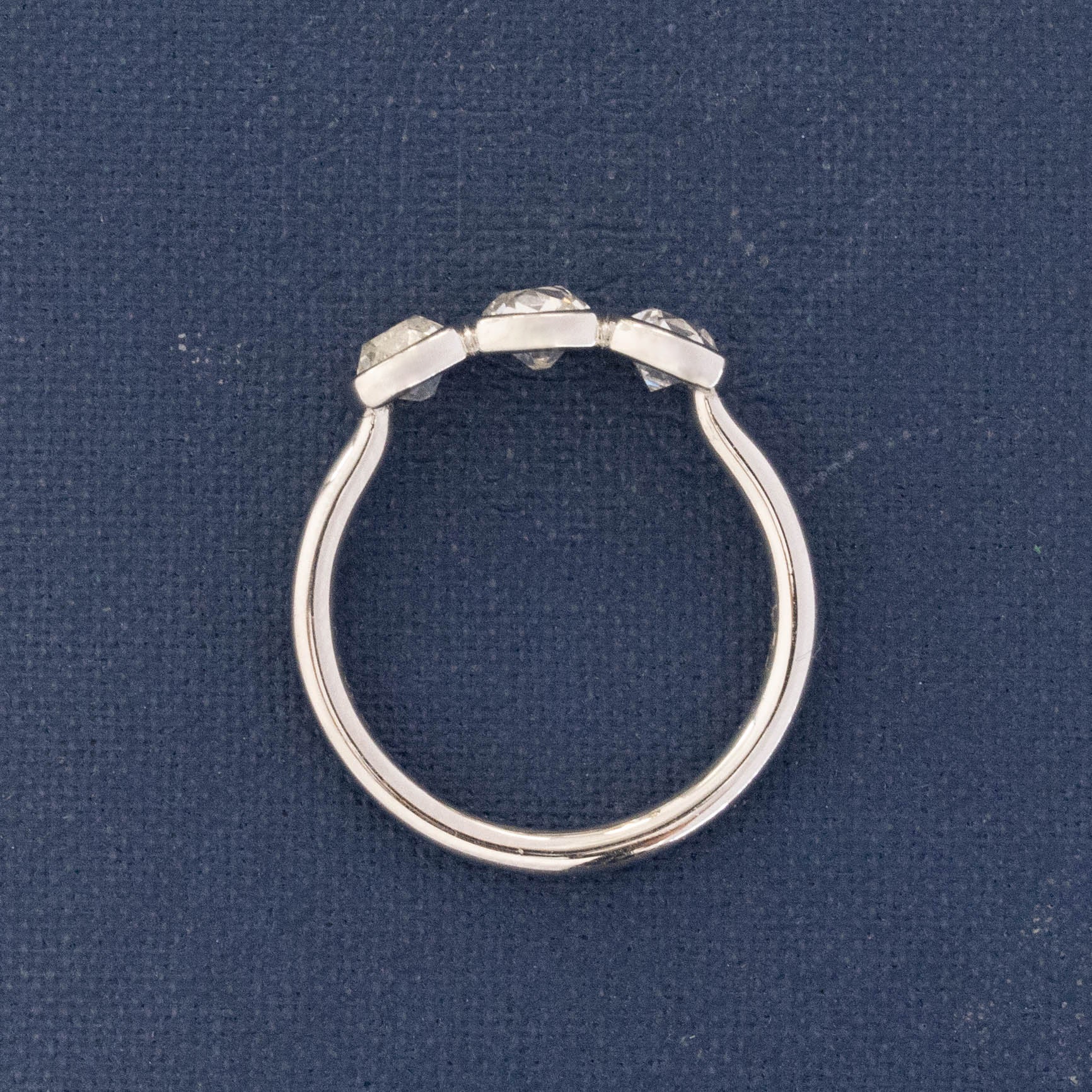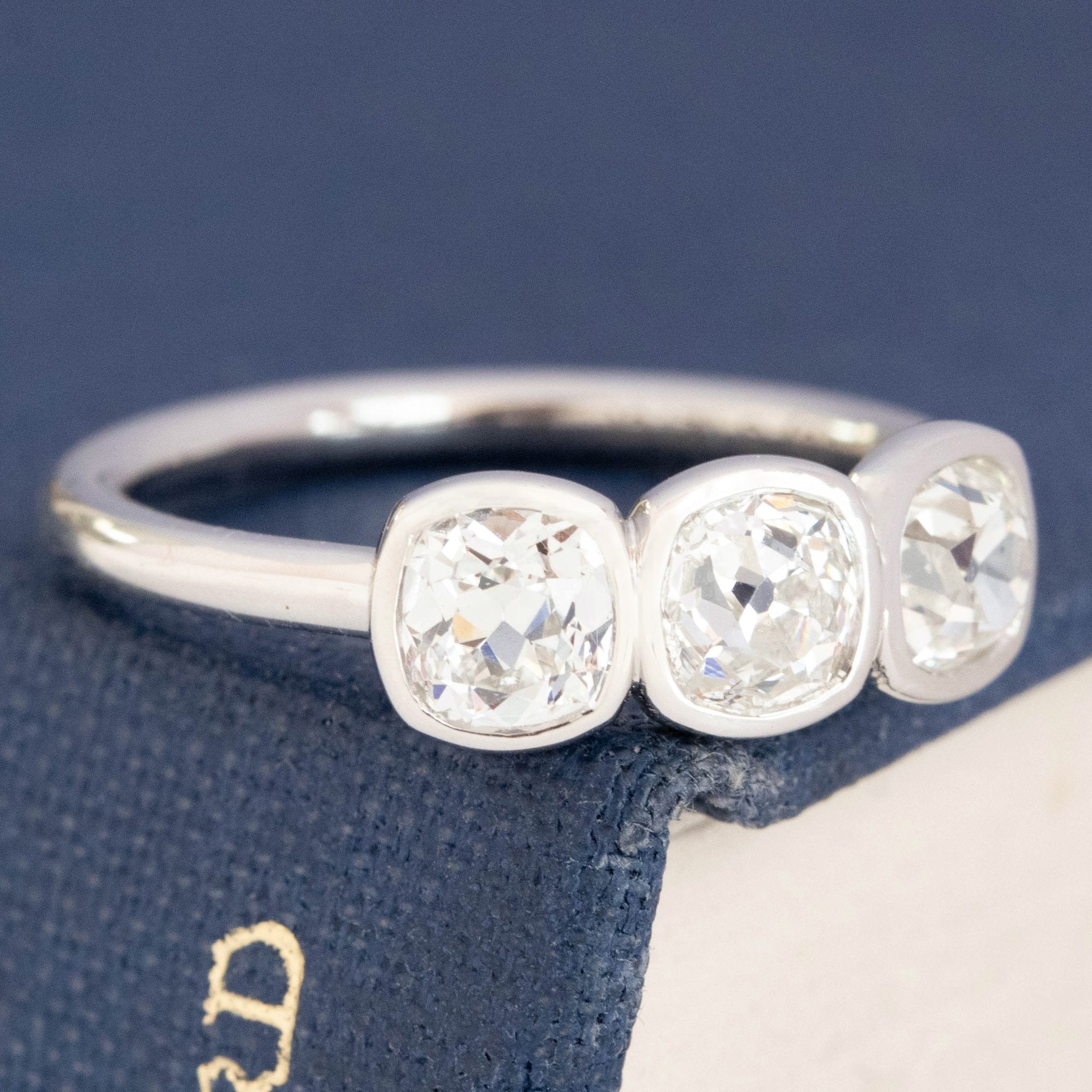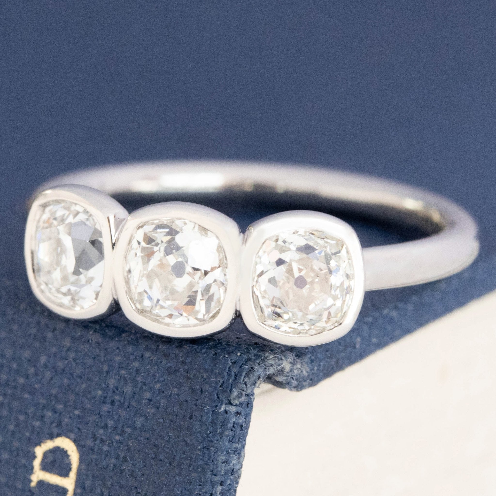 1.21ctw Old Mine Cut Diamond Bezel Trilogy Ring