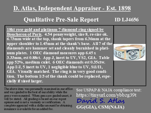 1.23ctw Vintage Old European Cut Diamond Ring by Boucheron Paris