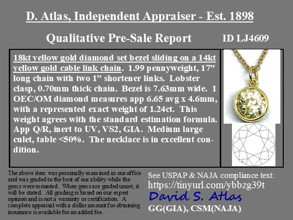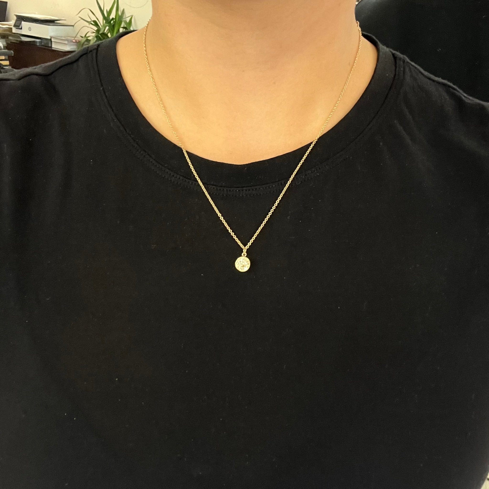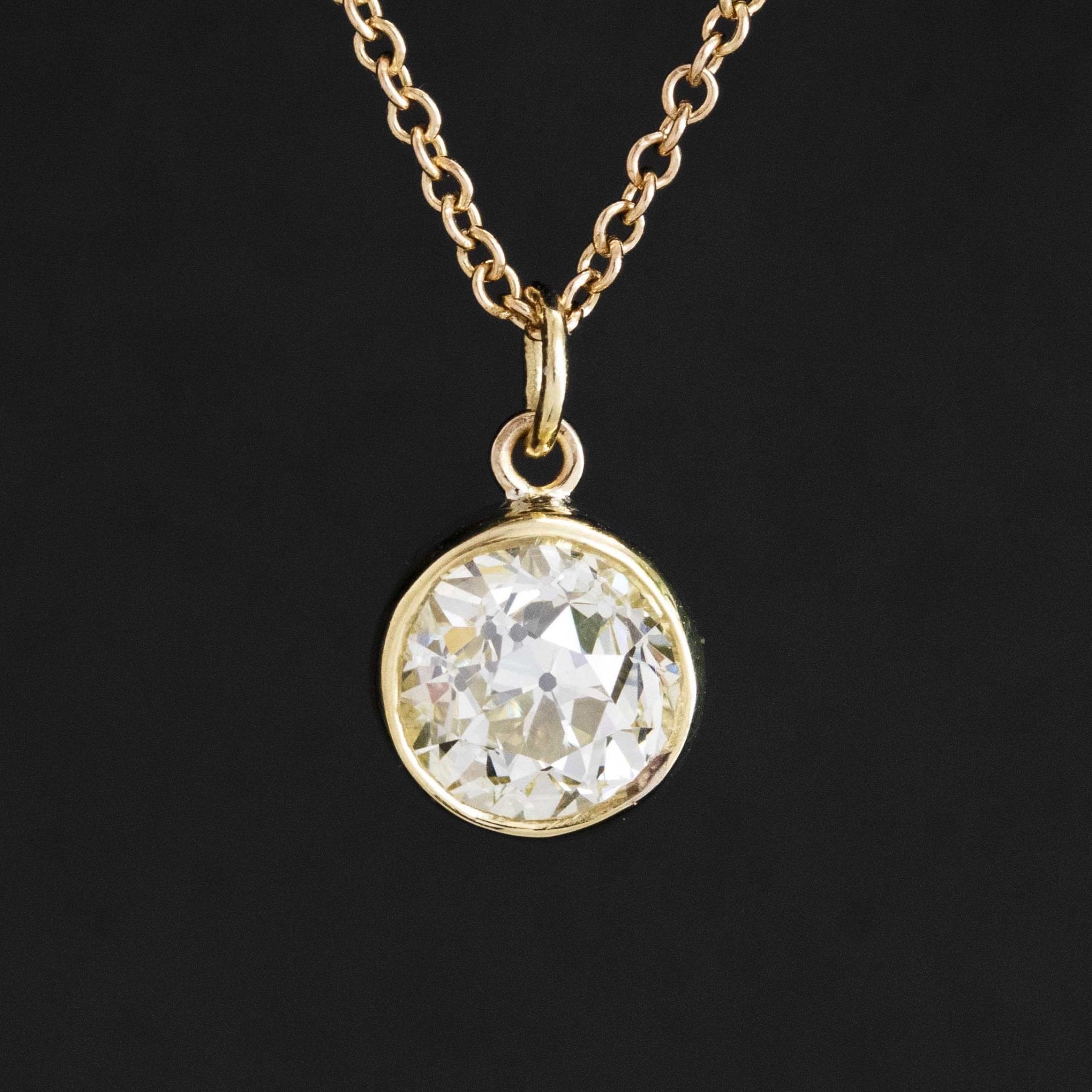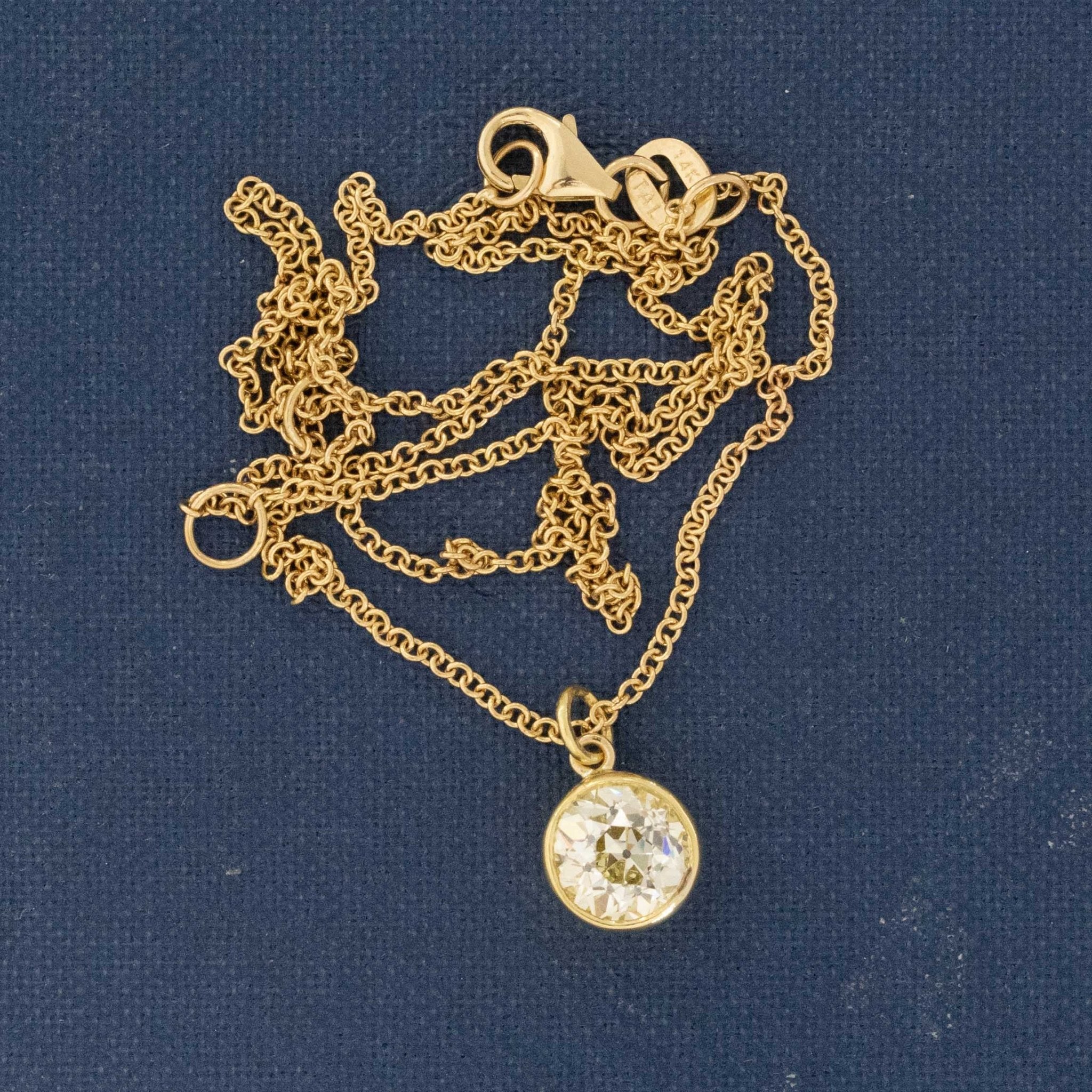 An easy, breezy Old Euro bezel pendant set along a contemporary and petite cable link chain! The stone is beautifully faceted - very classic OEC with tons of diamond fire, a puffy crown, and a touch of kozibe throughout the top. She packs quite the punch when worn by itself, but can be stacked amongst your other favorite chains and baubles.