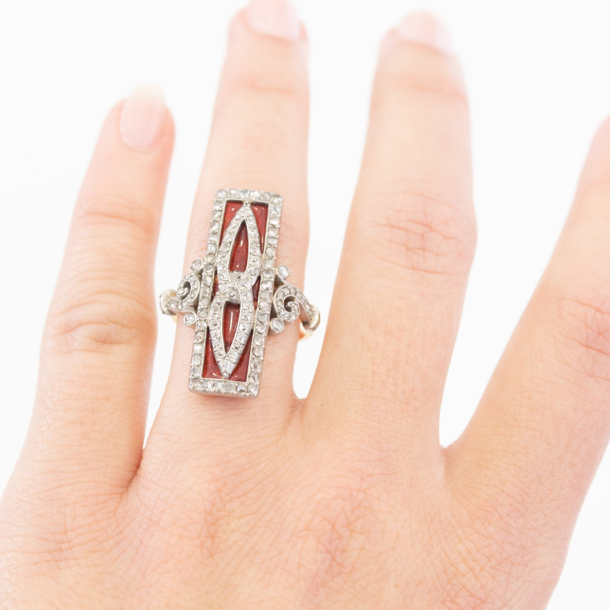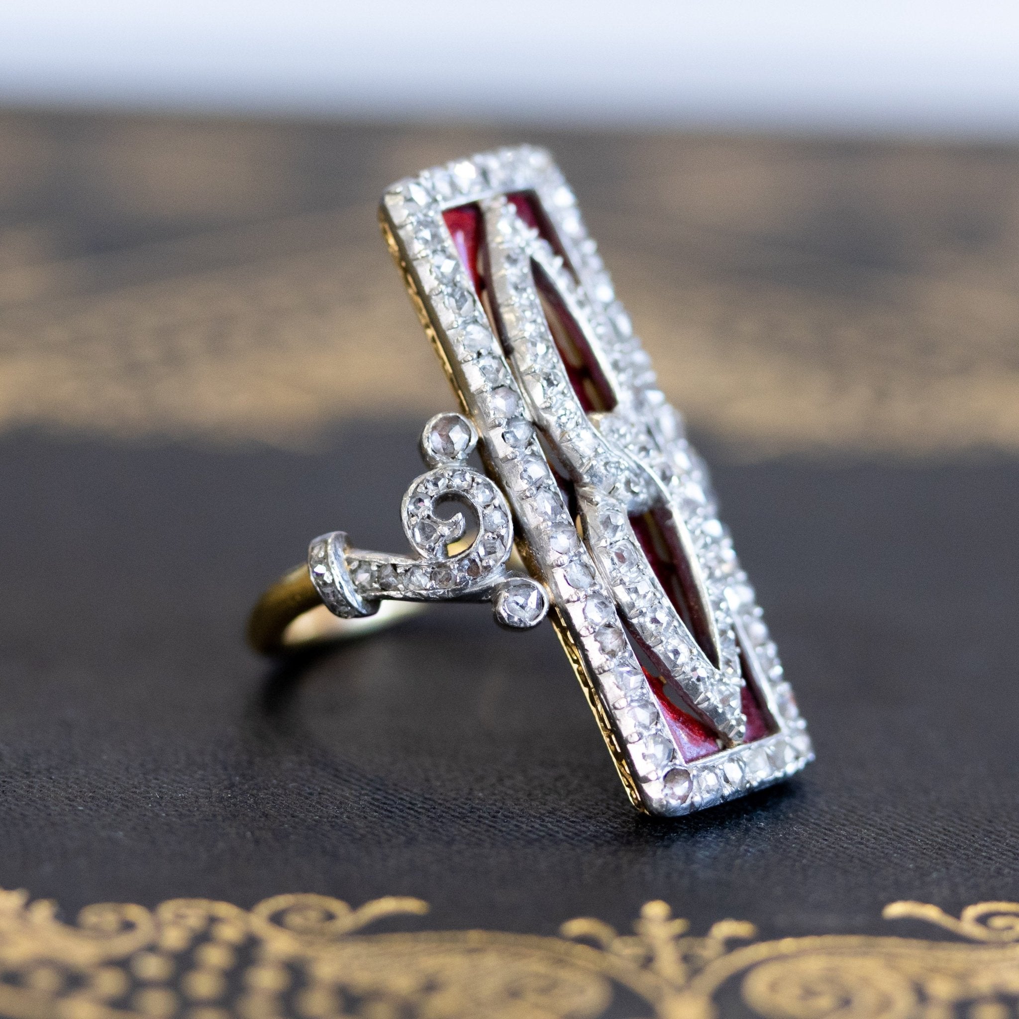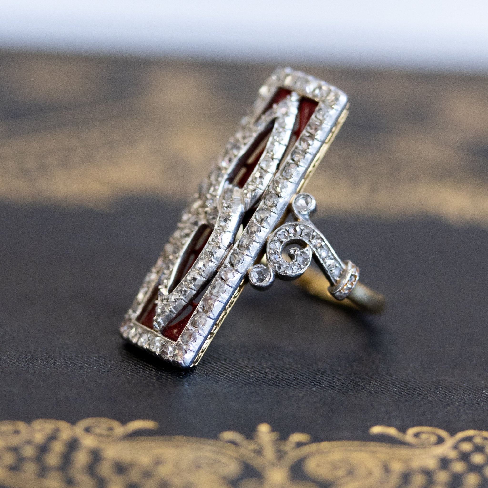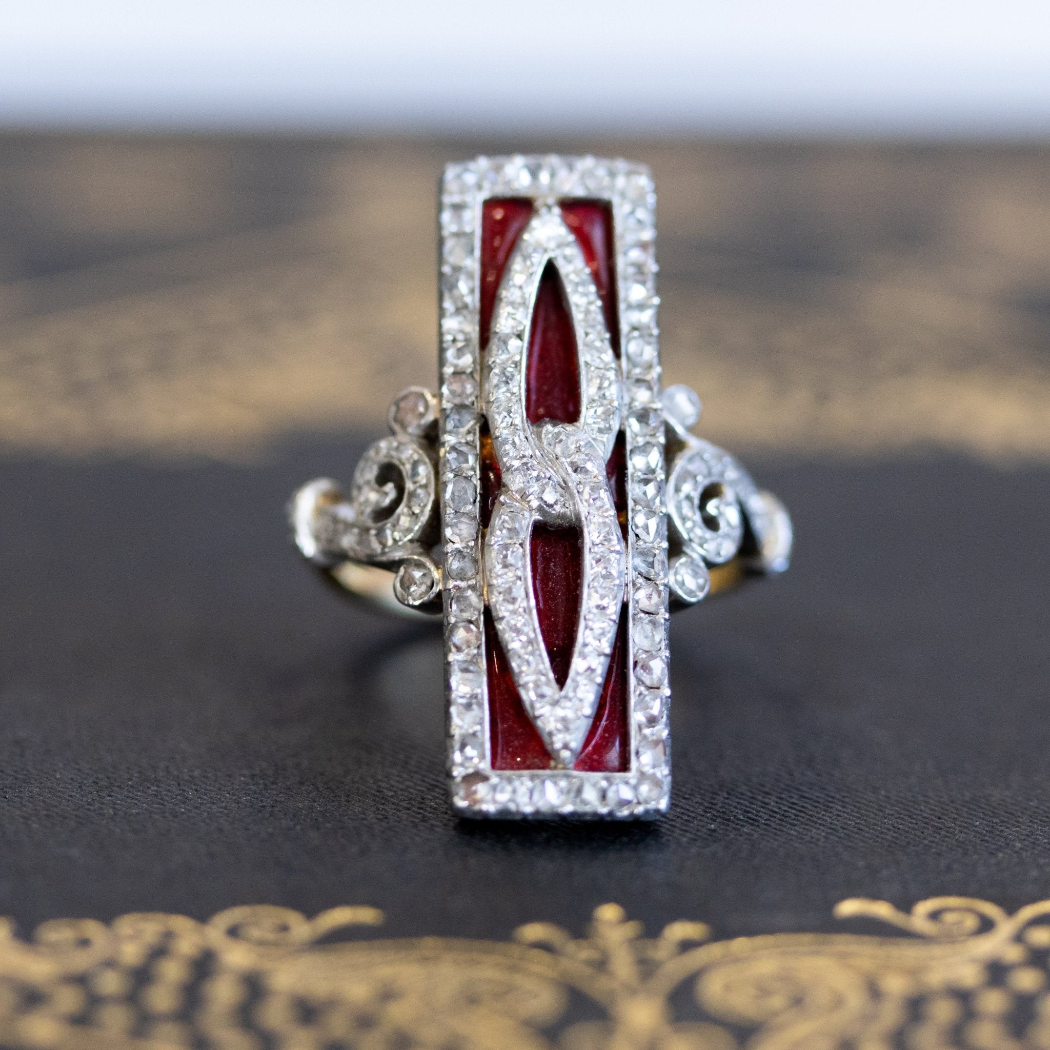 1.25ctw French Antique Diamond and Enamel Dinner Ring