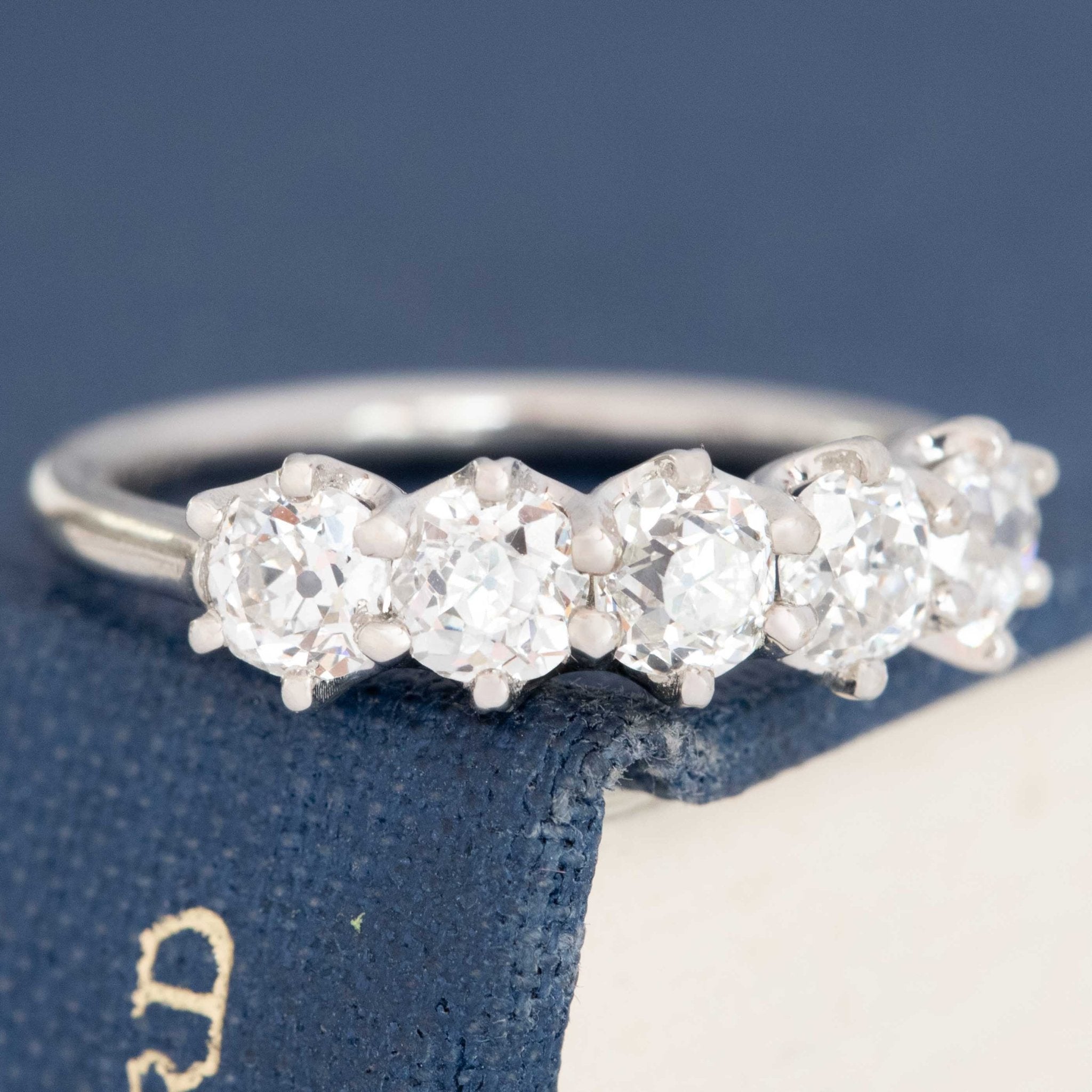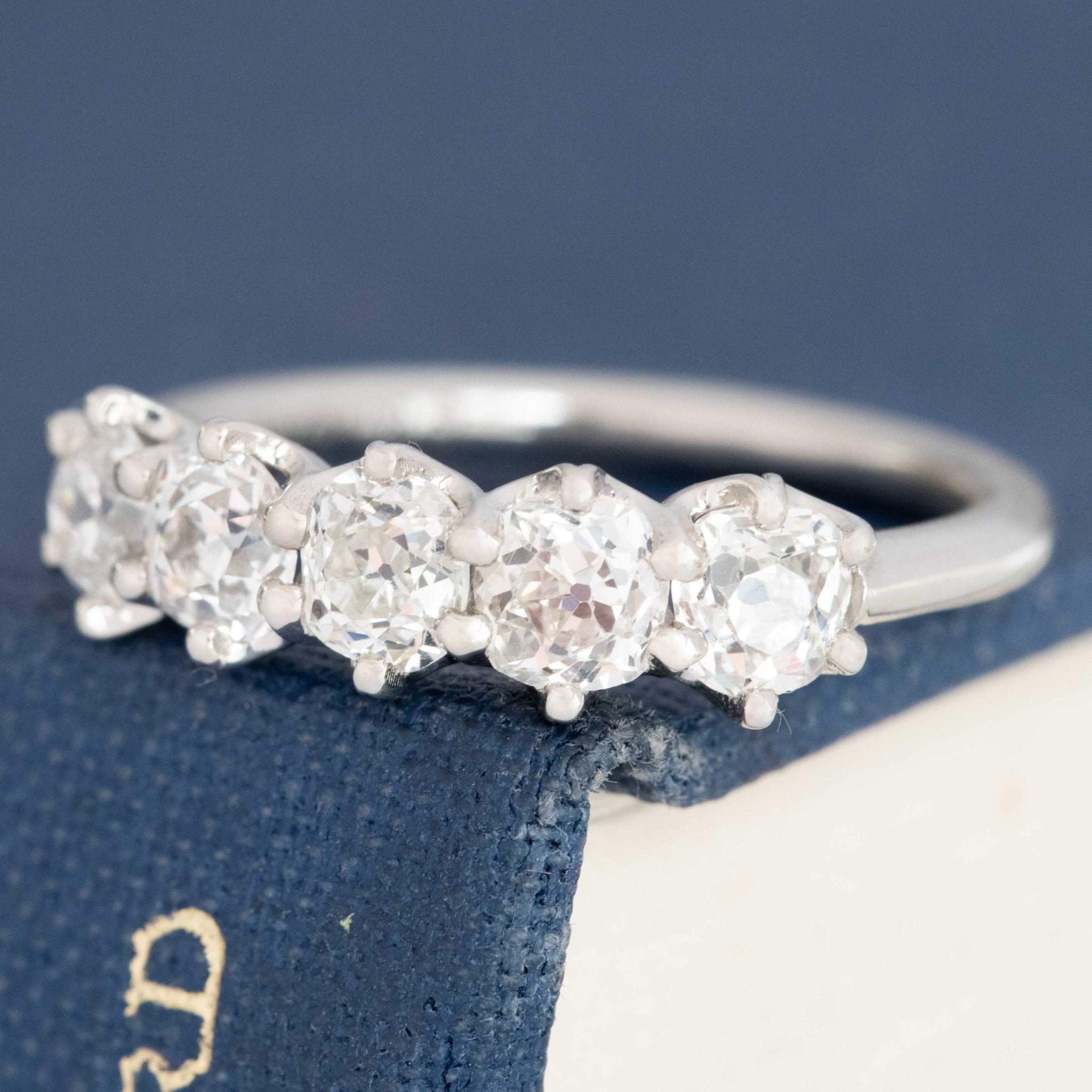 1.28ctw Old Mine Cut Diamond 5-Stone Band