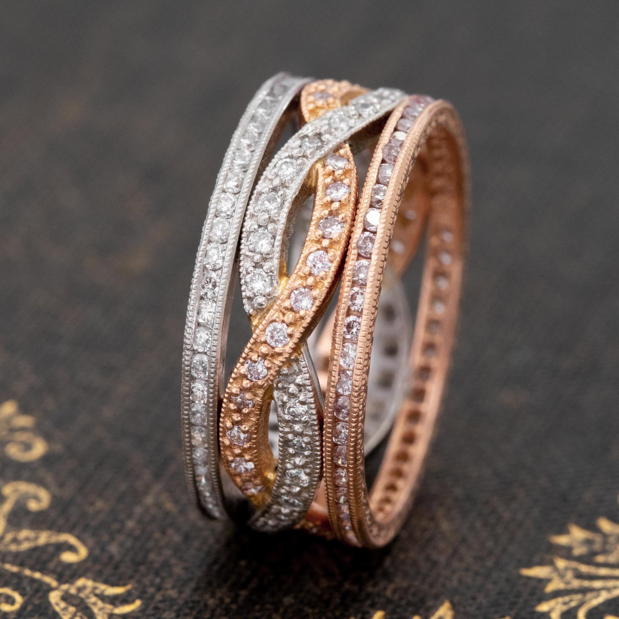 1.30ctw Fancy Pink and White Diamond Twist Band