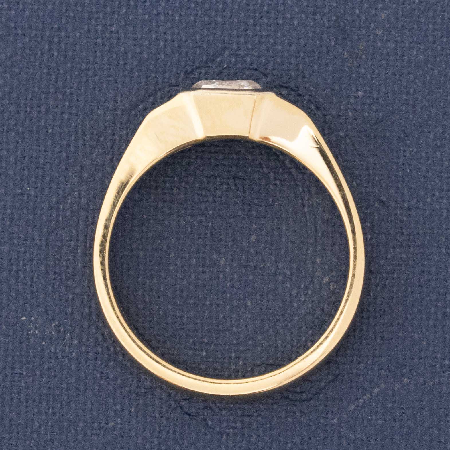 This 1.19ct center emerald cut diamond is pretty special - at an E color, she is as white as they come! Another antique diamond now having its renaissance as a contemporary piece of jewelry. We found a pair of vintage trapezoids in our collection and voila - this ring was born. Perfect for both men and women, the ring has silent elegance to it, with its clean lines and simple form.