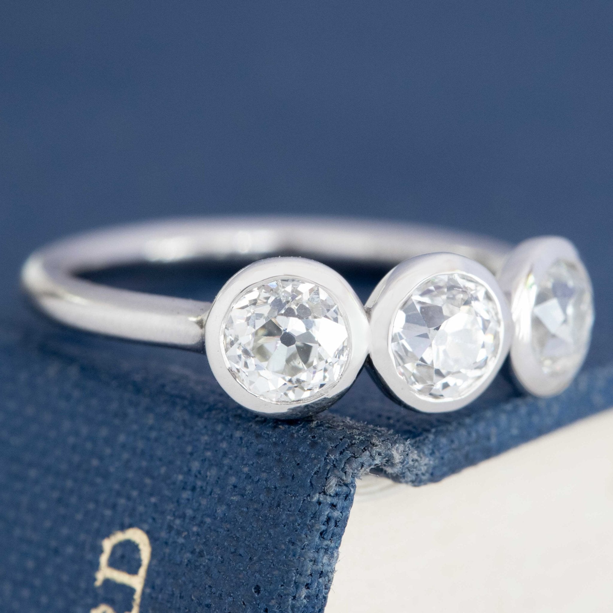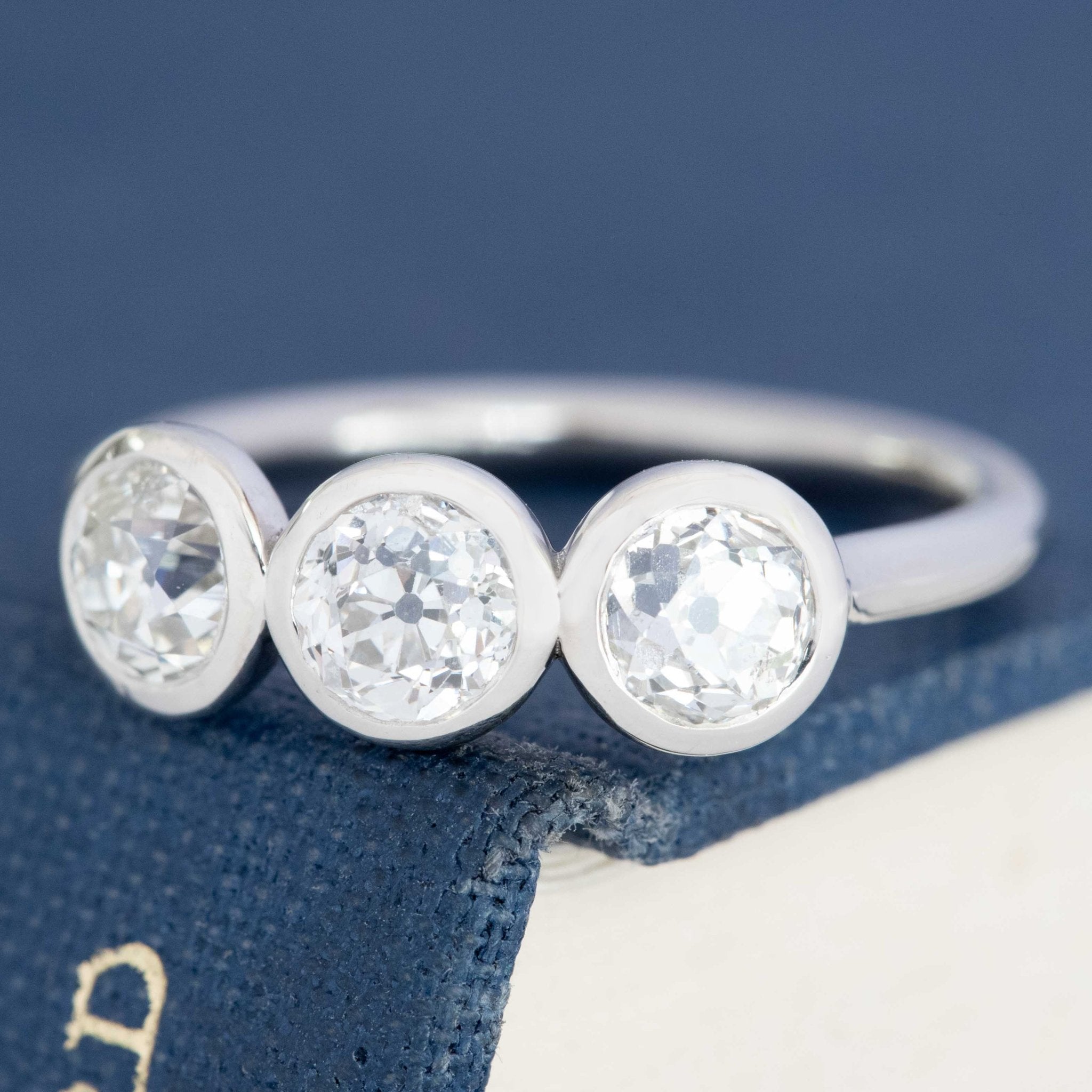 1.31ctw Old European Cut Diamond Bezel Trilogy Ring