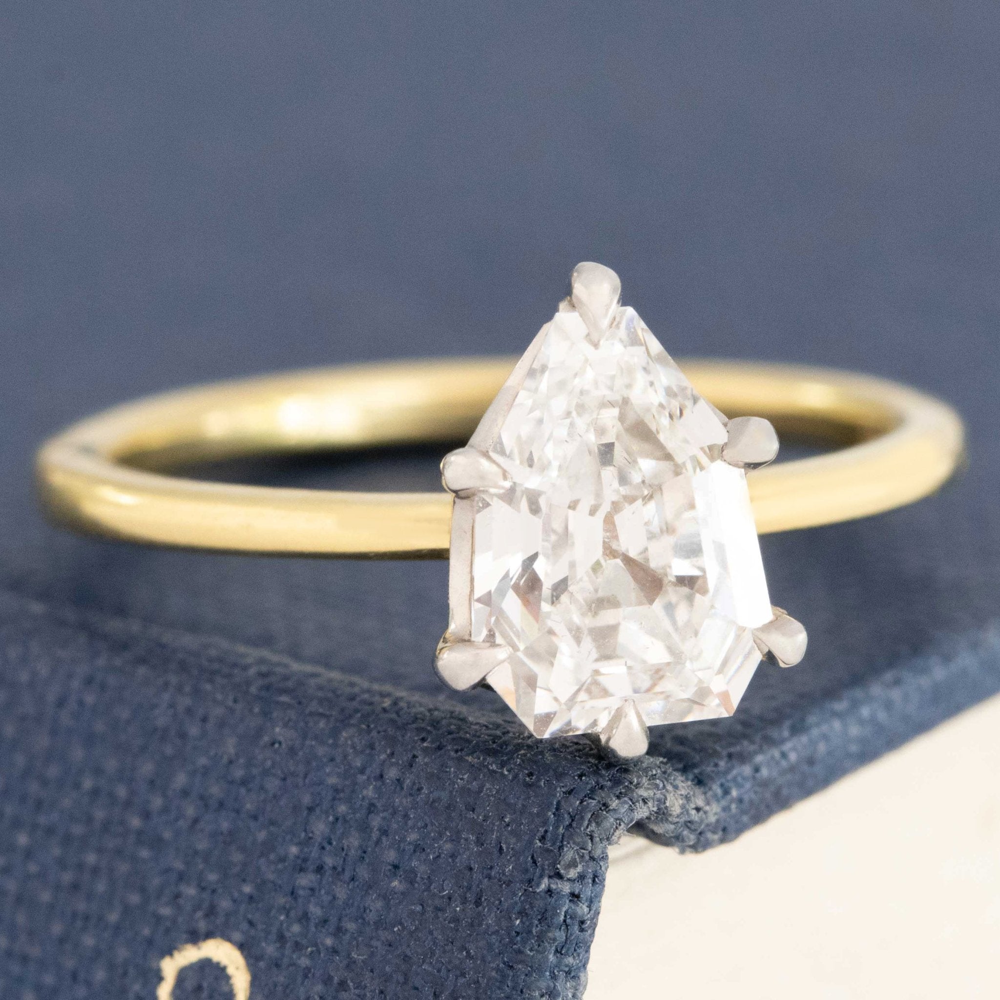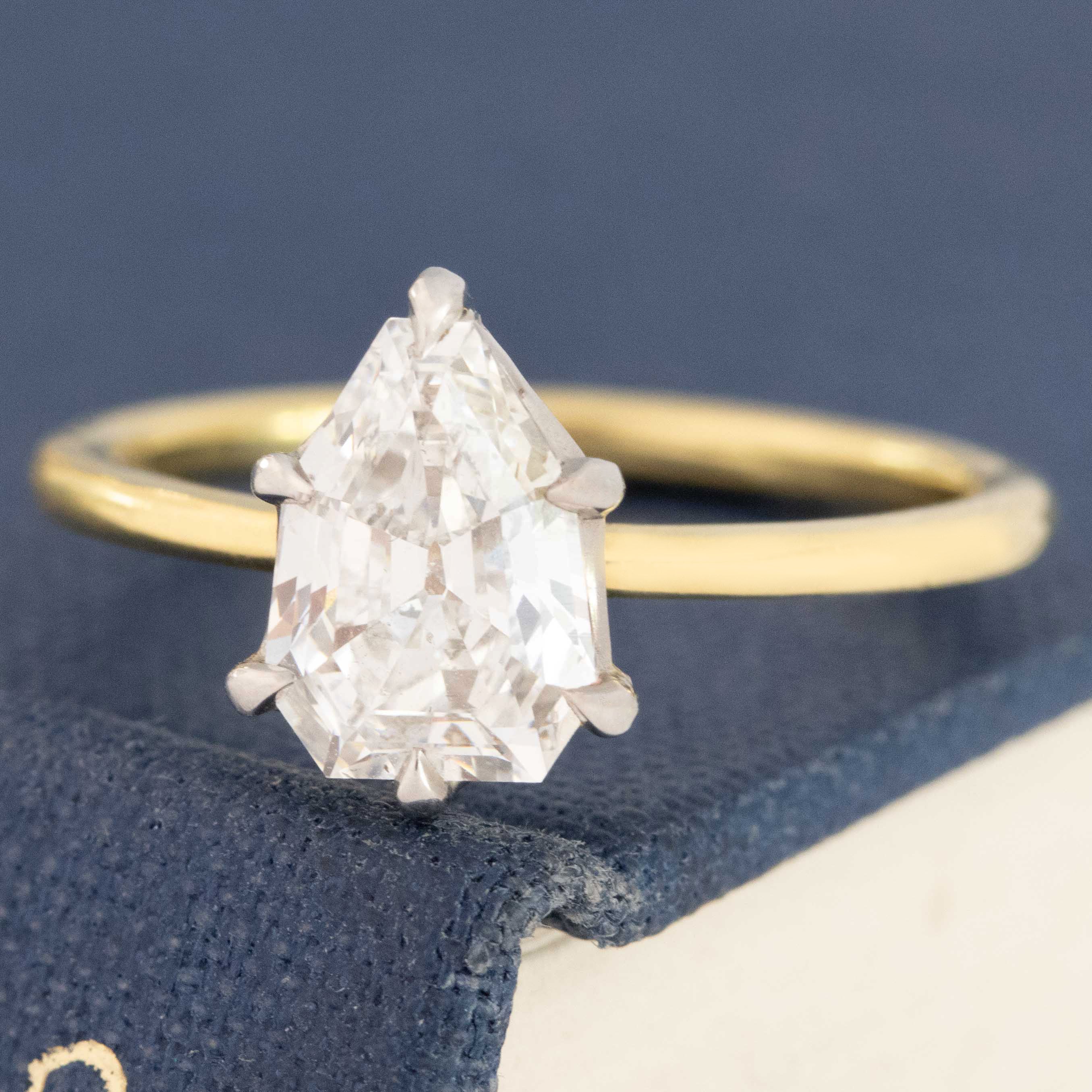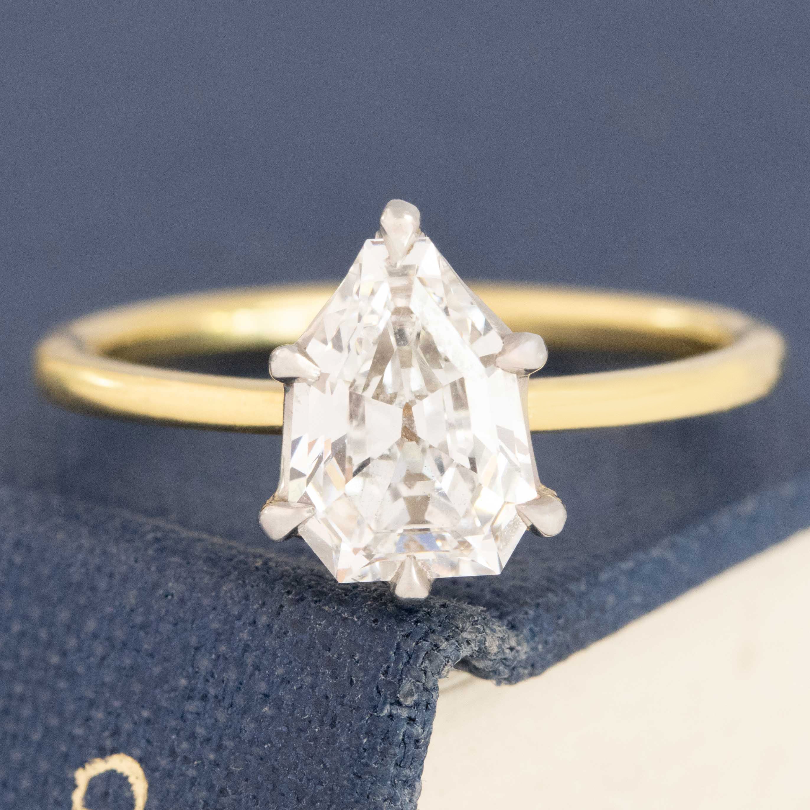 1.33ct Vintage Shield Shape Diamond Solitaire, GIA E VS2