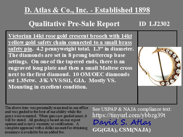 1.35ctw Victorian Diamond Crescent Moon Brooch