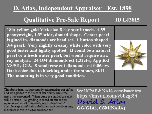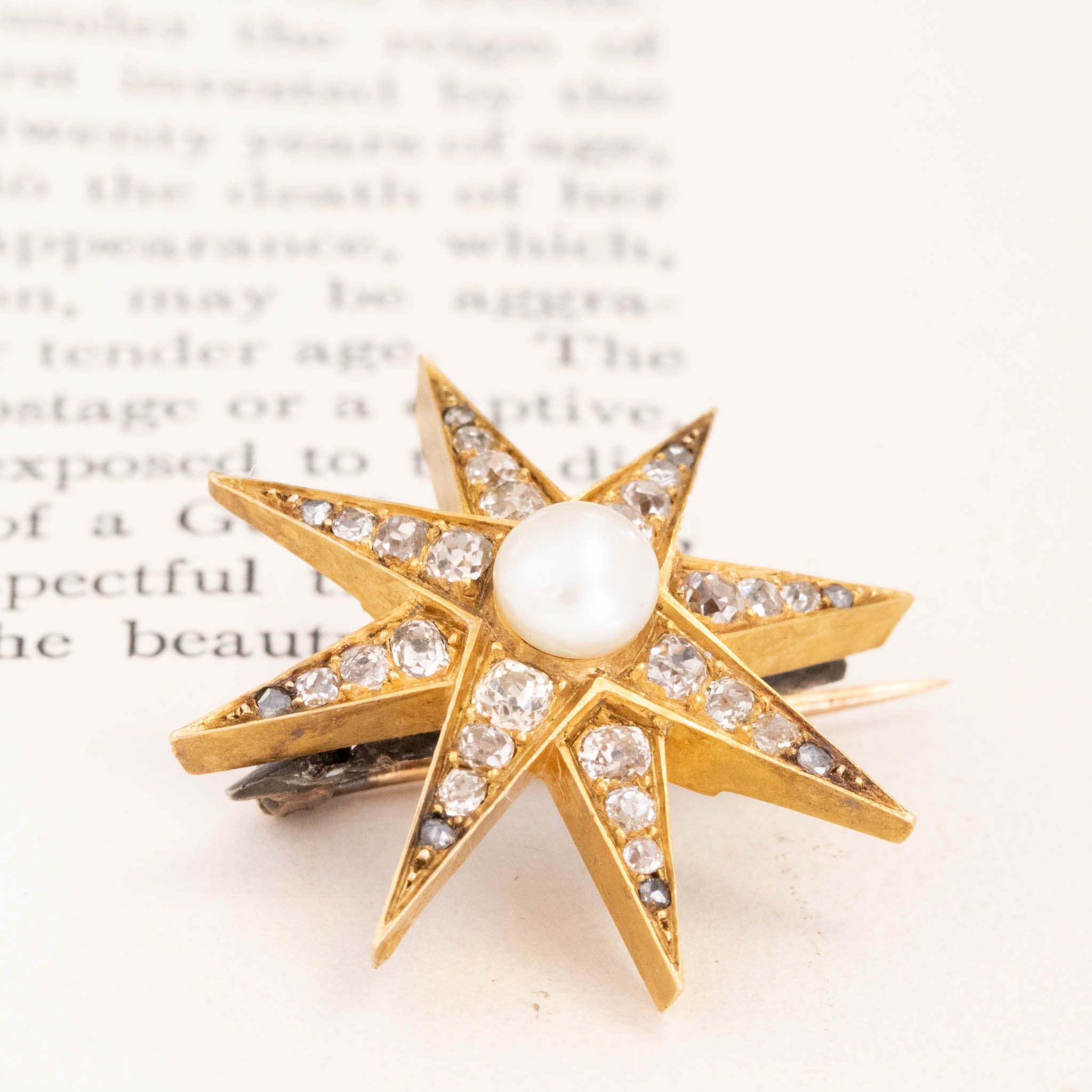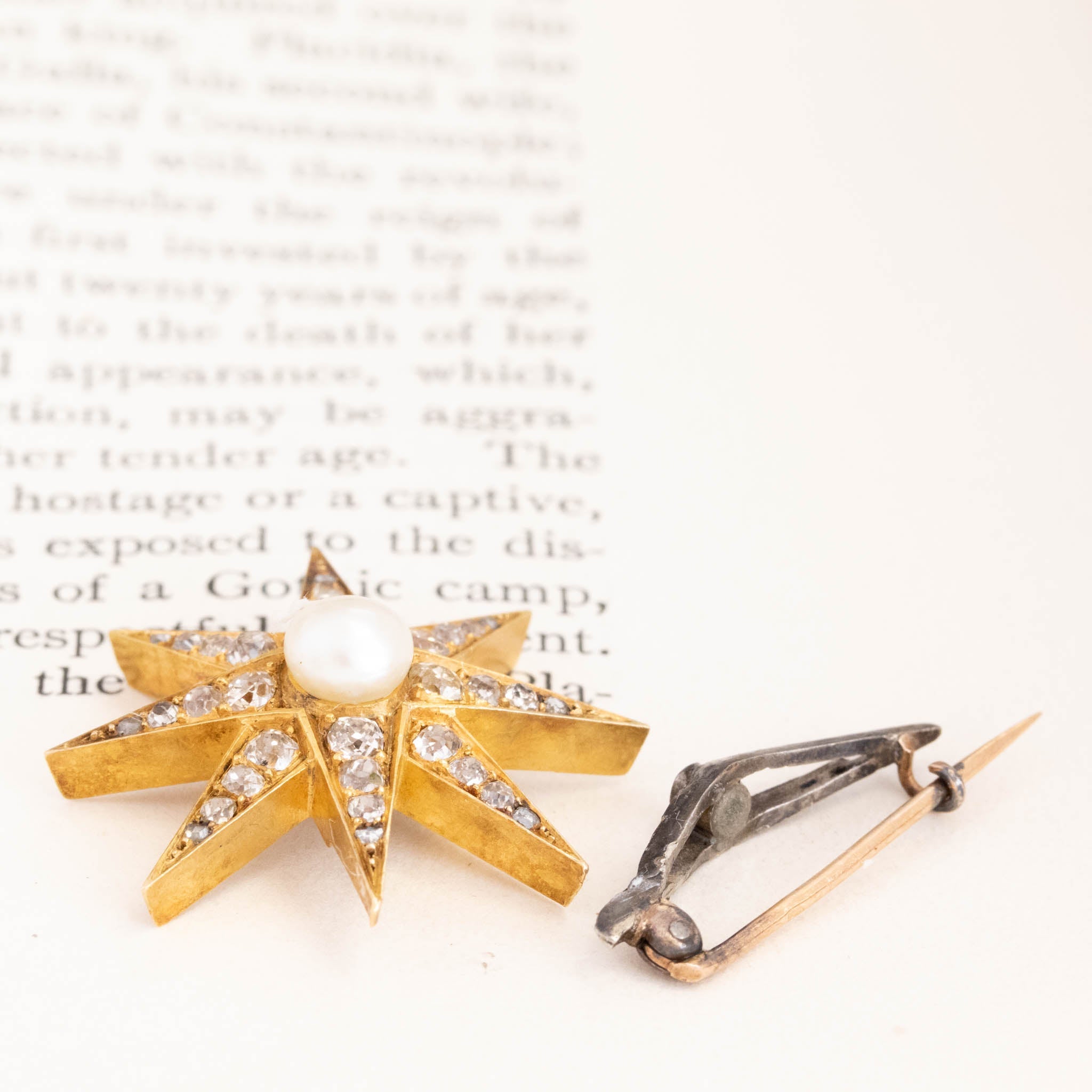 1.37ctw Antique Diamond & Pearl Starburst Brooch