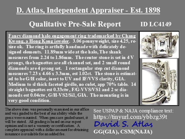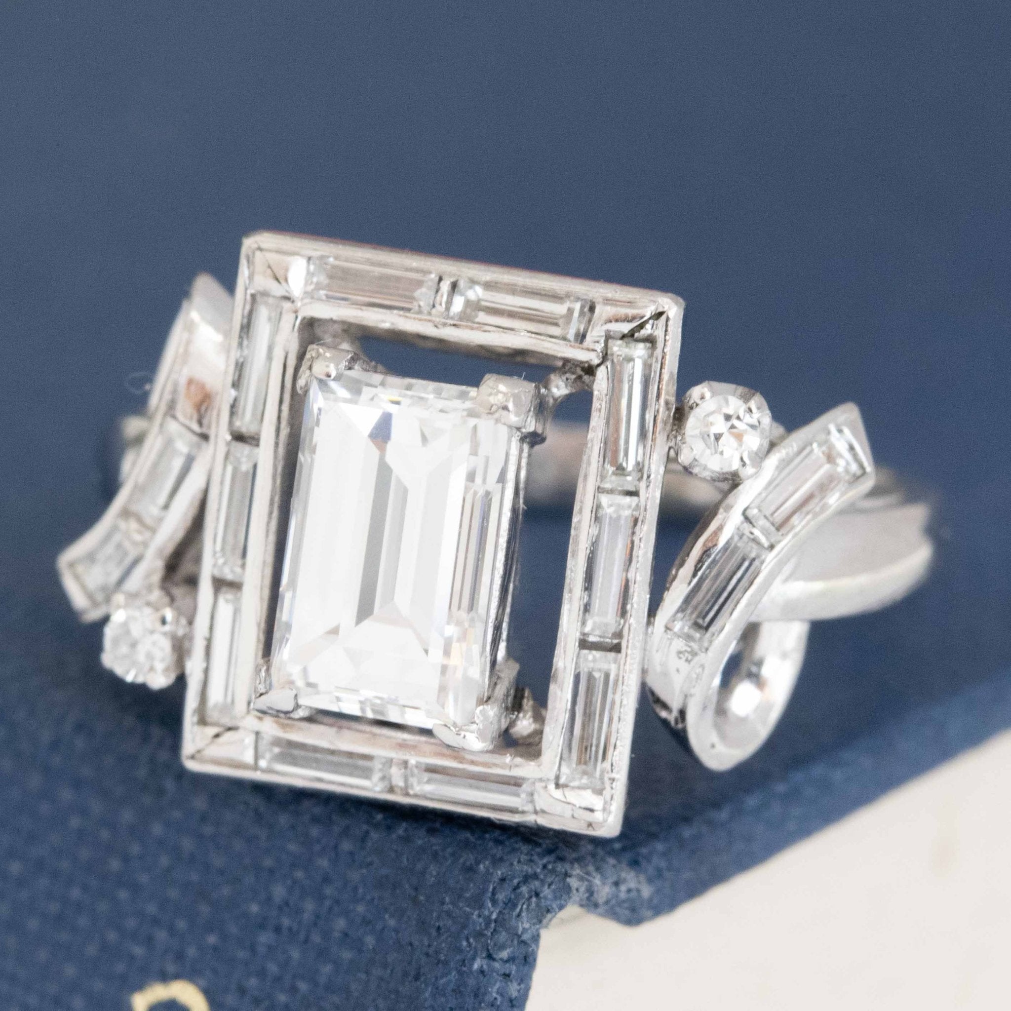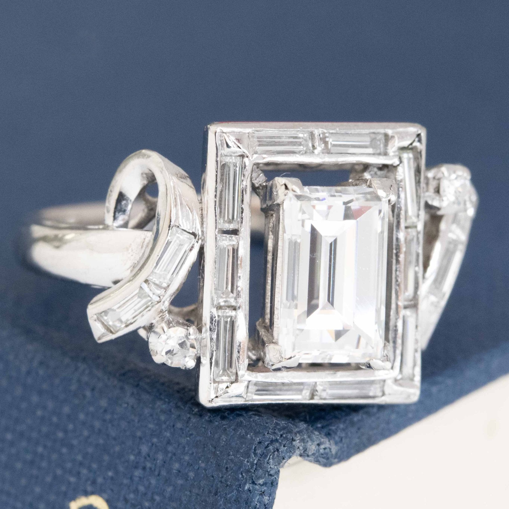 1.39ctw Fancy Emerald Cut Diamond Frame Ring