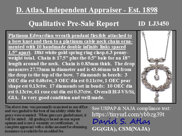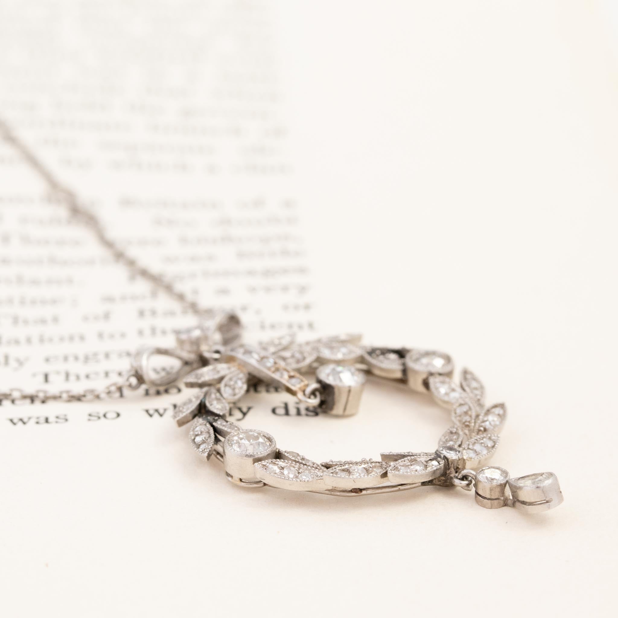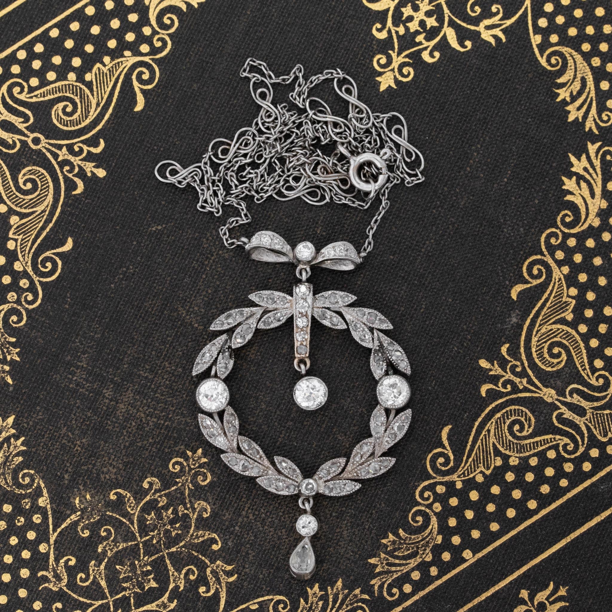 Hailing from one of the most romantic periods in jewelry history, the Edwardian diamond pendant with a wreath motif is feminine, airy, and delicate in all the right ways! Intricately detailed, the piece is a wonderful addition to any jewelry wardrobe.
