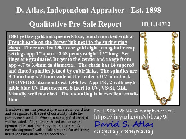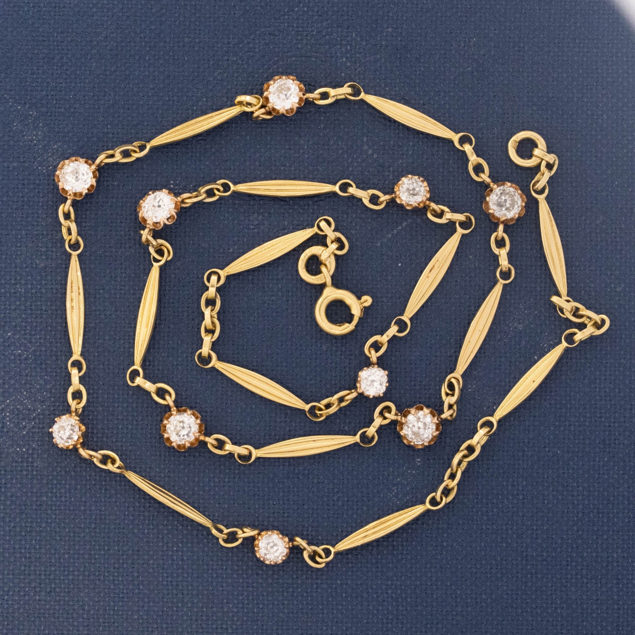 1.44ctw Antique French Old European Cut Diamond Station Necklace