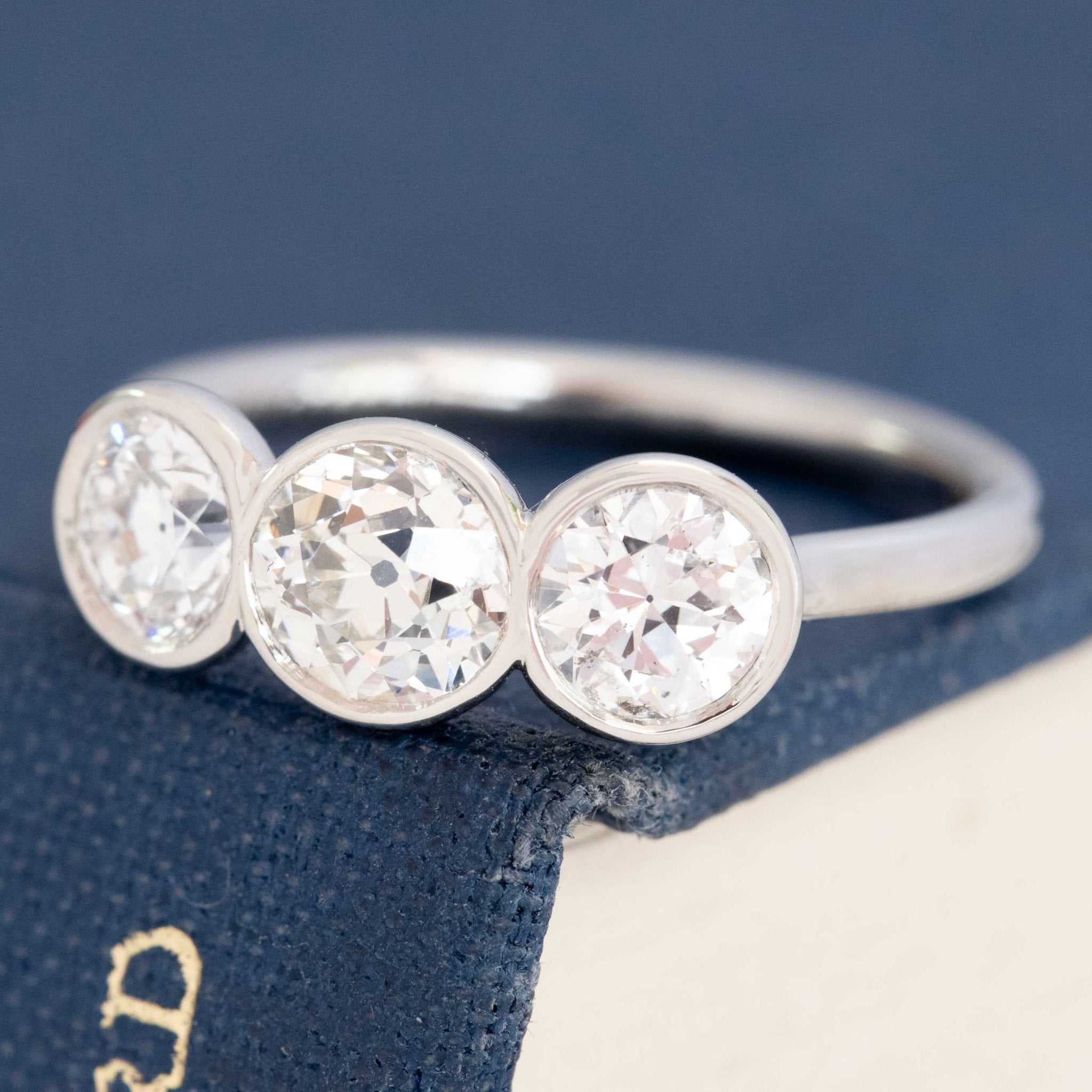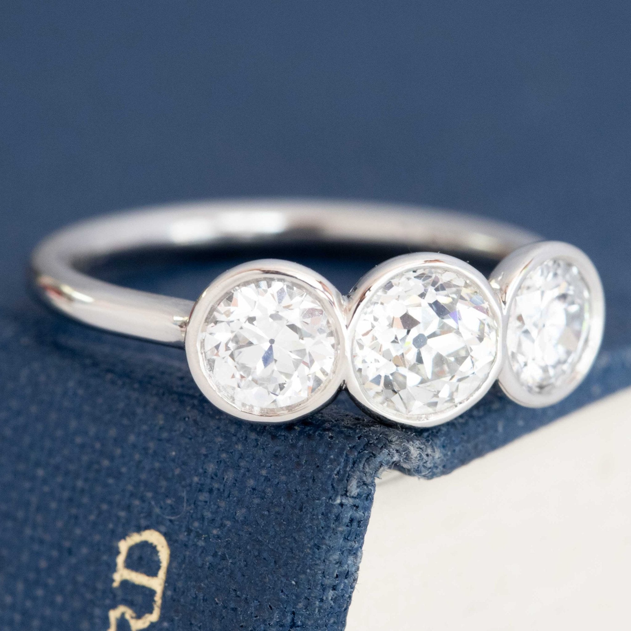1.44ctw Old European Cut Diamond Bezel Trilogy Ring