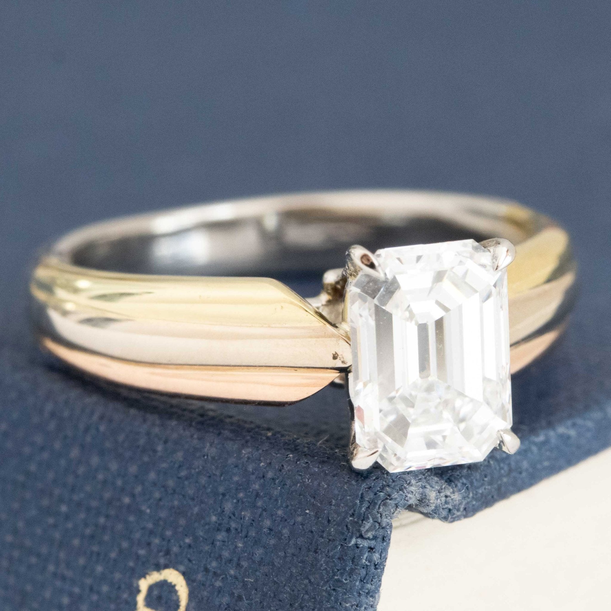 Can we say ohh-lala? A big fave around these parts with this icy-white emerald cut diamond (a D color! - none whiter) in this iconic setting style from Cartier from their trinity line. And the best part? It comes with its original wedding band too. Beautiful, one of a kind and iconic - what more can one ask for?