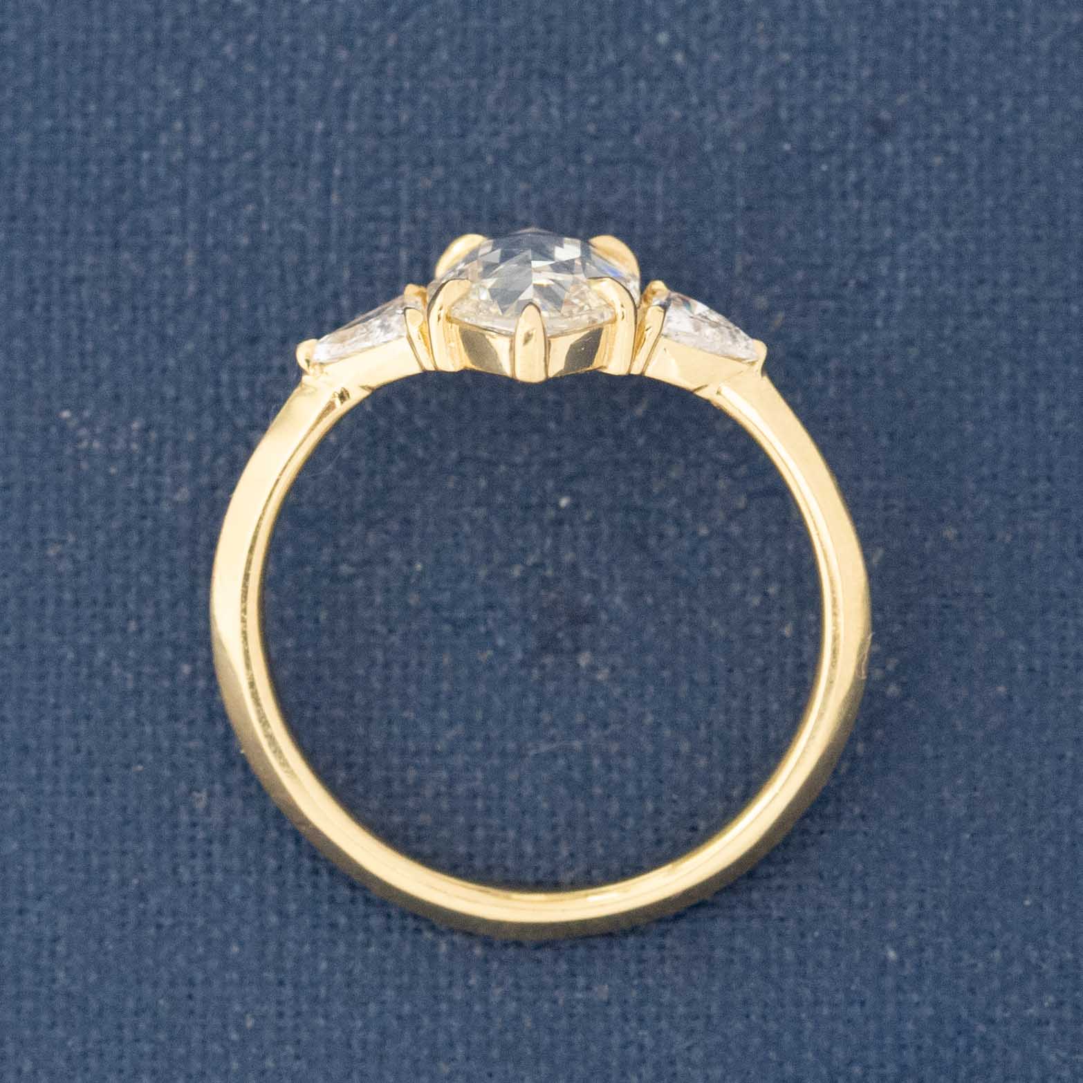 When we first came across the center stone as a loose diamond - she stopped us in our tracks. A marquise meets a rose cut and thus this stone was born, the rest is history!