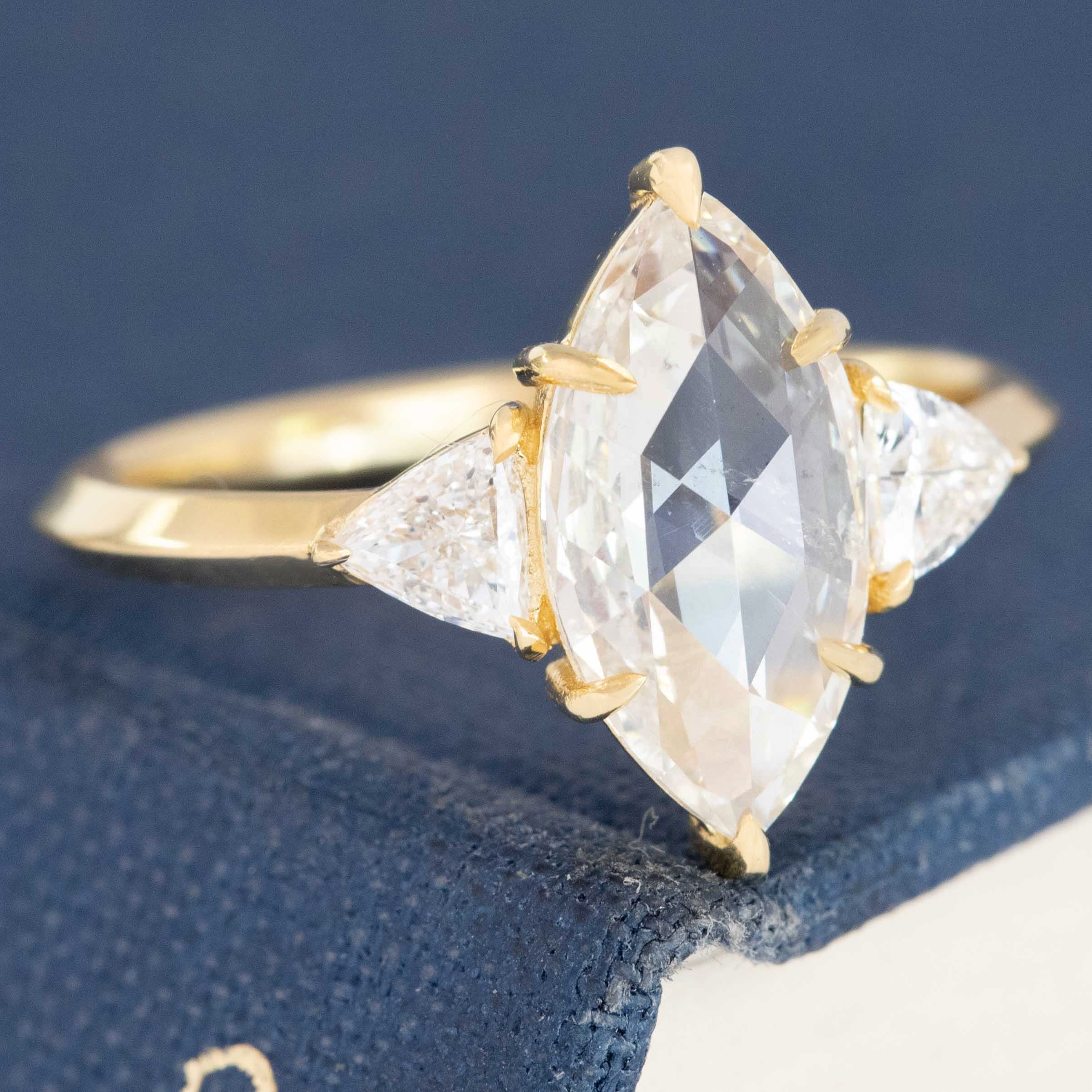 1.45ctw Marquise Rose Cut Diamond Trilogy Ring, GIA J I1
