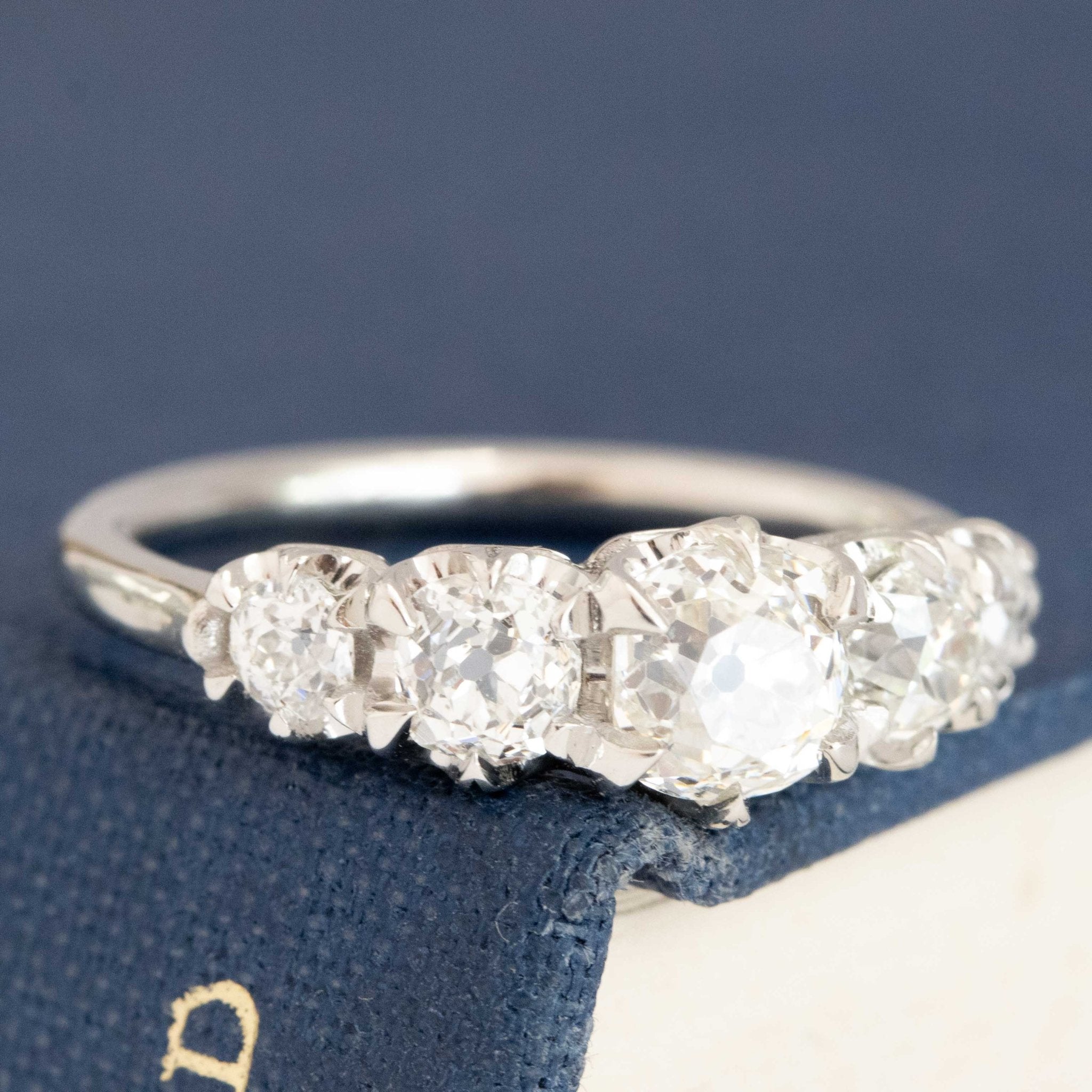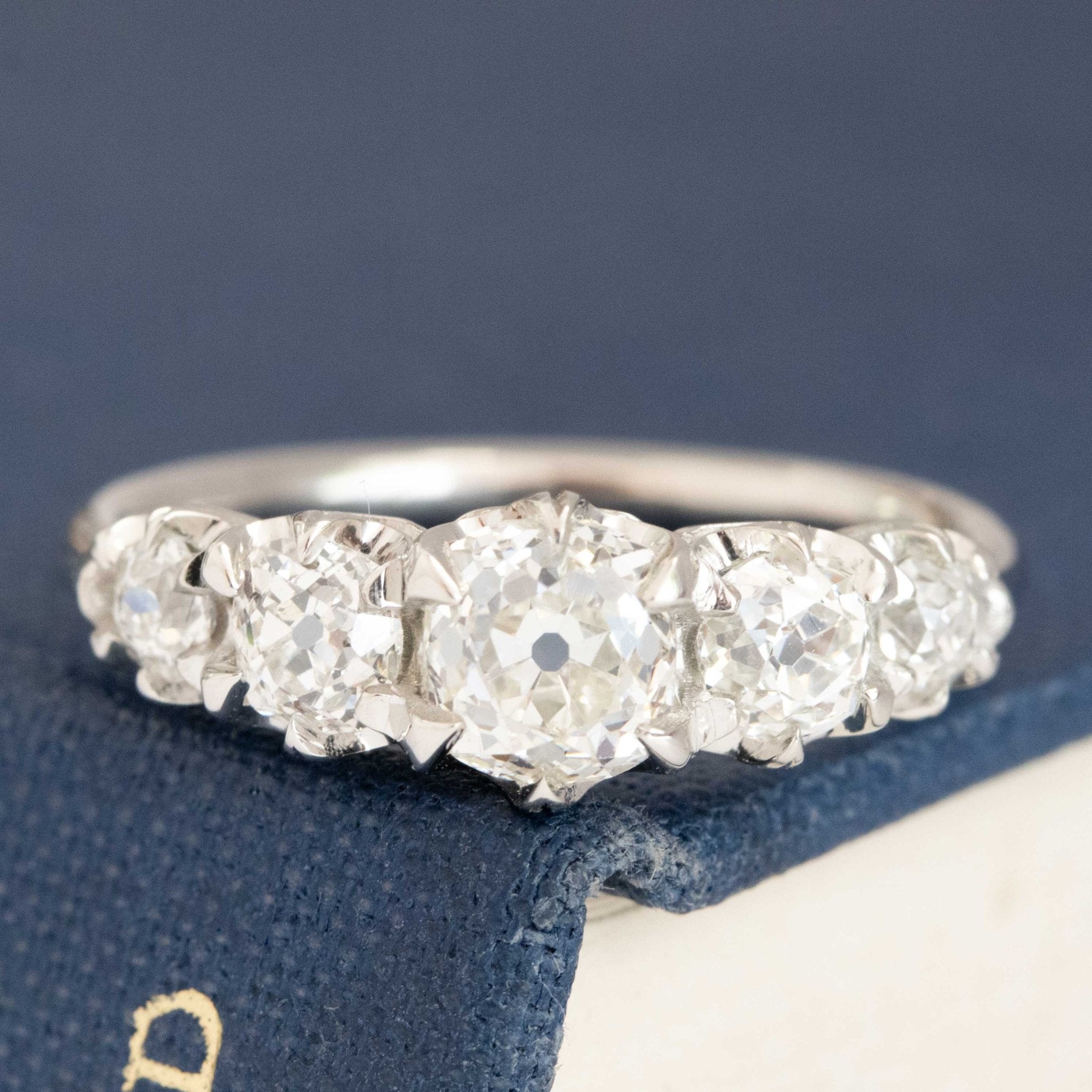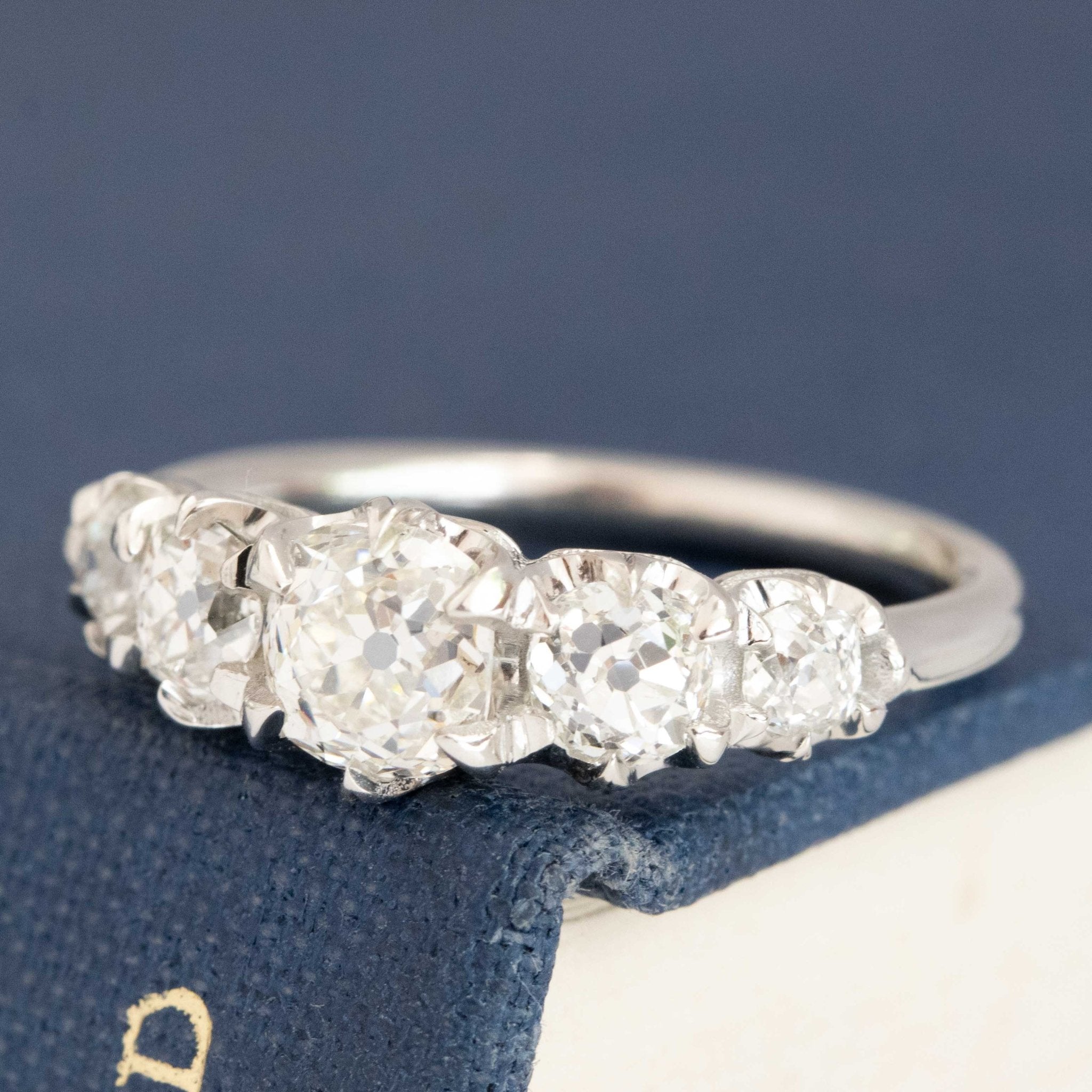 1.46ctw Old Mine Cut Diamond Graduated 5-Stone Band