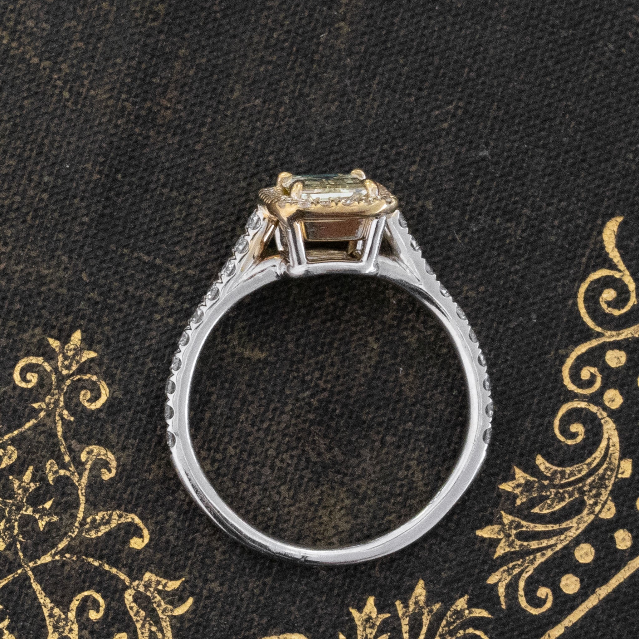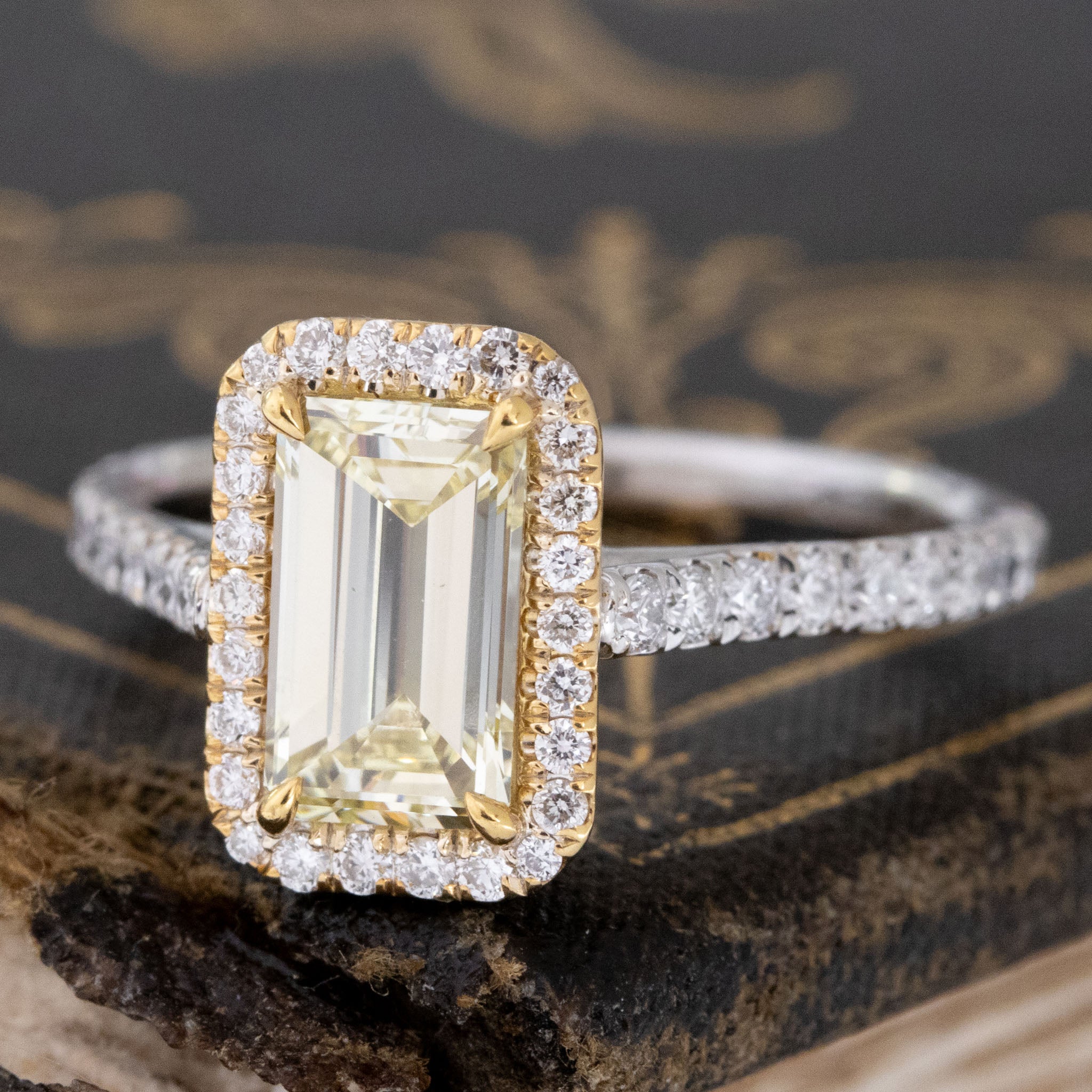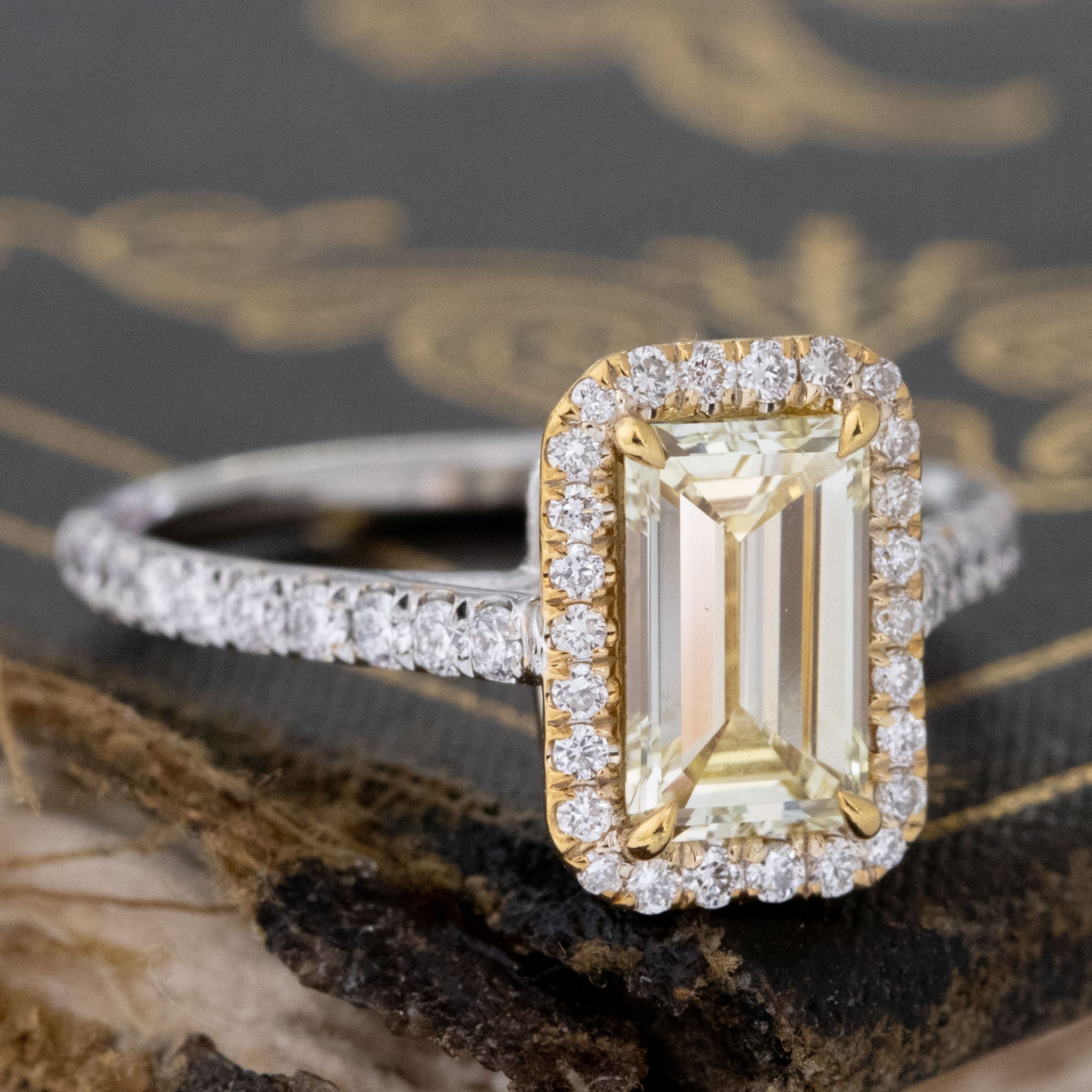 1.47ctw Fancy Yellow Emerald Cut Diamond Halo Ring, GIA