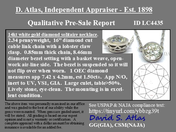 A perfect jewelry staple! Set with a 1.50ct OEC with a bright face up in white gold, thic necklace is perfect worn solo, as well as part of a layering stack. Timeless~