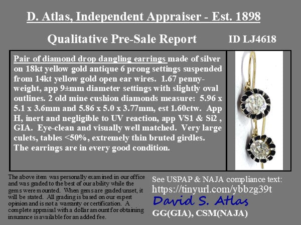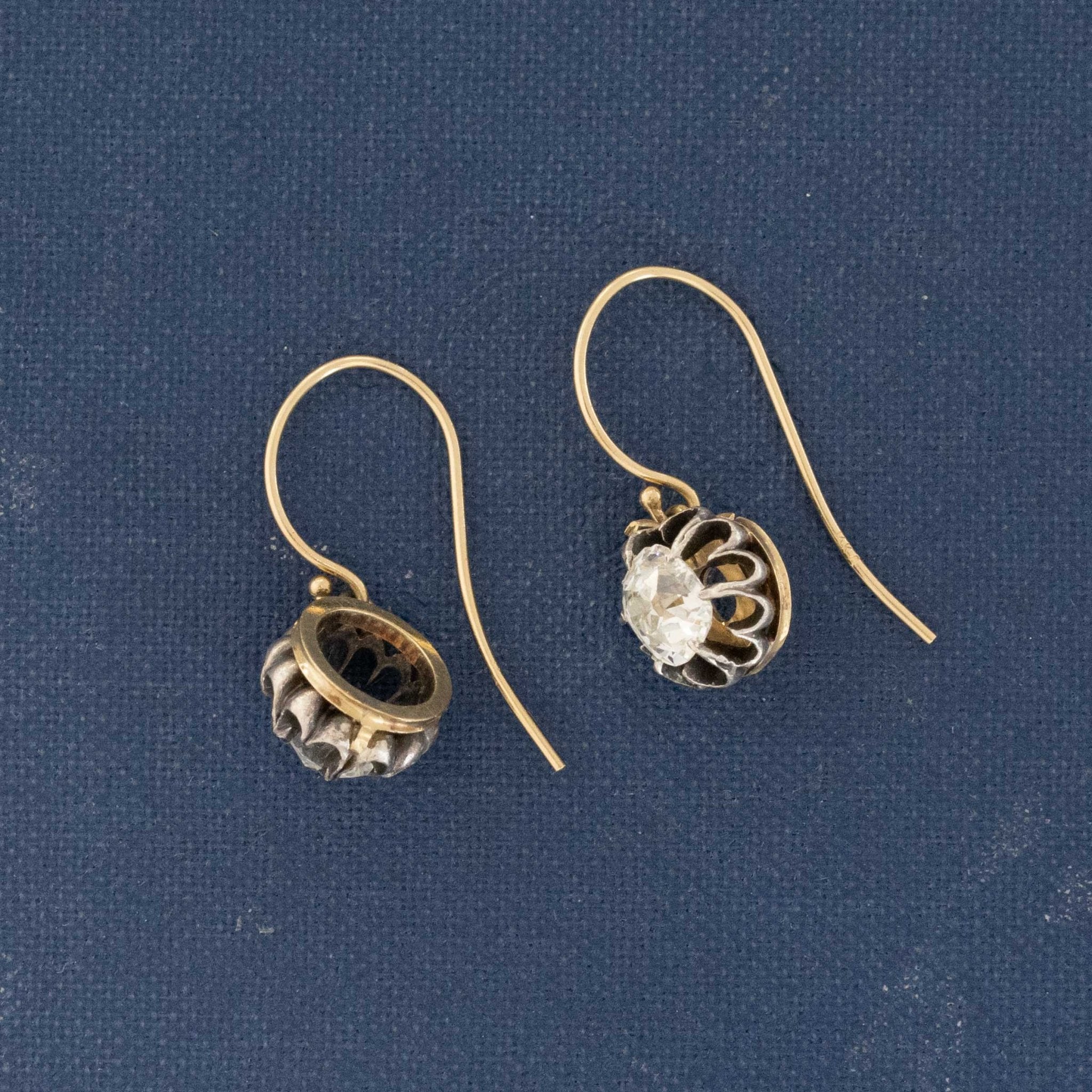 1.60ctw Antique Elongated Old Mine Cut Diamond Buttercup Drop Earrings
