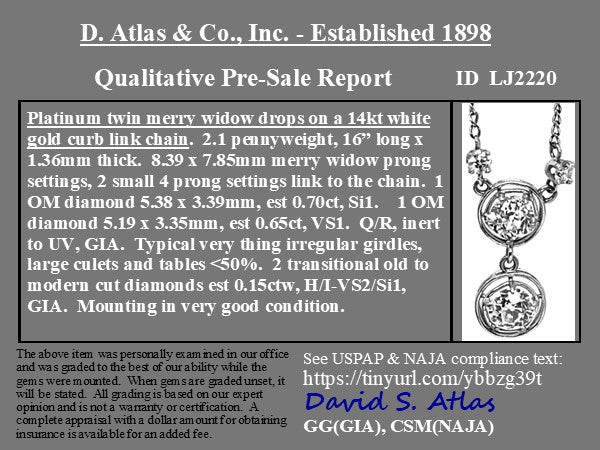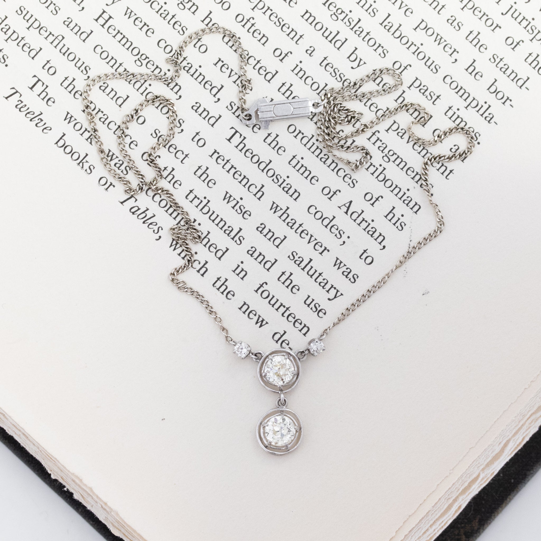 Super pretty double drop pendant, showcasing the prettiest and chunky old mine cut diamond in "merry widow" bezels. So elegant on the décolletage.